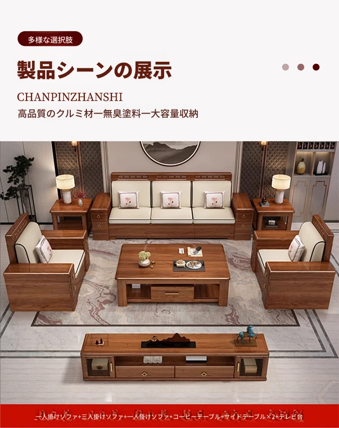 一人掛けソファ+二人掛けソファ+三人掛けソファ+ロングコーヒーテーブル+角テーブル+テレビ台