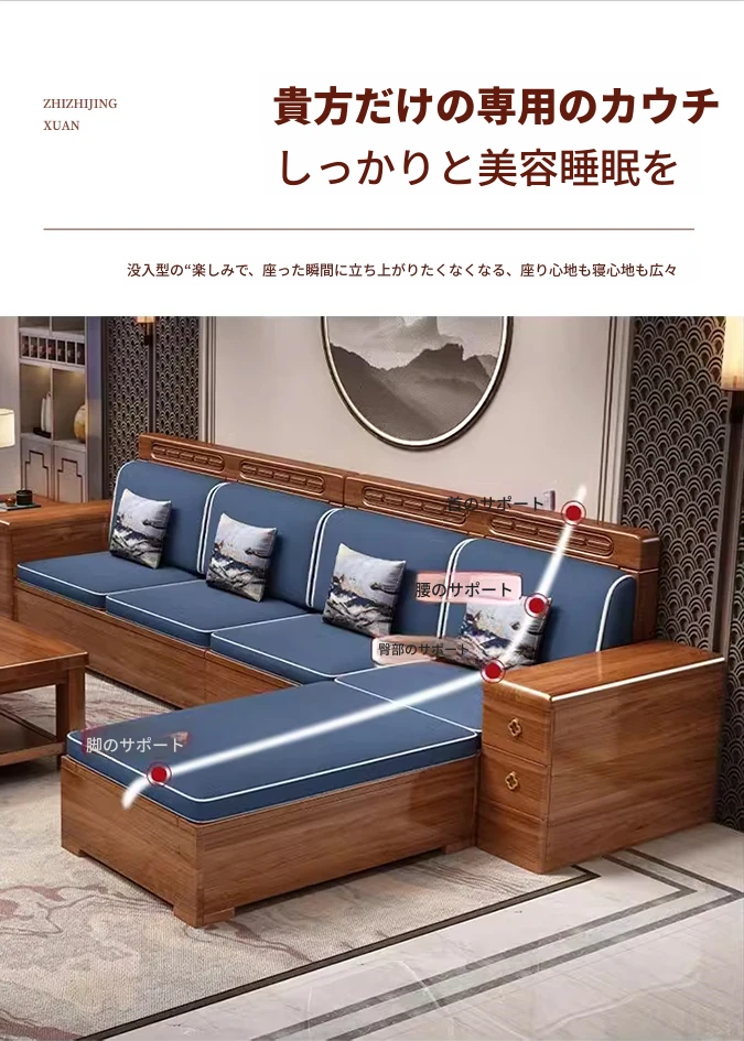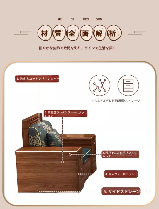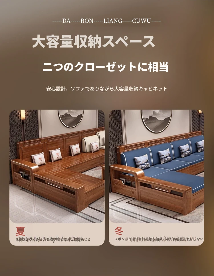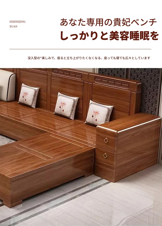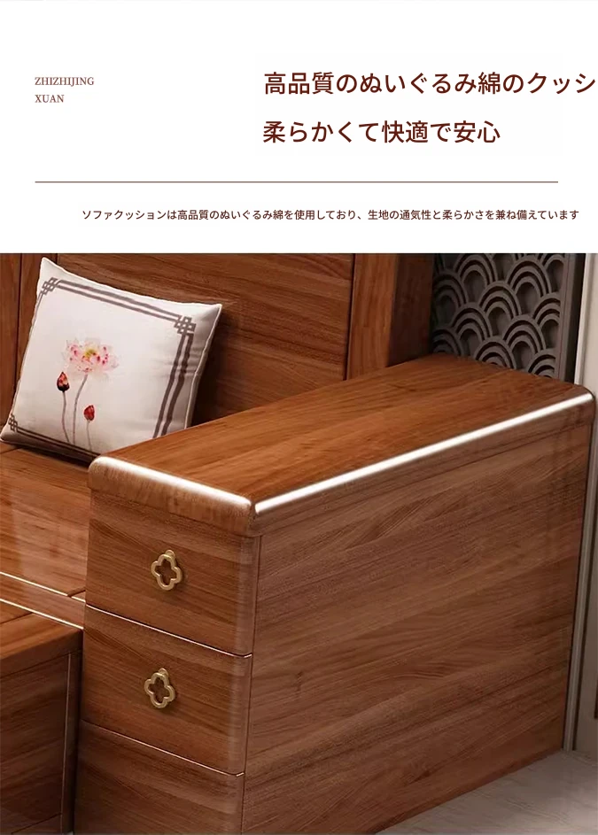 型9C胡桃木製ソファ DTX-HK58 - 中華風デザイン、冬夏兼用、収納機能付き、彫刻小花の美しさで経済的におしゃれなお部屋を演出!