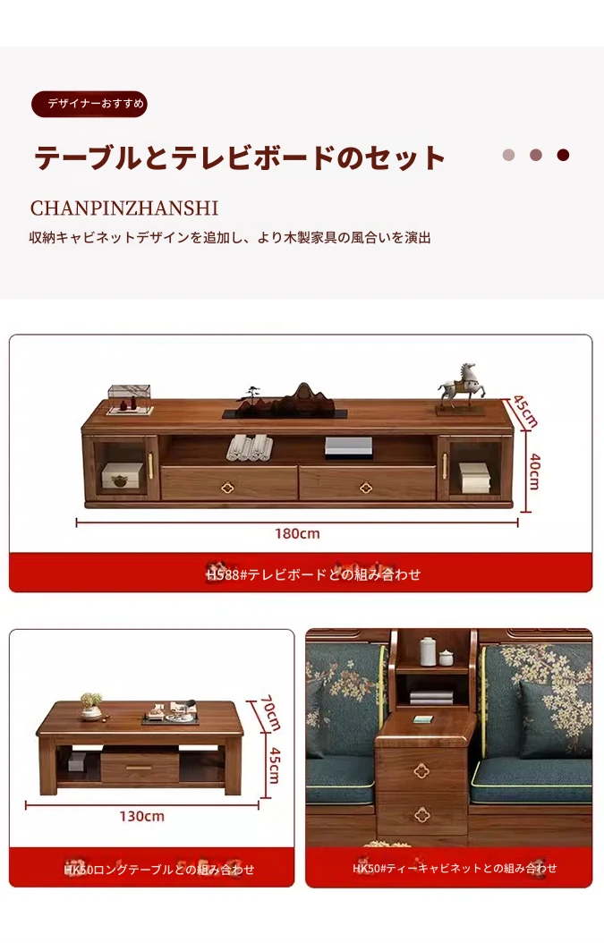 五人掛けソファ+ロングコーヒーテーブル+角テーブル+テレビ台