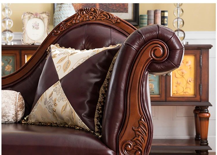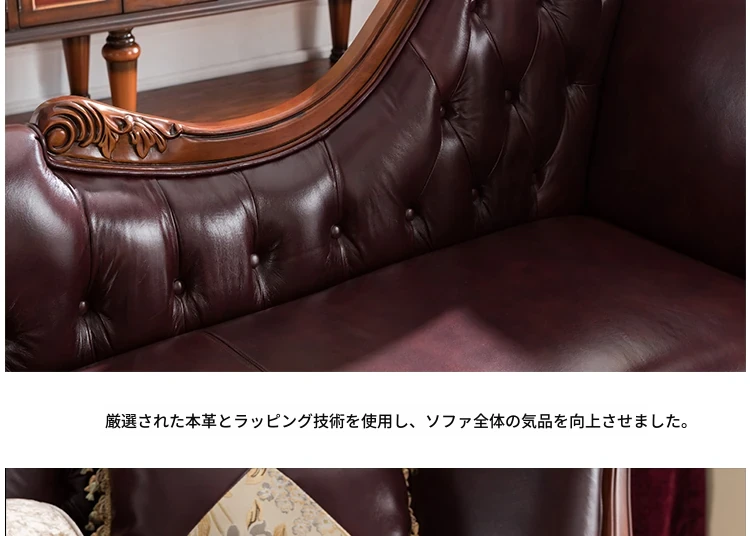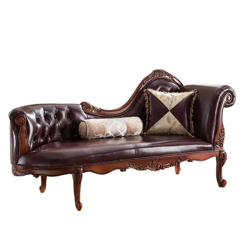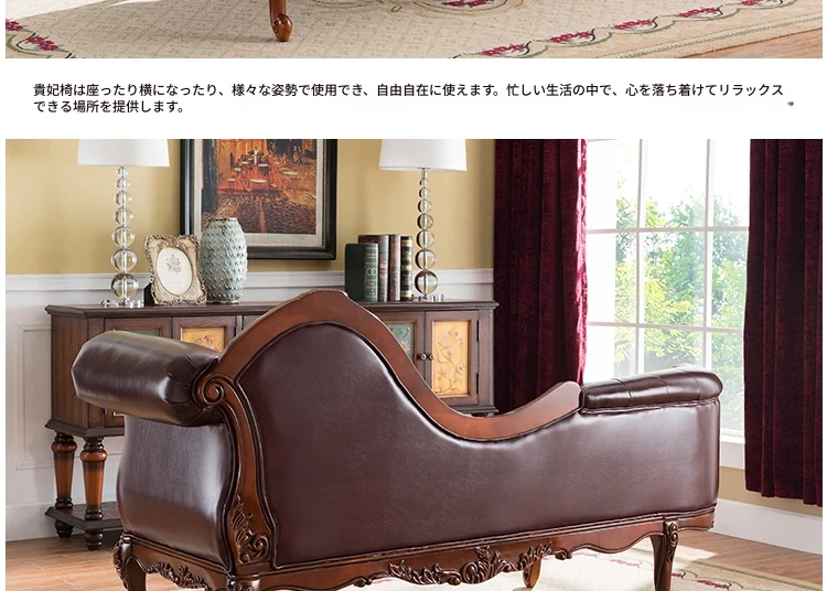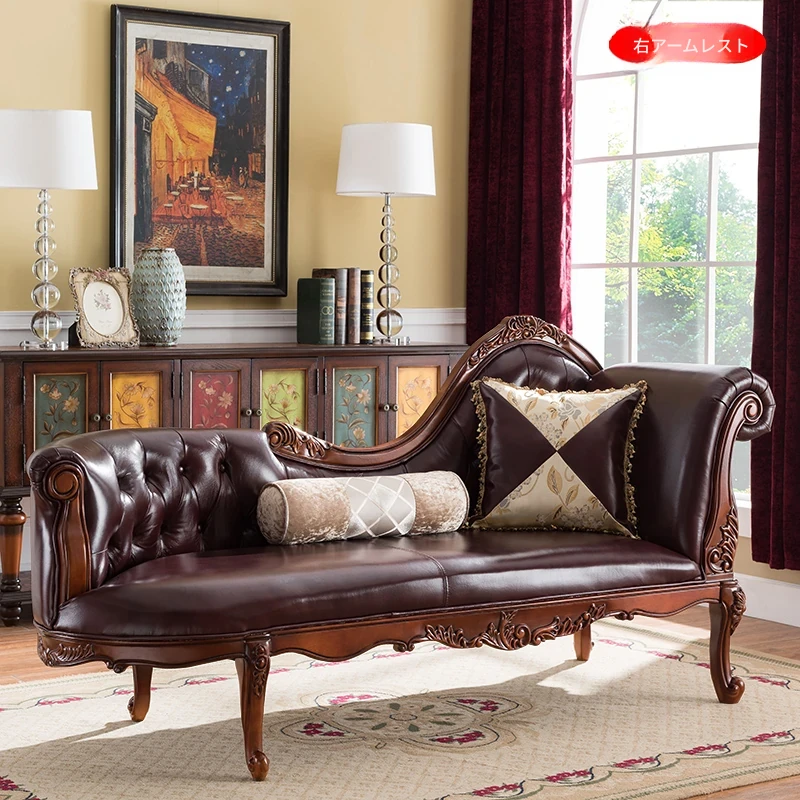 アメリカンスタイルの本革一枚革使用!高級感あふれる貴妃ソファ、木製フレームのシングルチェア。エレガントな欧風デザインで、狭いリビングにもぴったりの美人ベッド。リラックスしたひとときをお楽しみください!