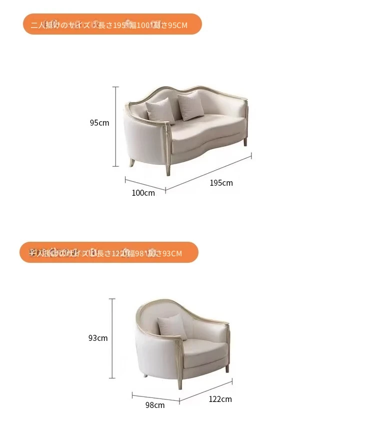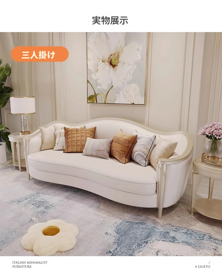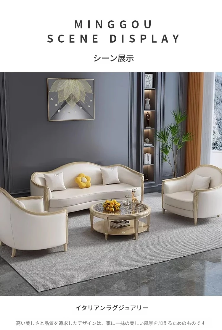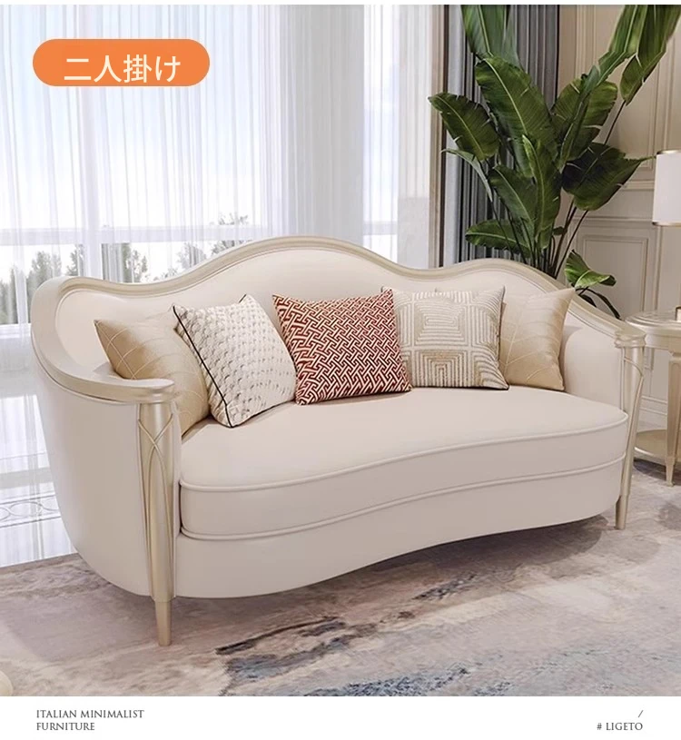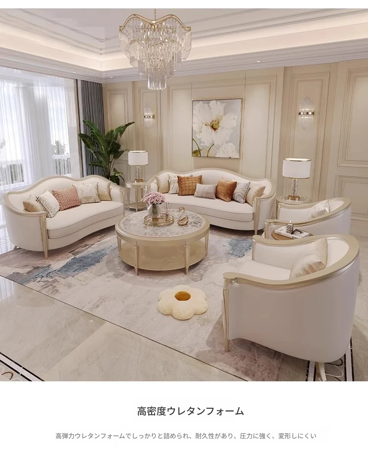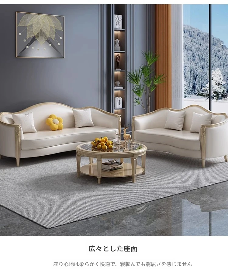 アメリカンスタイルのラグジュアリーな本革ソファーセット - 高級別荘にぴったりのエレガントな実木製リビングソファ。洗練されたデザインで、あなたの空間に上質な雰囲気を演出します。