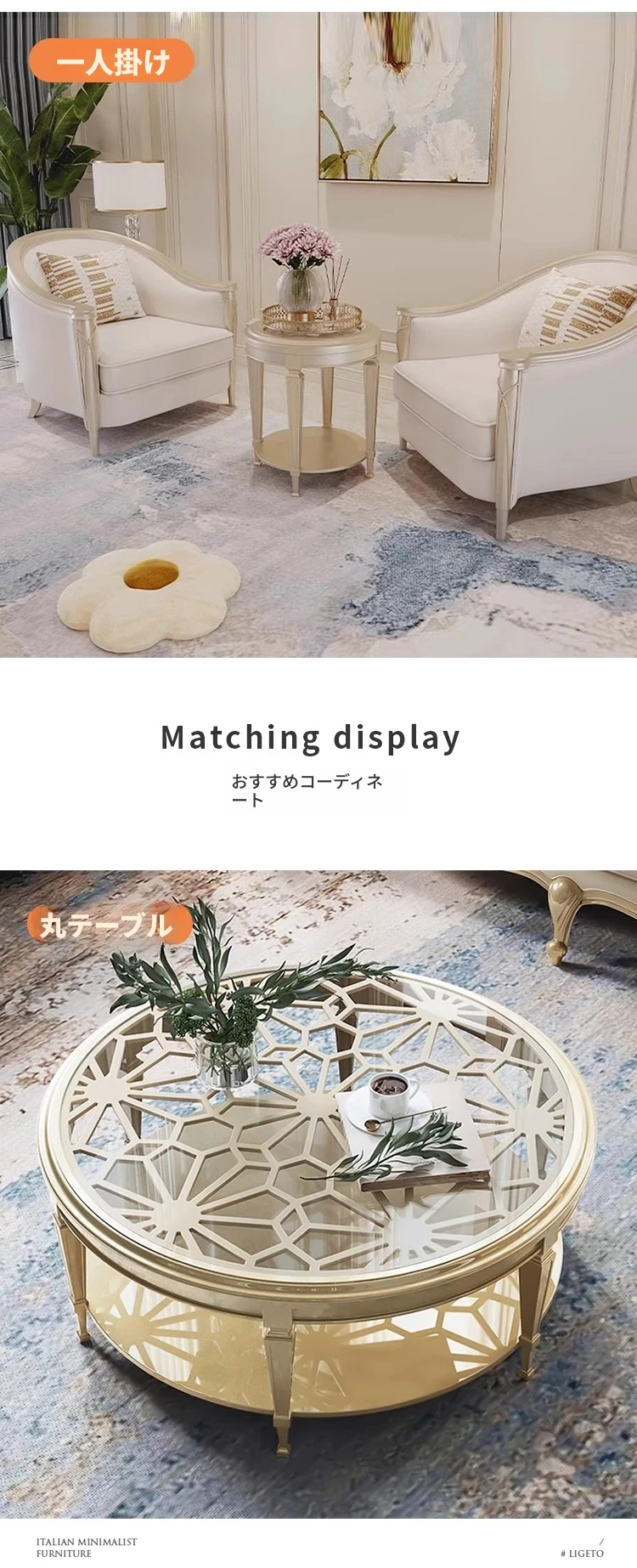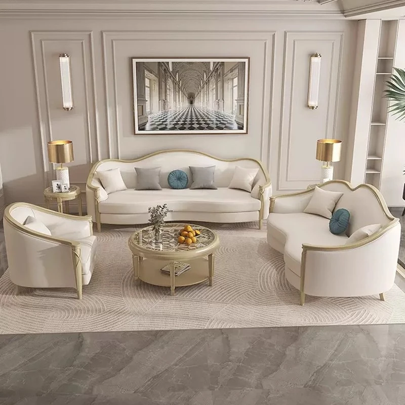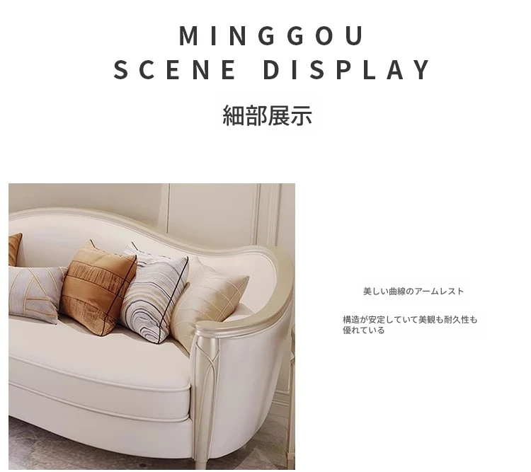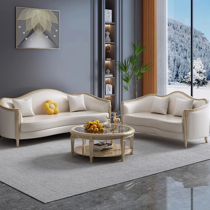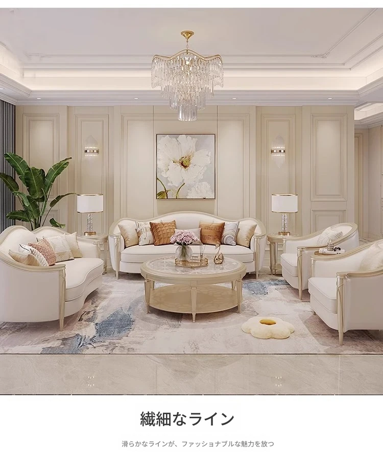 アメリカンスタイルのラグジュアリーな本革ソファーセット - 高級別荘にぴったりのエレガントな実木製リビングソファ。洗練されたデザインで、あなたの空間に上質な雰囲気を演出します。
