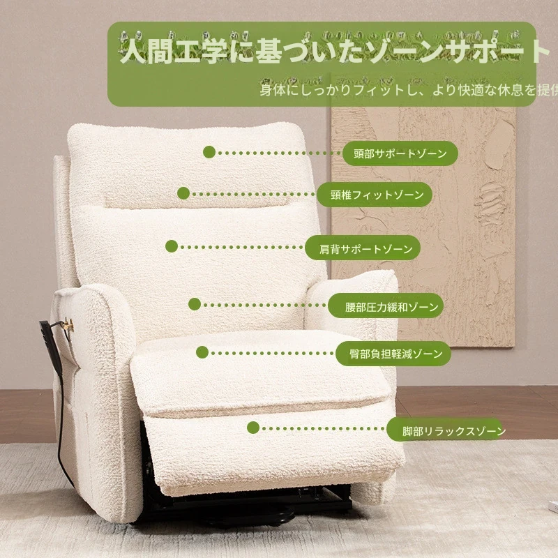 人気のゼロ重力リクライニングチェア!家庭用昇降式電動リクライナー、シニア向け電動ソファ、快適なスマートソファ、柔らかなフリース素材使用。心地よいくつろぎを実現します!