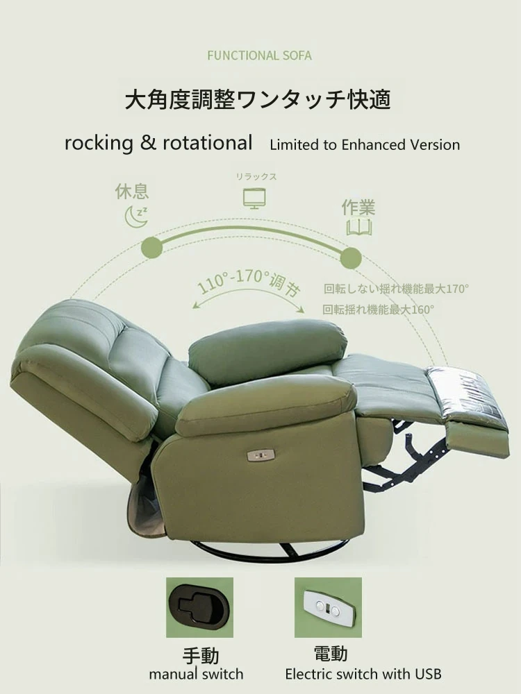 電動でリクライニング+USB充電+回転+前後揺れ