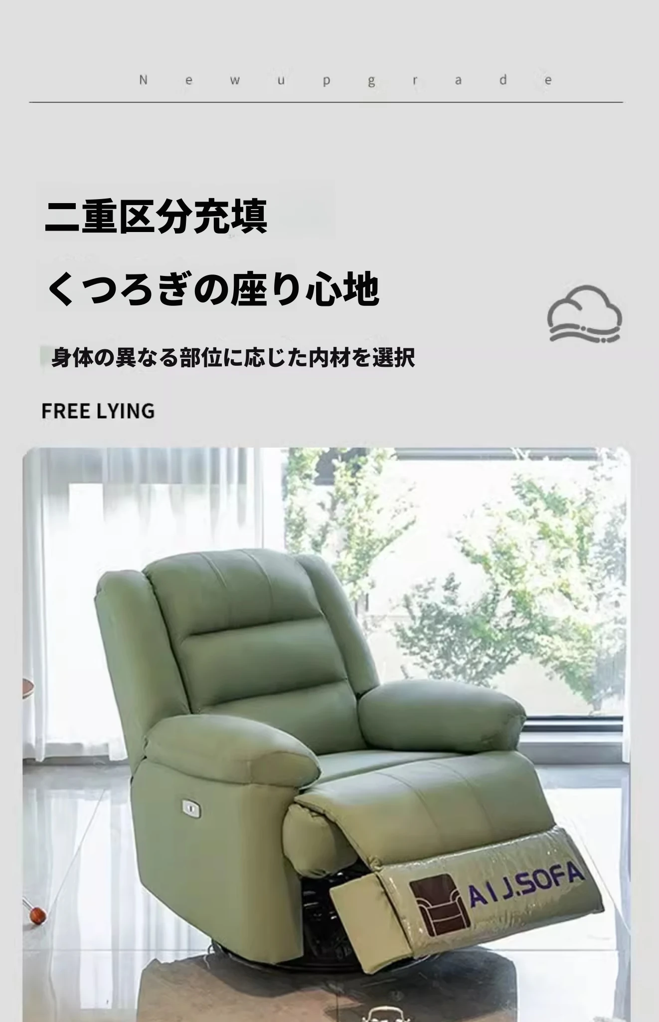 電動でリクライニング+USB充電