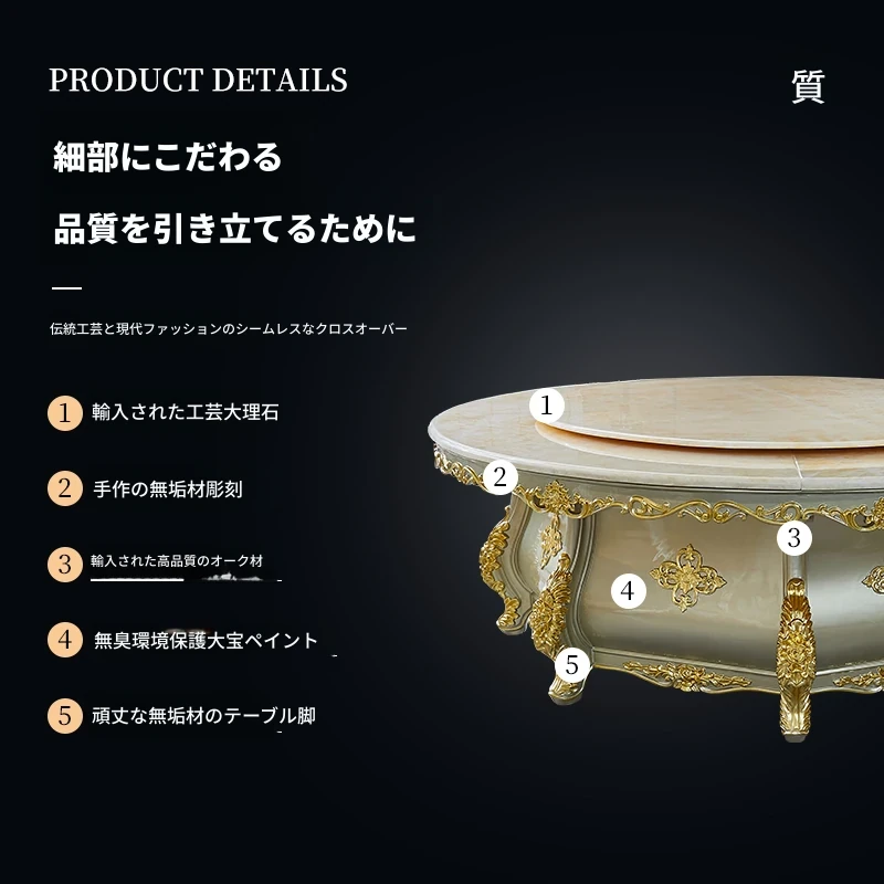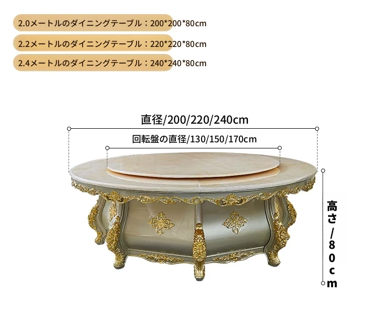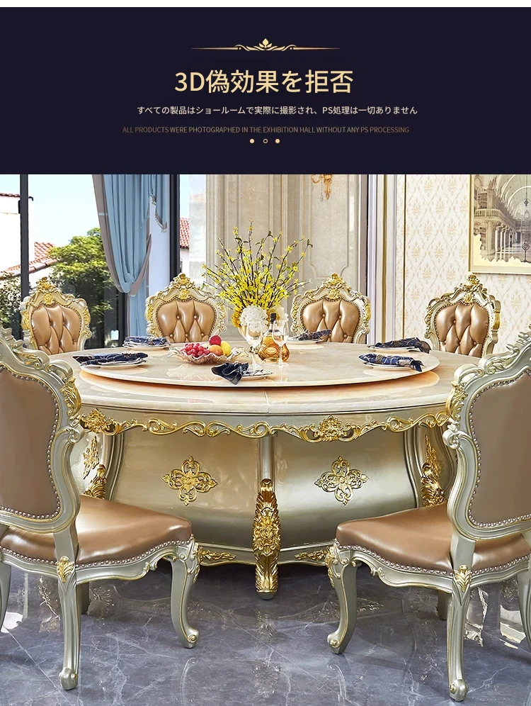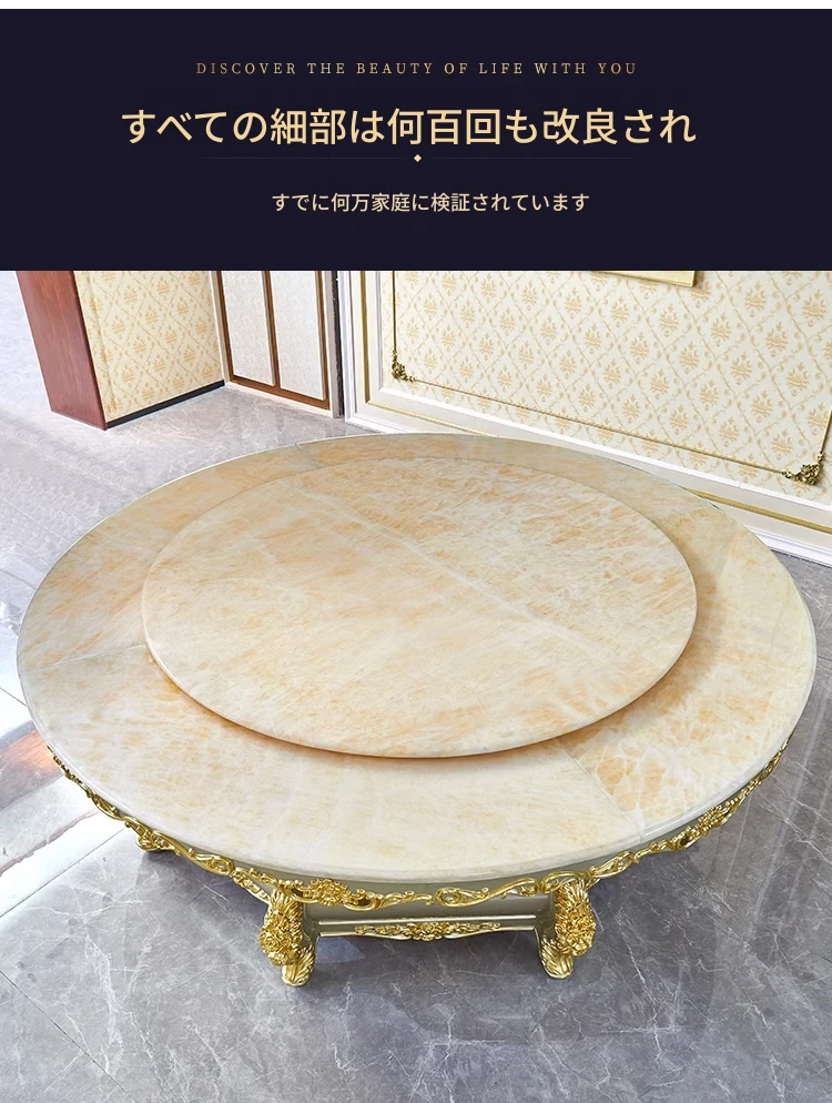 欧風天然木製ダイニングテーブルセット 大理石仕上げ 電動回転式レストラン用火鍋テーブル ヴィラやホテルに最適なラウンドテーブル