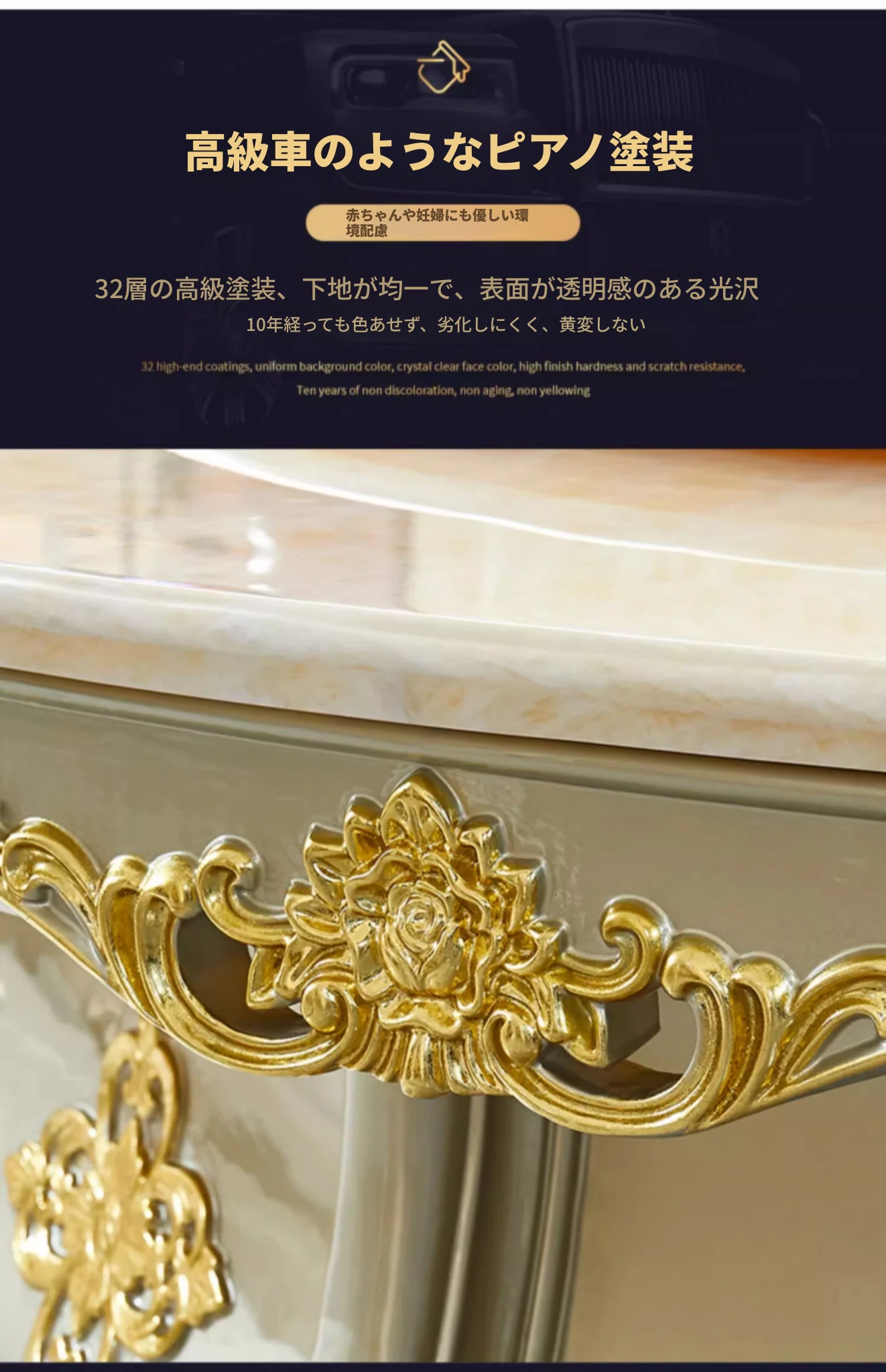 2.4メートル全無垢材ダイニングテーブル/天然大理石天板 8本脚