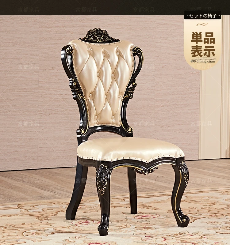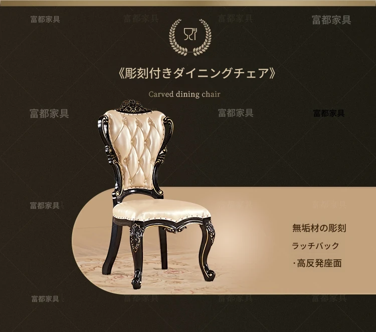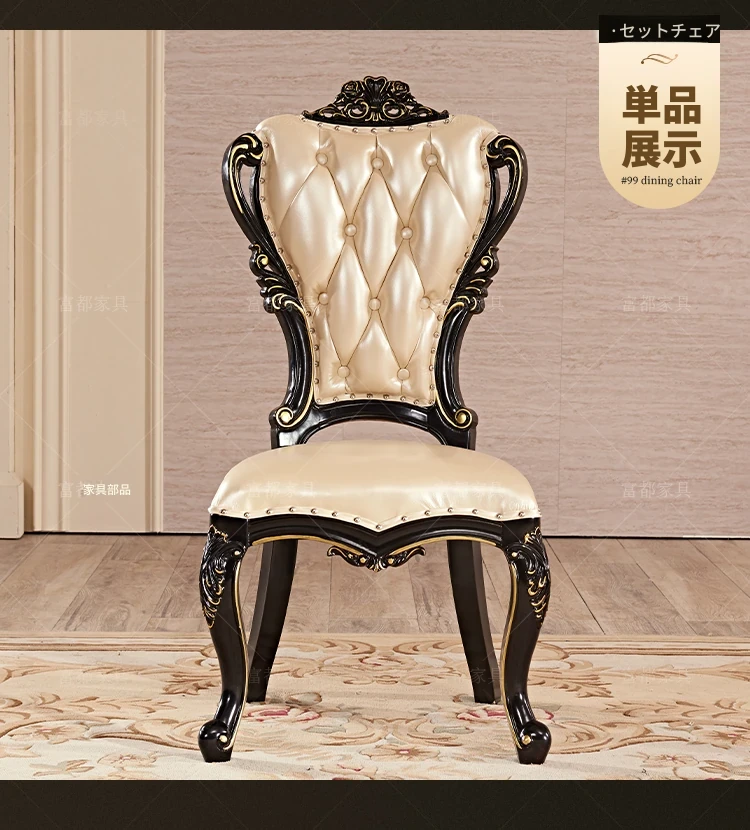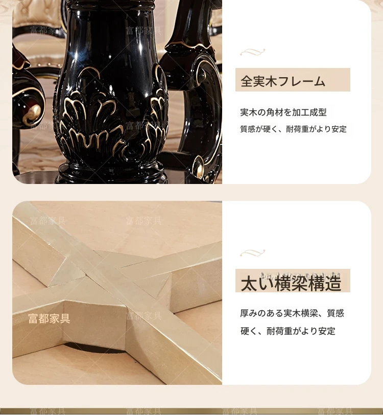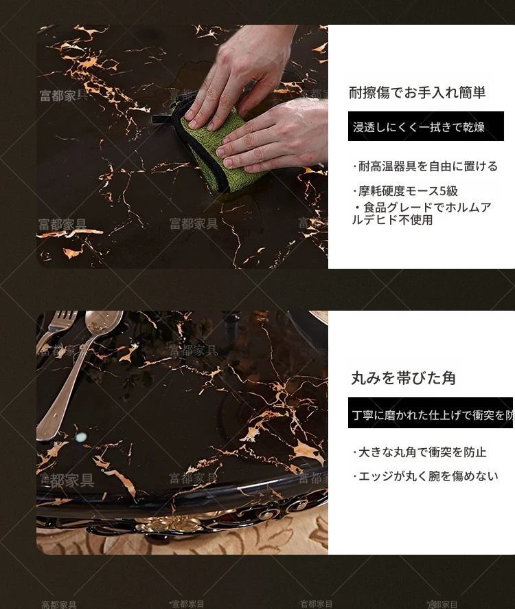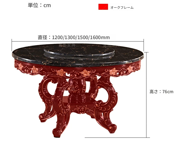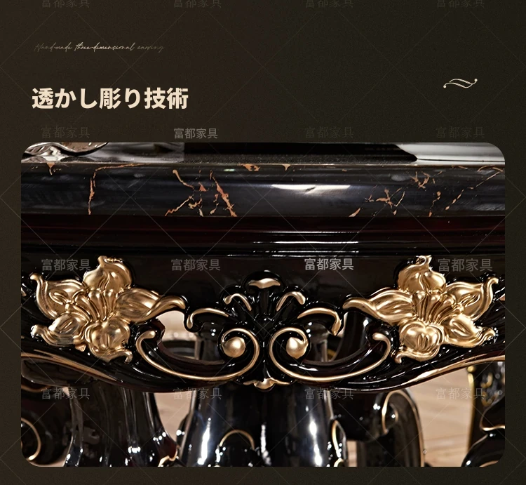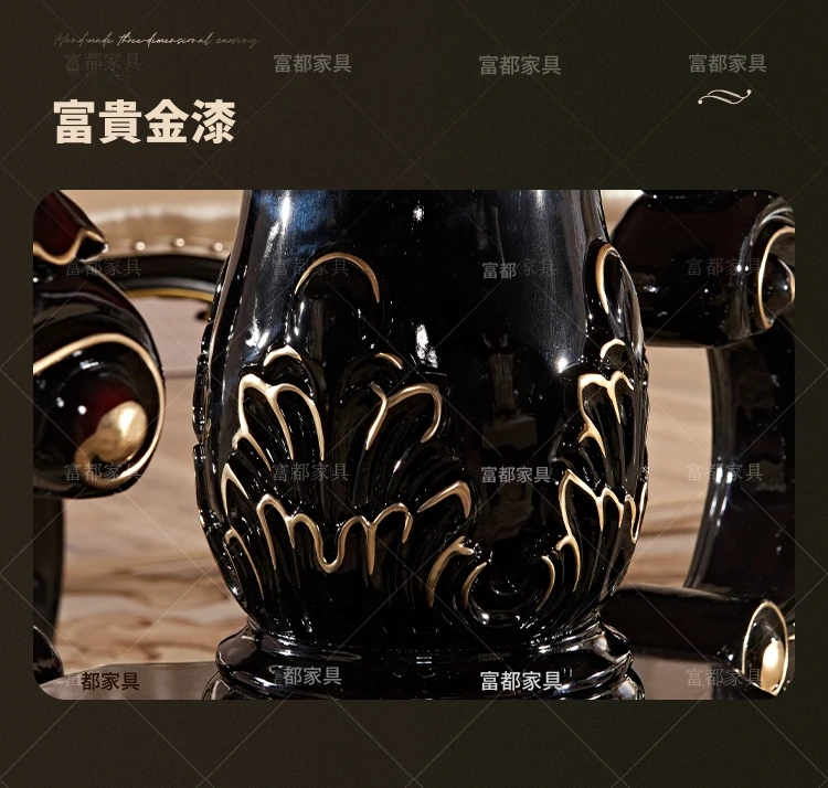 エレガントな欧風大理石ダイニングテーブルセット - 高級全木彫刻のラウンドテーブル、エボニー色、回転トレイ付き。家庭での食事を特別なひとときに演出します!