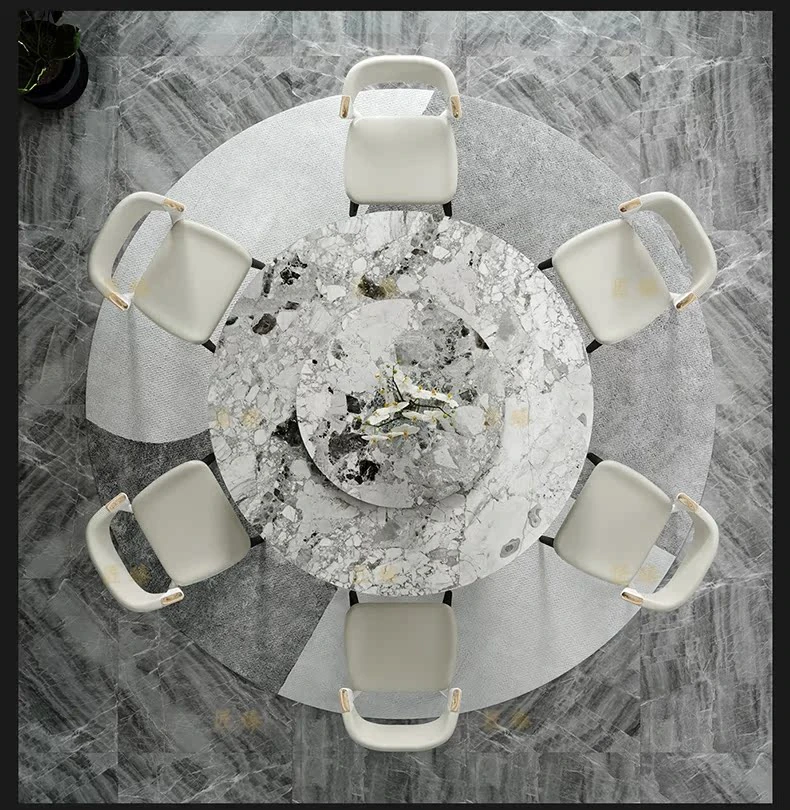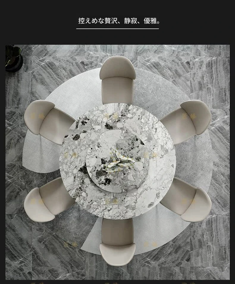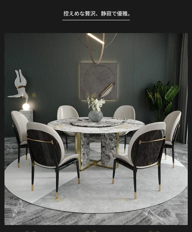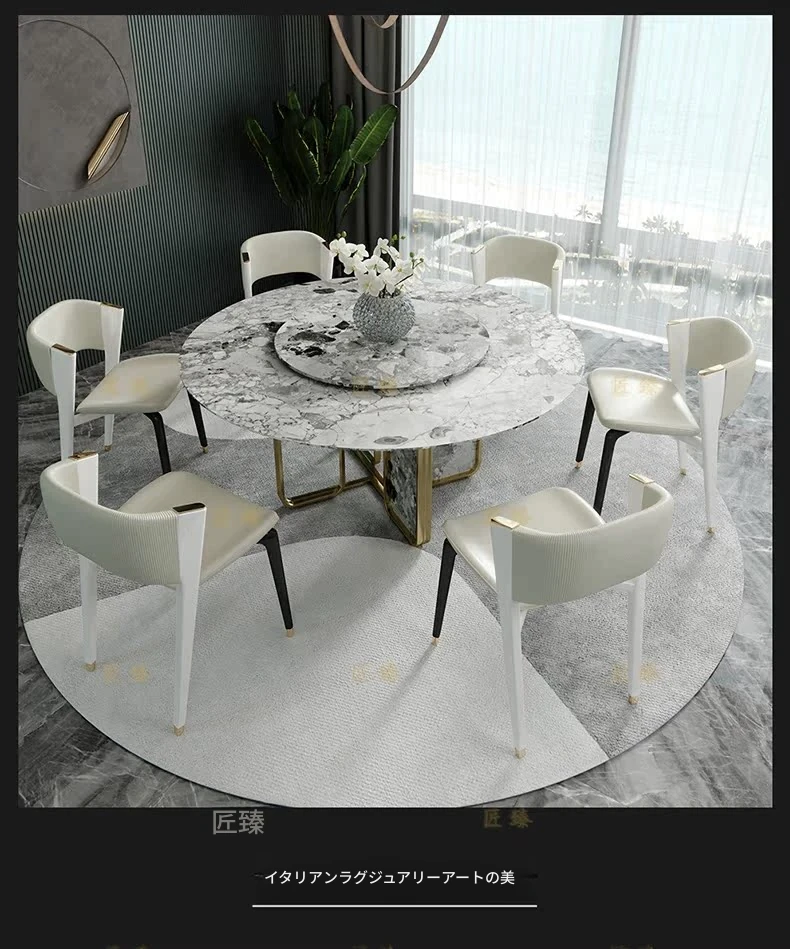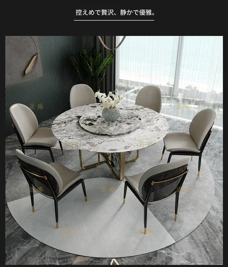 軽やかで贅沢なイタリアンスタイルのラウンドテーブル!北欧モダンなシンプルデザイン、回転式の大理石ダイニングテーブルと椅子のセットで、食卓を華やかに演出します。おしゃれで機能的な家具で、特別なひとときをお楽しみください。