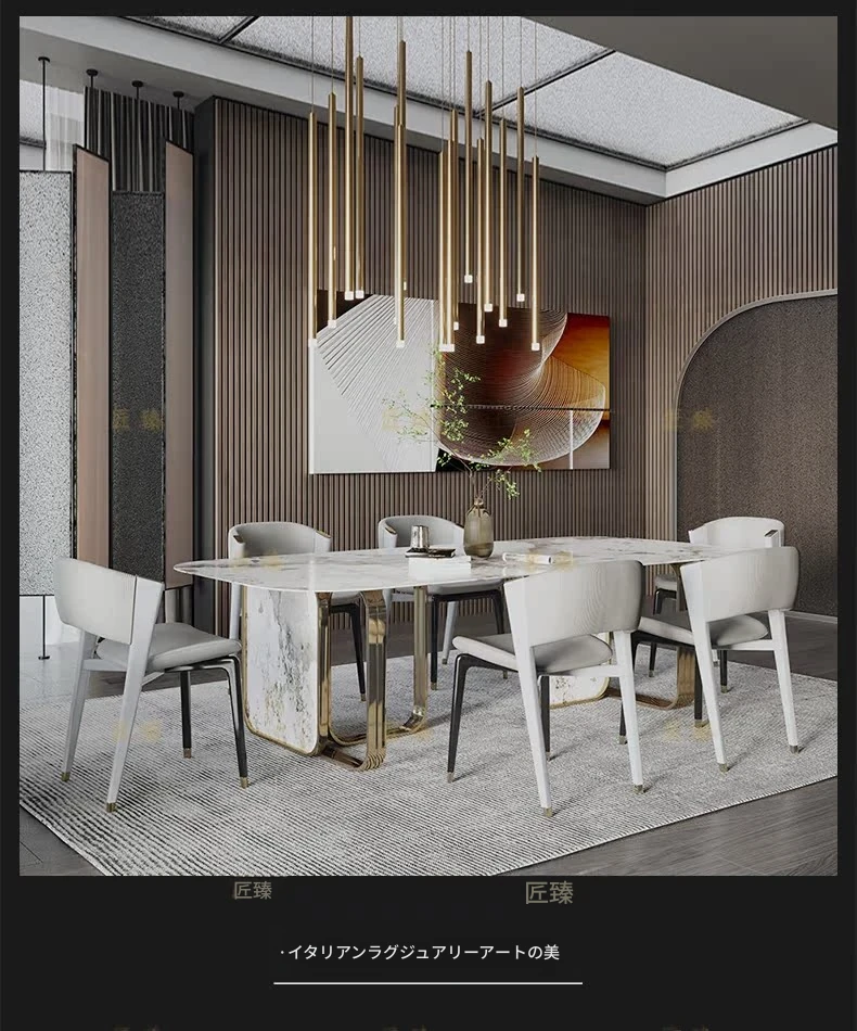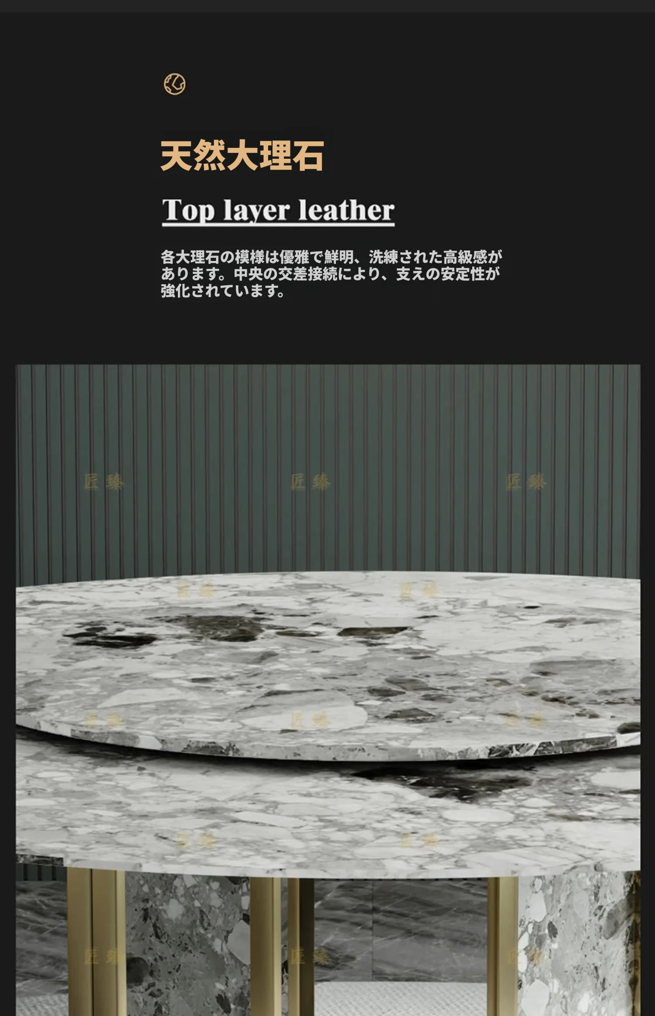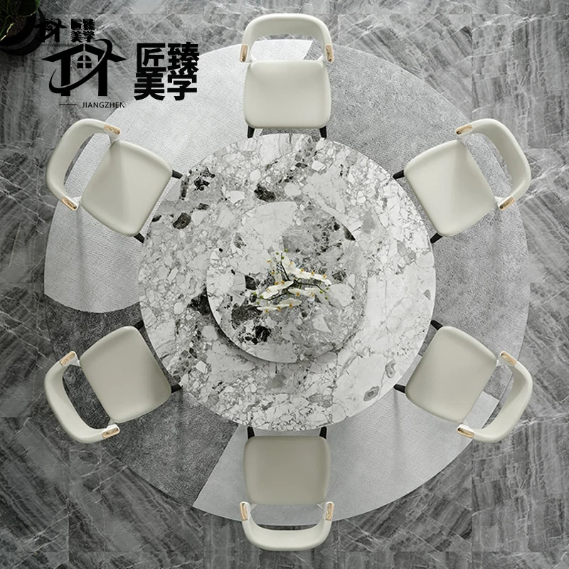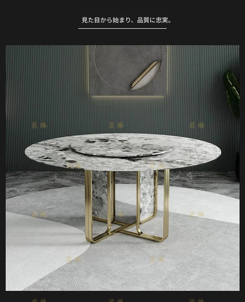 軽やかで贅沢なイタリアンスタイルのラウンドテーブル!北欧モダンなシンプルデザイン、回転式の大理石ダイニングテーブルと椅子のセットで、食卓を華やかに演出します。おしゃれで機能的な家具で、特別なひとときをお楽しみください。