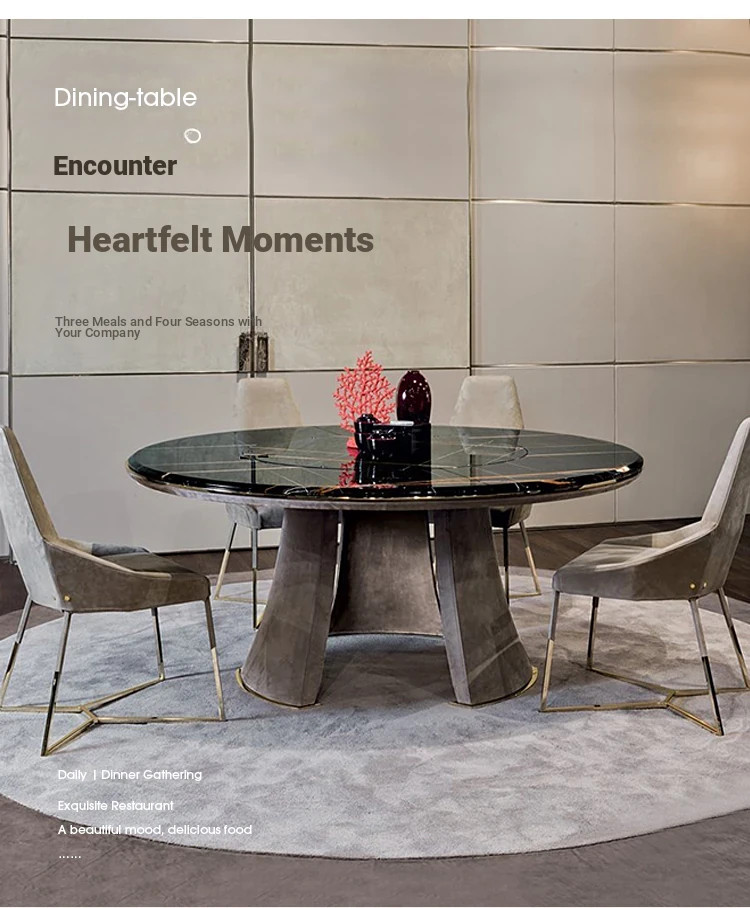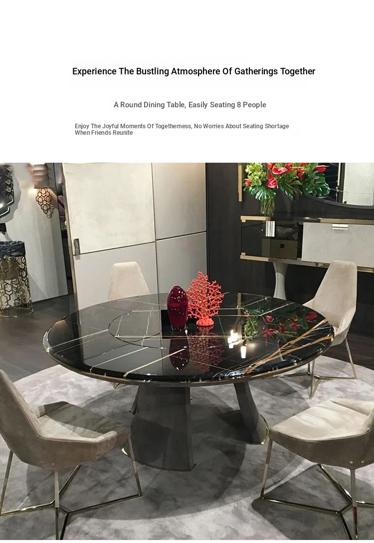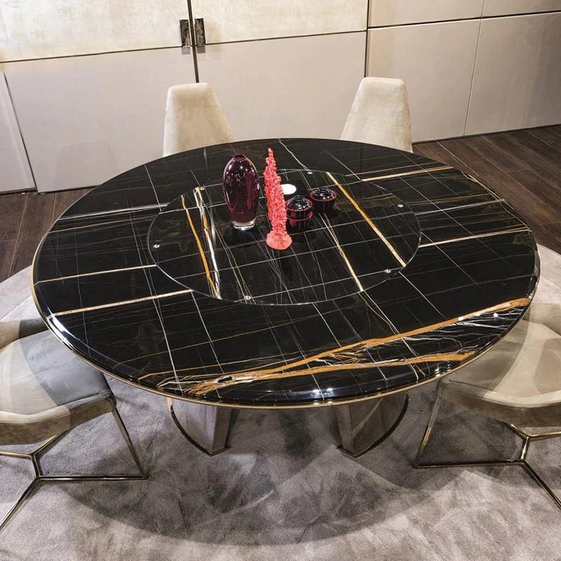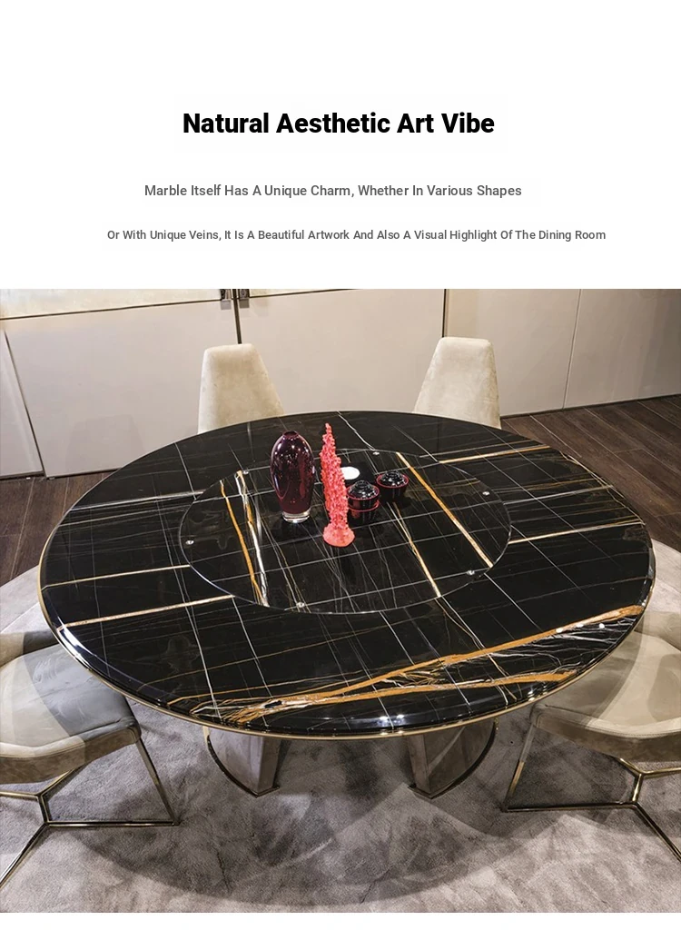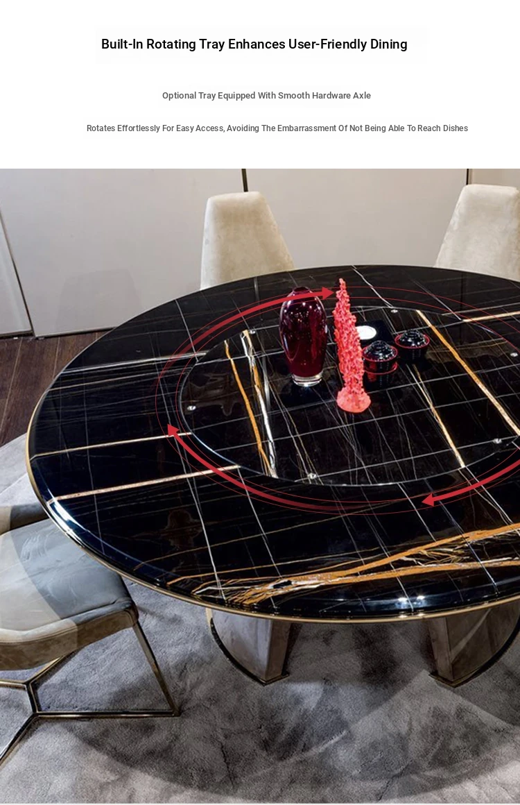 Elegant Italian Minimalist Marble Dining Table - Modern Round Table with Lazy Susan for Luxurious Dining Experience in Your Restaurant or Home