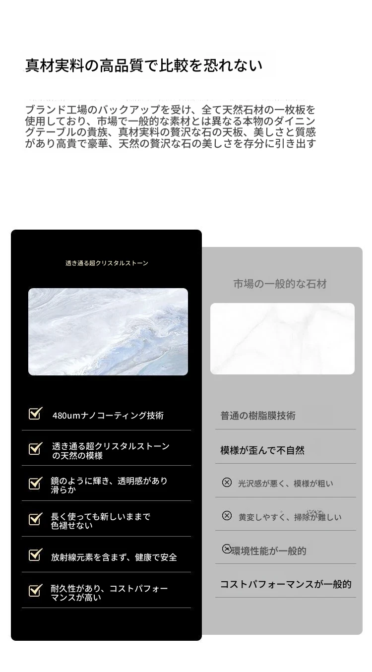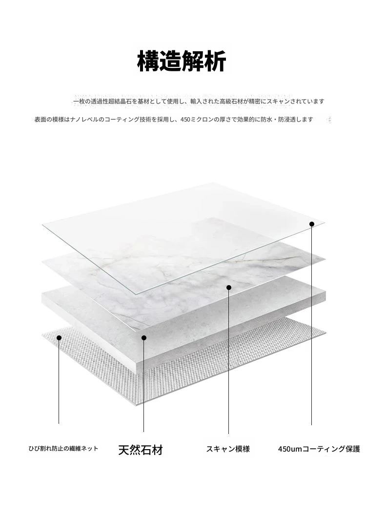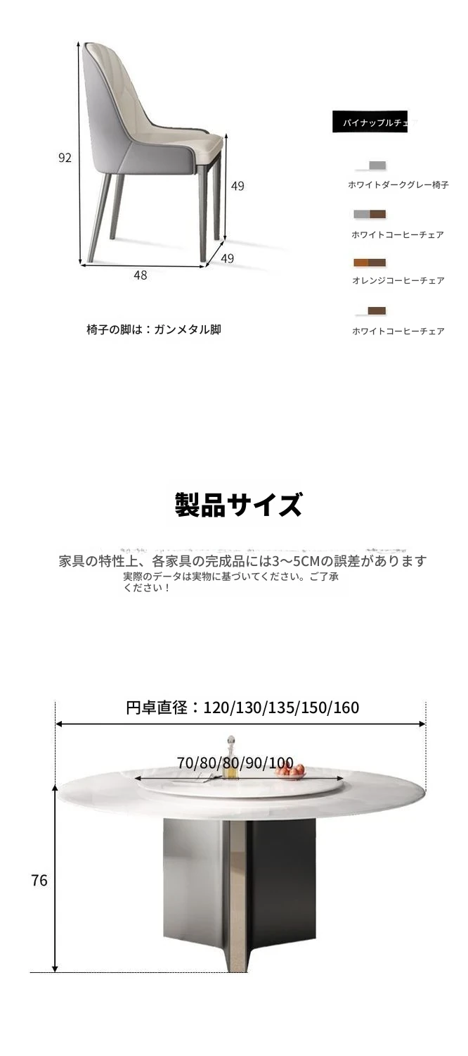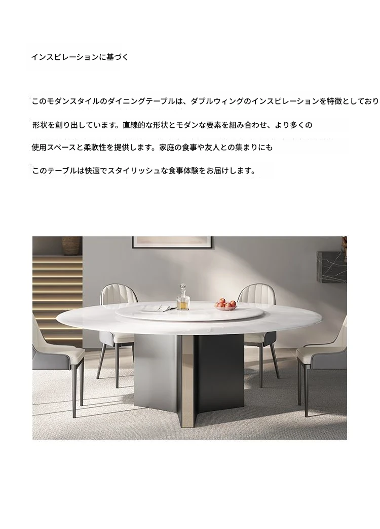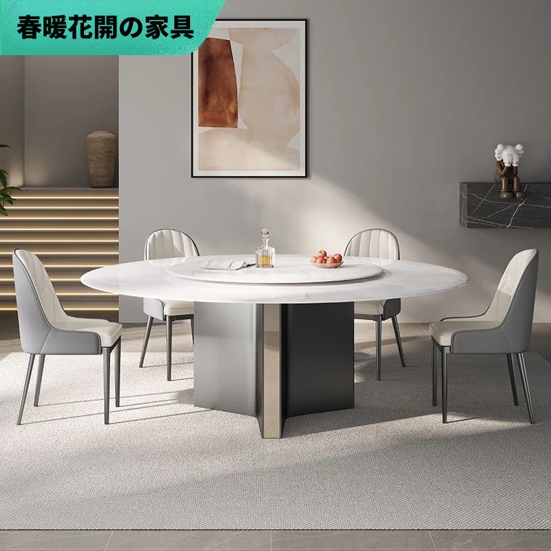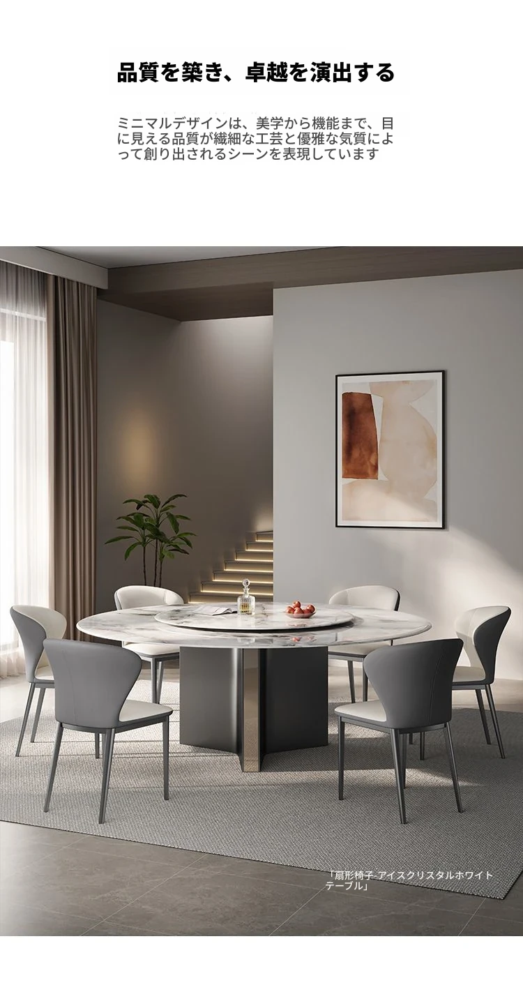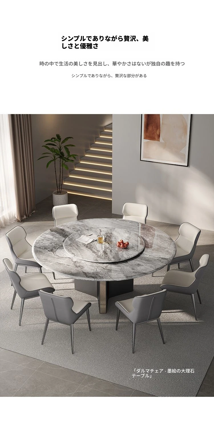 軽やかな贅沢を楽しむ!天然ミクロクリスタルストーン使用、コンパクトサイズのラウンドダイニングテーブル。ターンテーブル付きで、家族や友人との食事をもっと楽しく!小さな空間にもぴったりなデザインです。