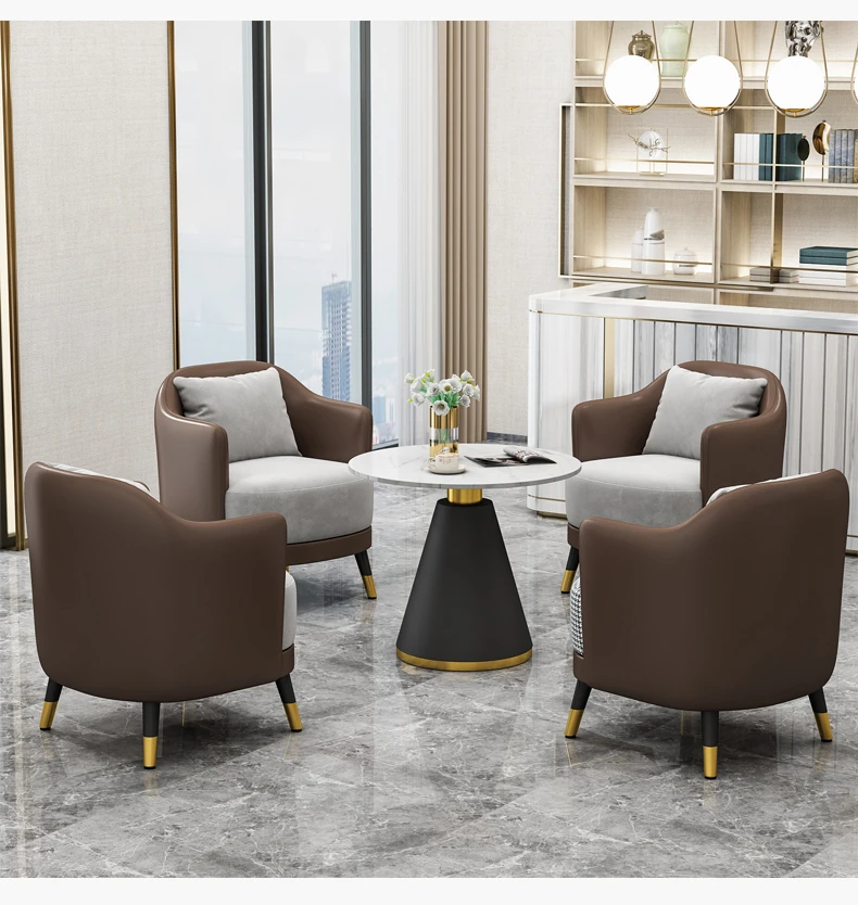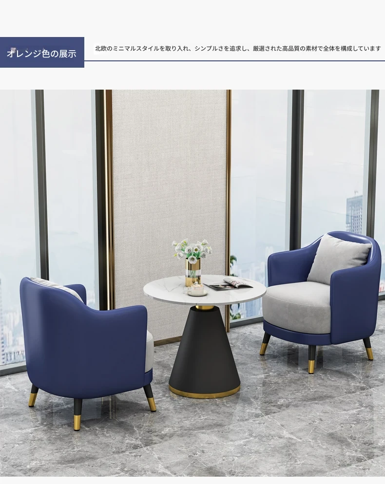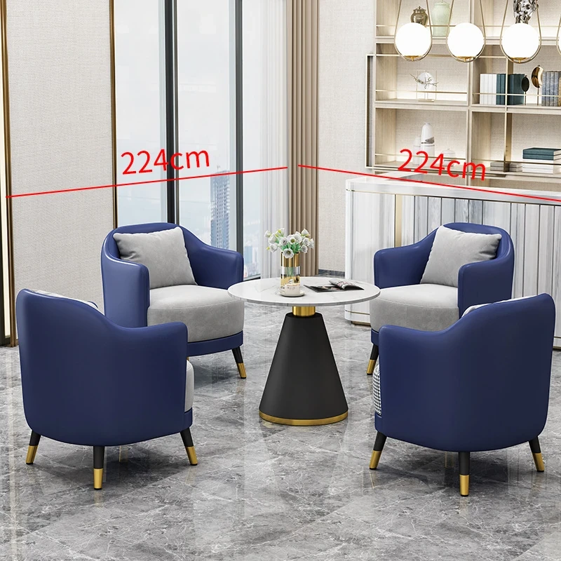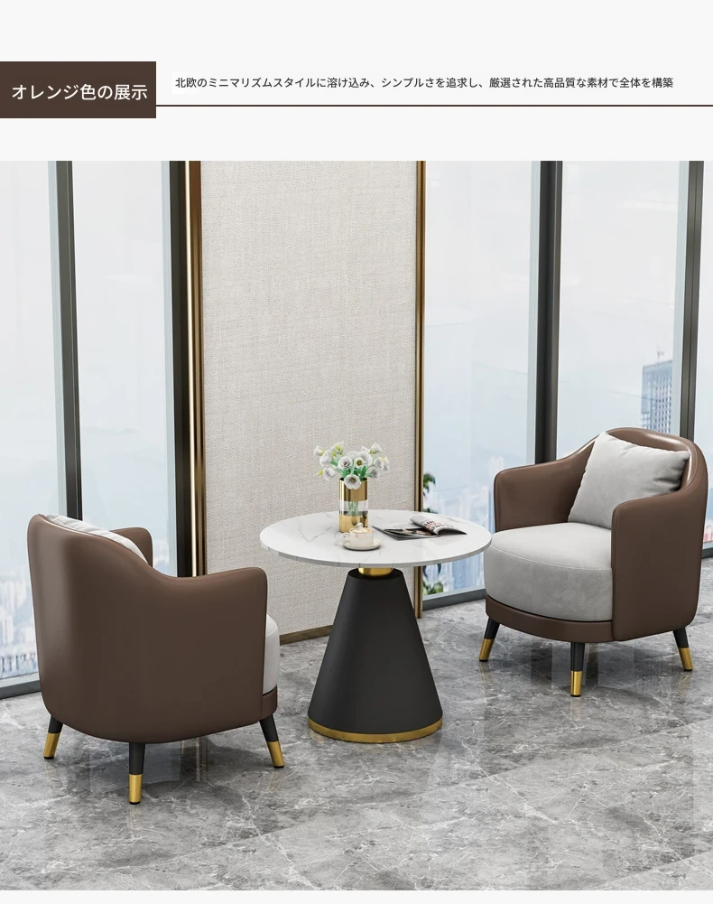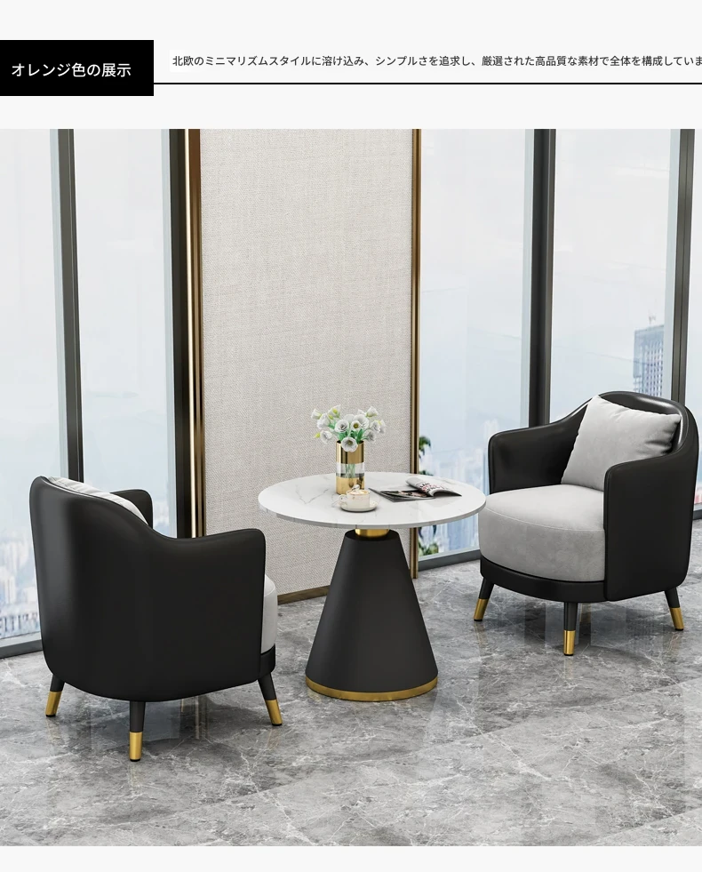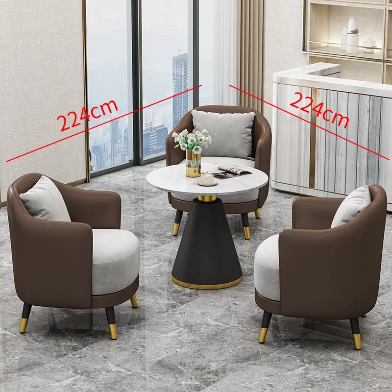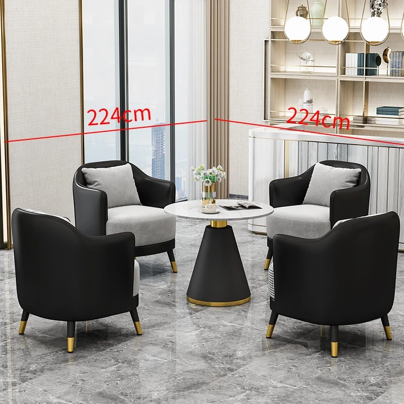 シンプルでラグジュアリーなオフィス用ティーテーブルセット|リラックス空間に最適なホテル接待・販売所用会談テーブル&椅子|美容院向け上質なソファで心地よいおもてなしを実現!