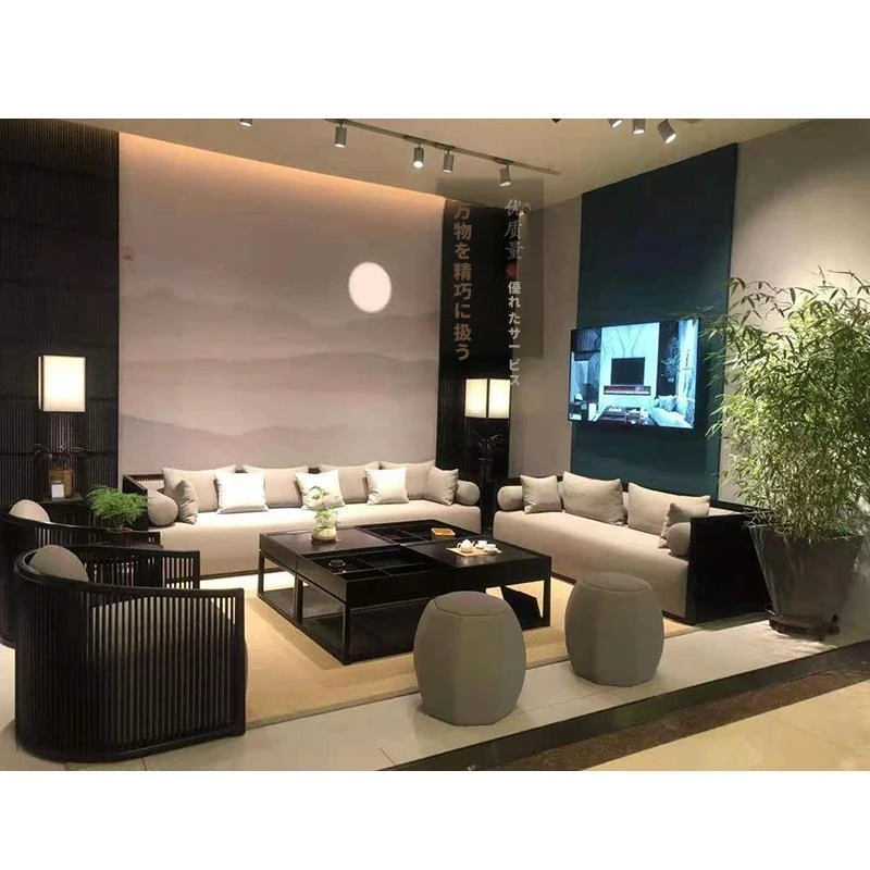新中式の高級無垢材ソファセット - 禅の雰囲気を楽しむリビングに最適!大中小さまざまなタイプの別荘やホテルにもぴったり。チキンウィングウッド製の洗練された家具で、心安らぐ空間を演出します。