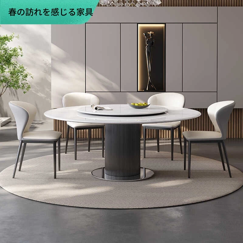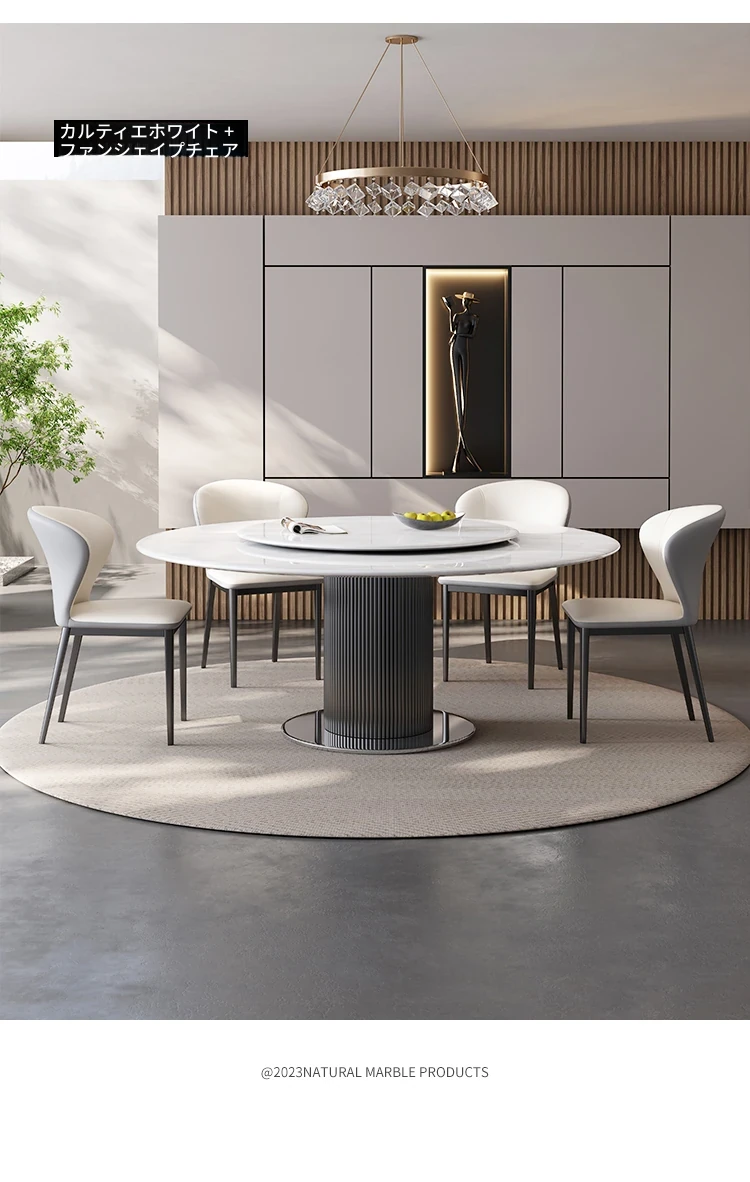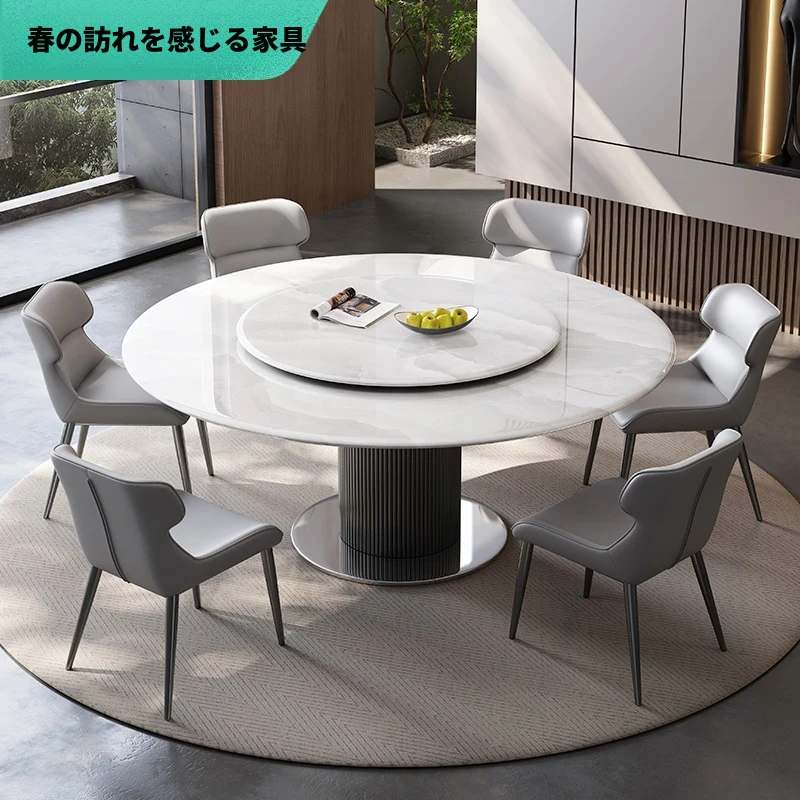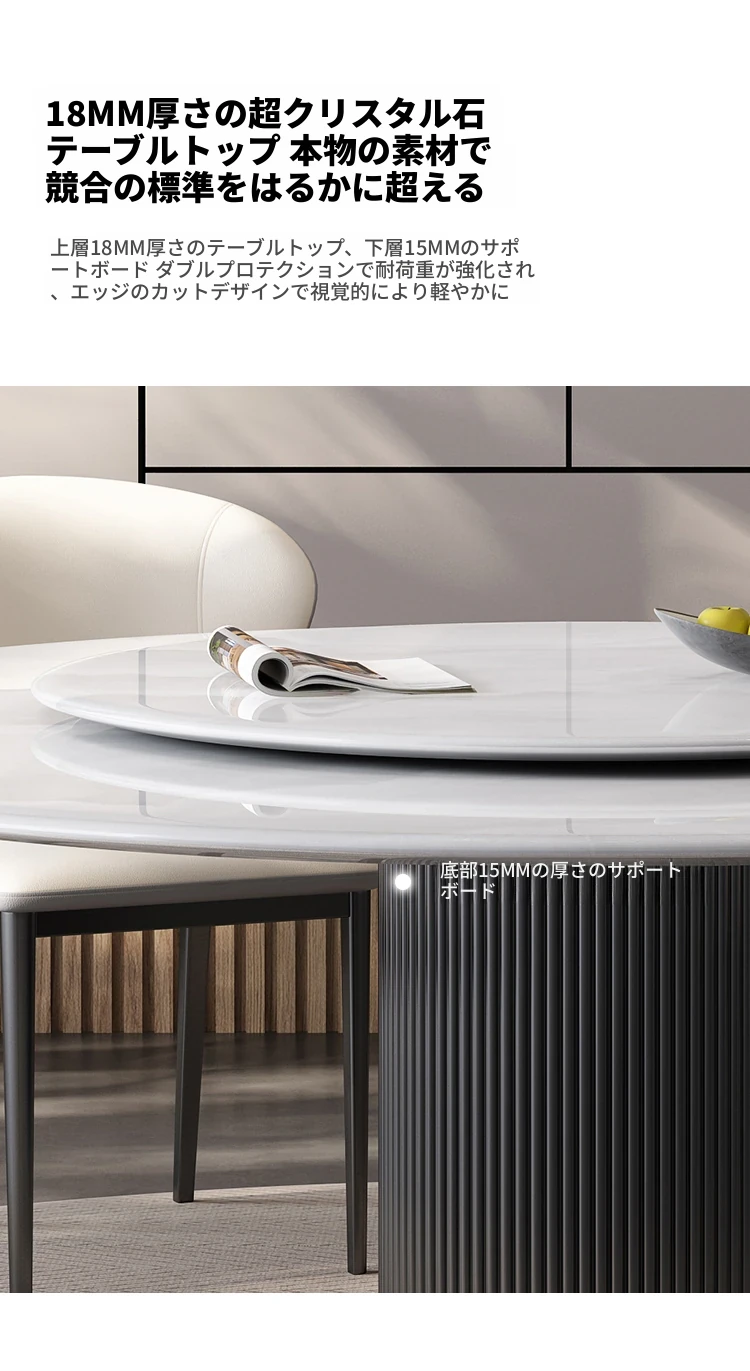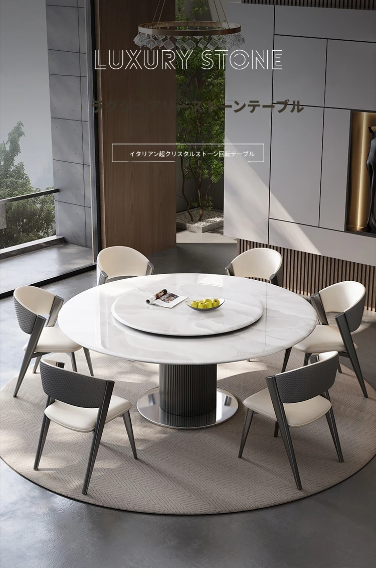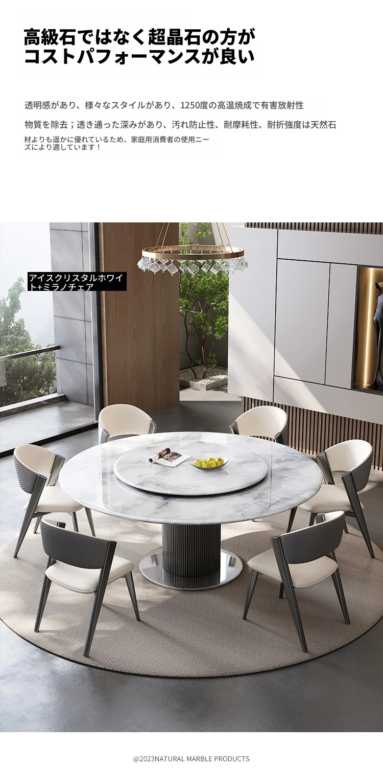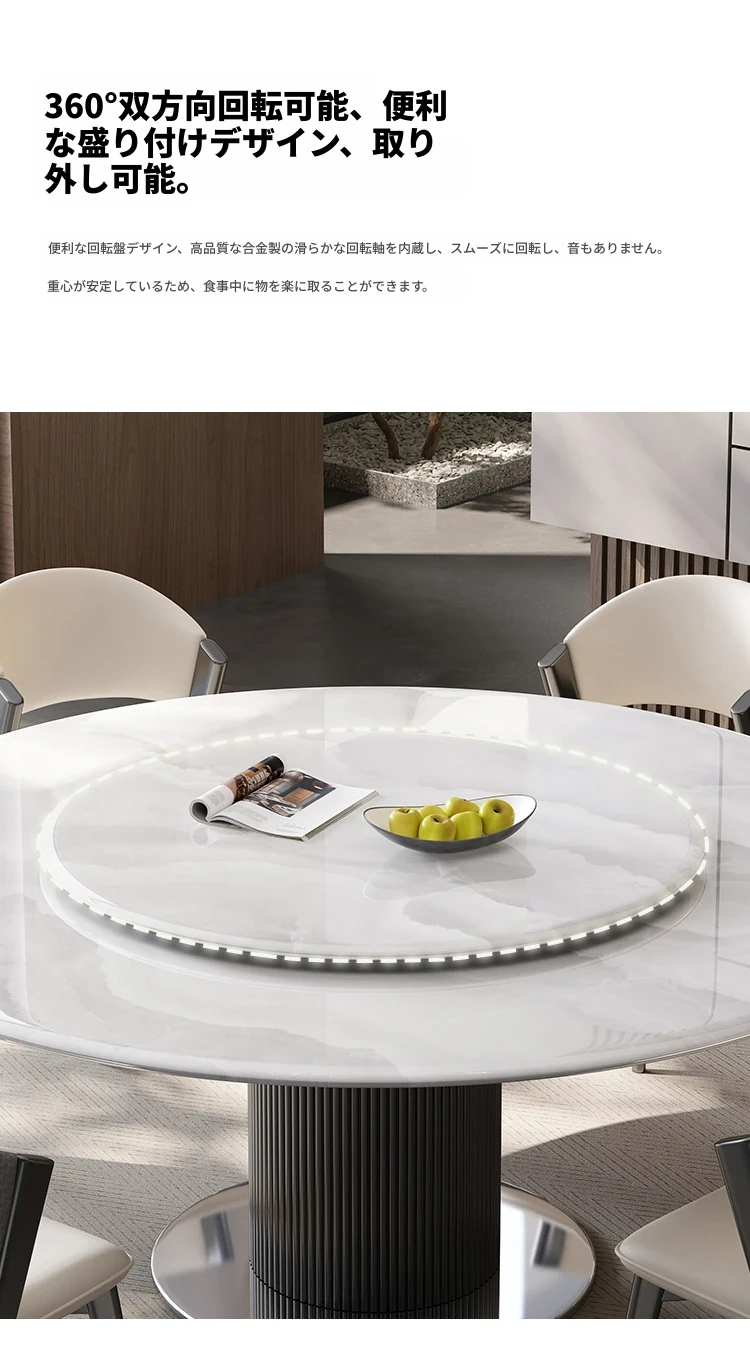 軽奢感あふれる超クリスタルストーン製のダイニングテーブル!小型住宅にぴったりなモダンでシンプルなデザイン、回転式のラウンドテーブルで、天然大理石の美しさを楽しめます。食卓を華やかに彩る一品です!