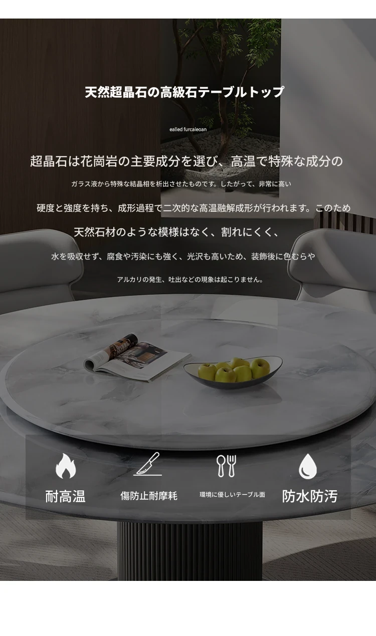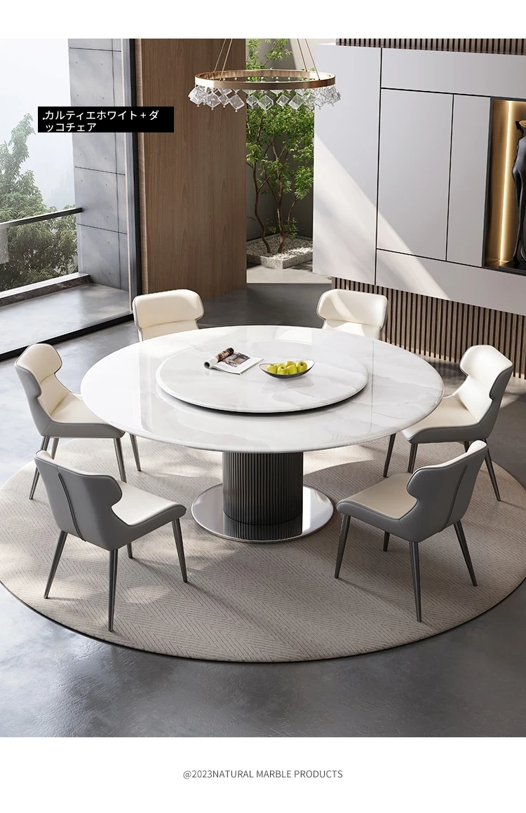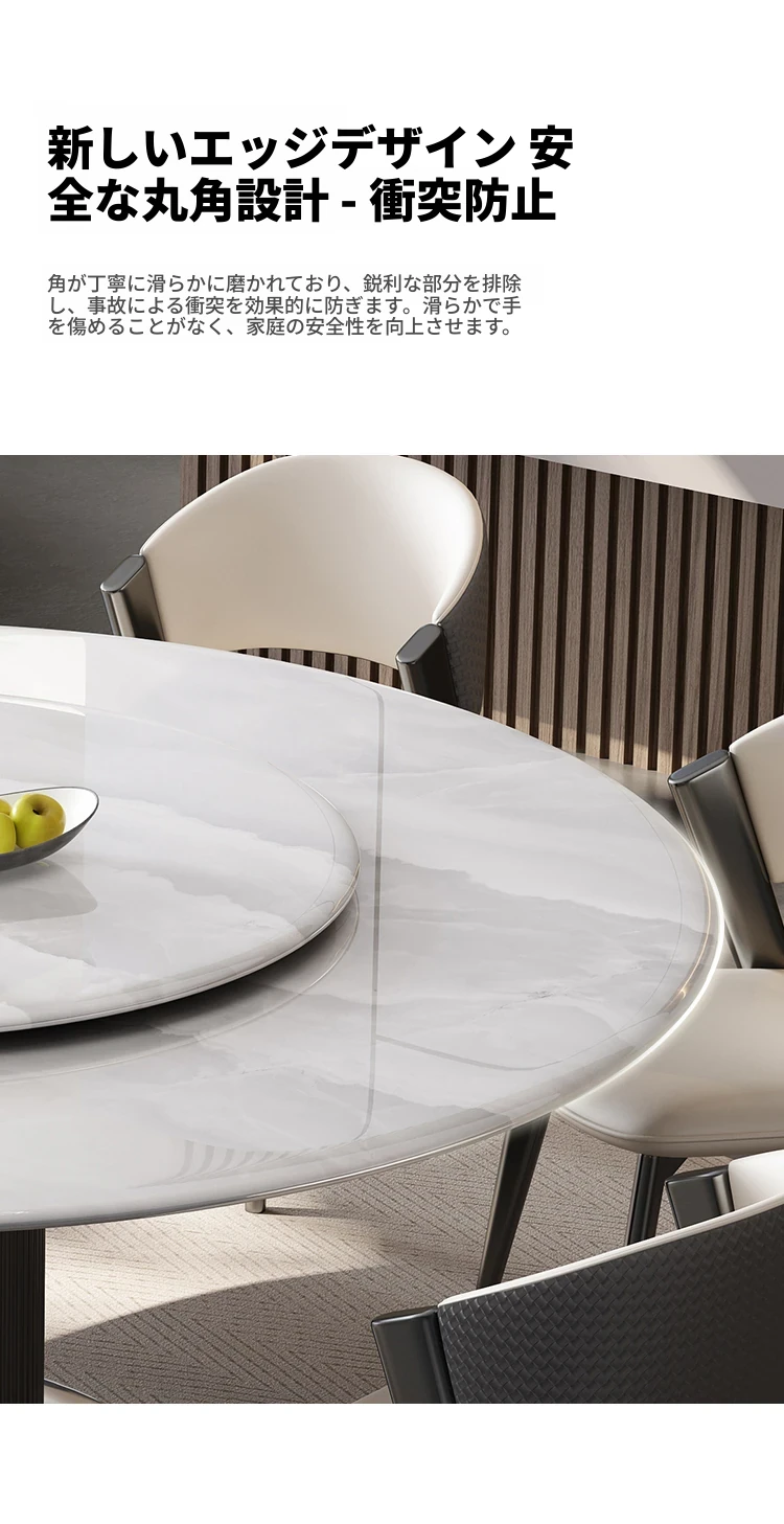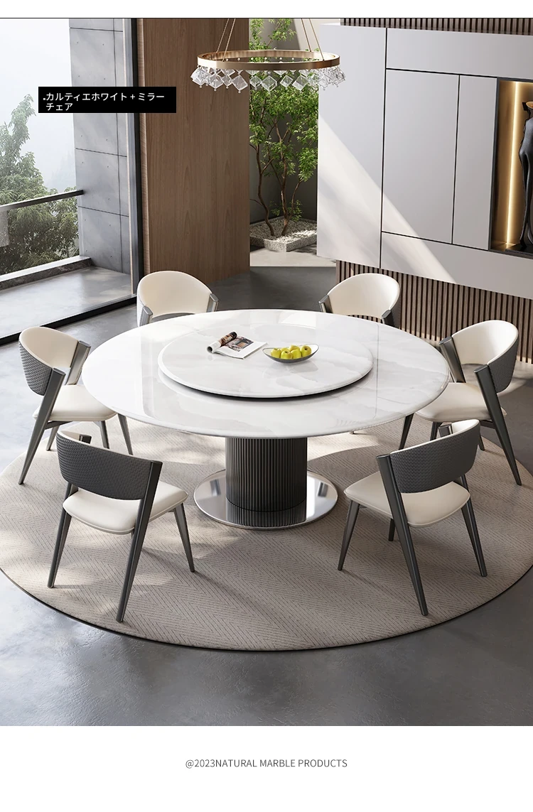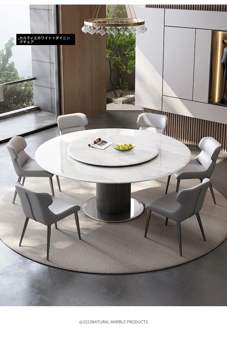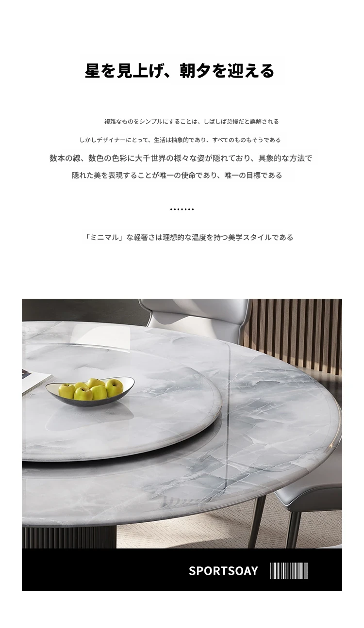 軽奢感あふれる超クリスタルストーン製のダイニングテーブル!小型住宅にぴったりなモダンでシンプルなデザイン、回転式のラウンドテーブルで、天然大理石の美しさを楽しめます。食卓を華やかに彩る一品です!