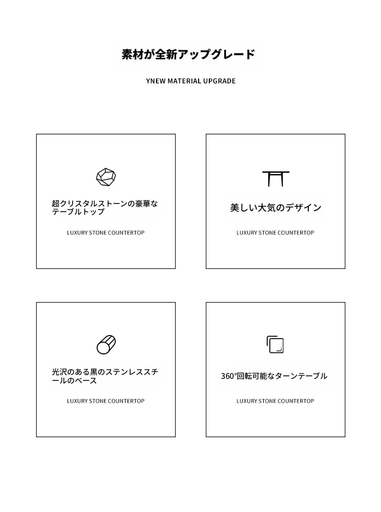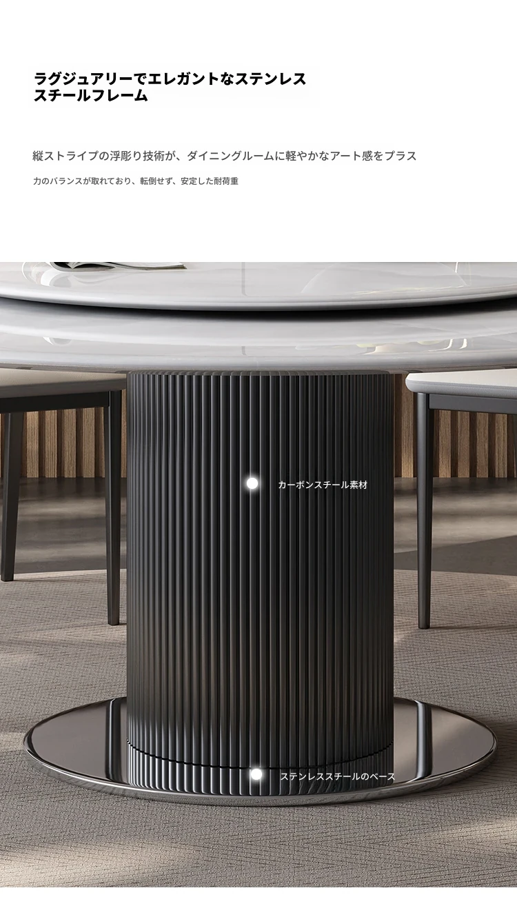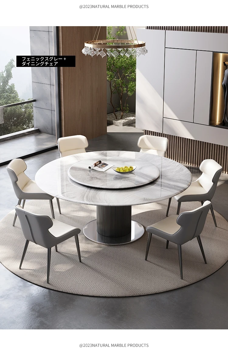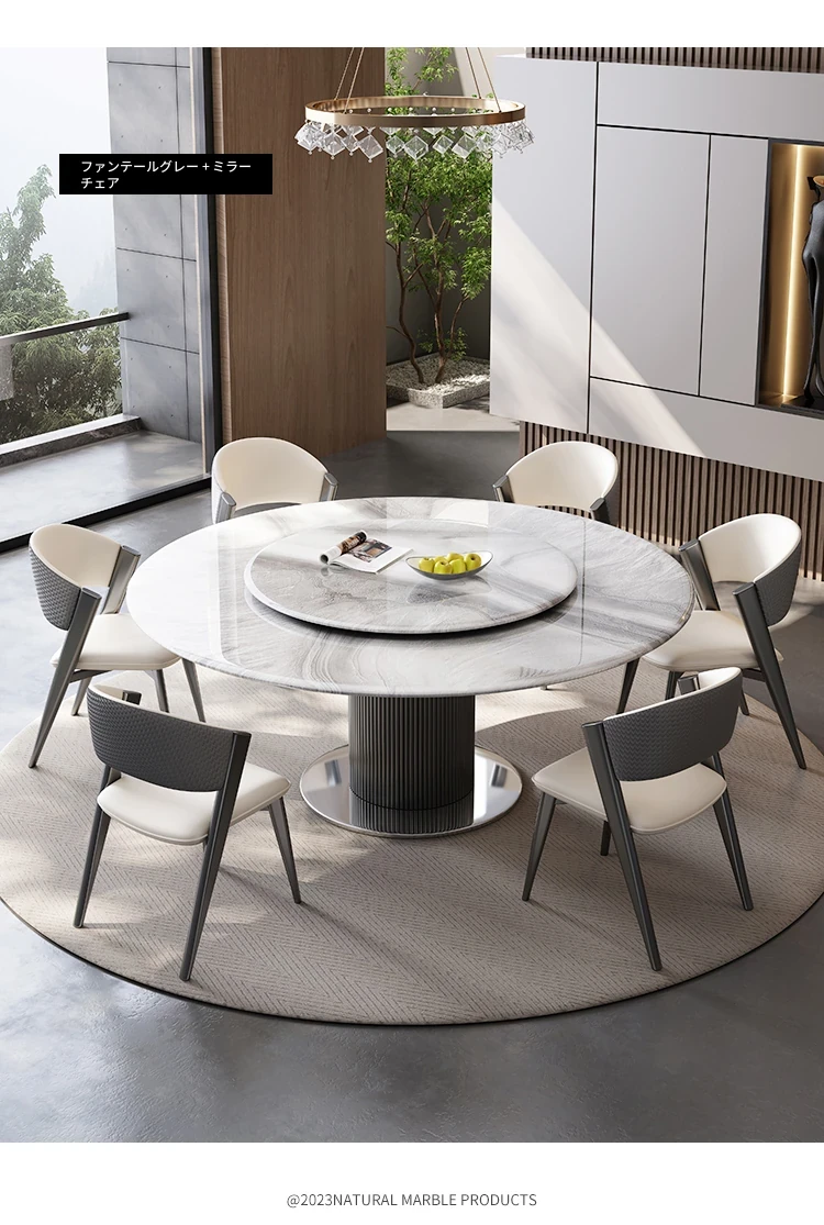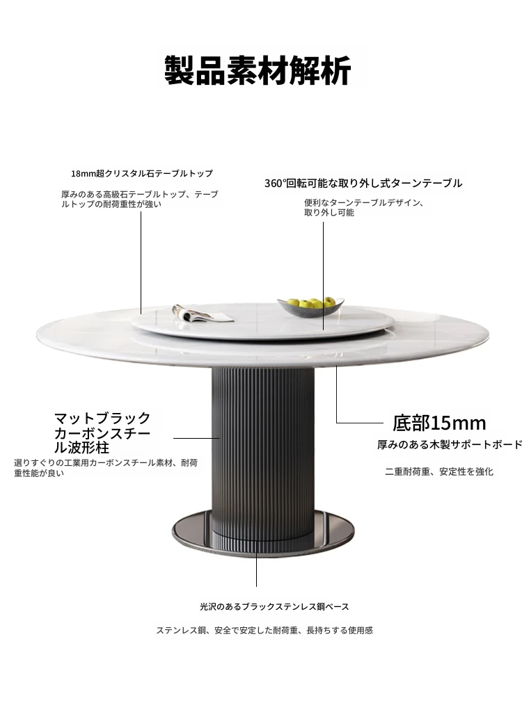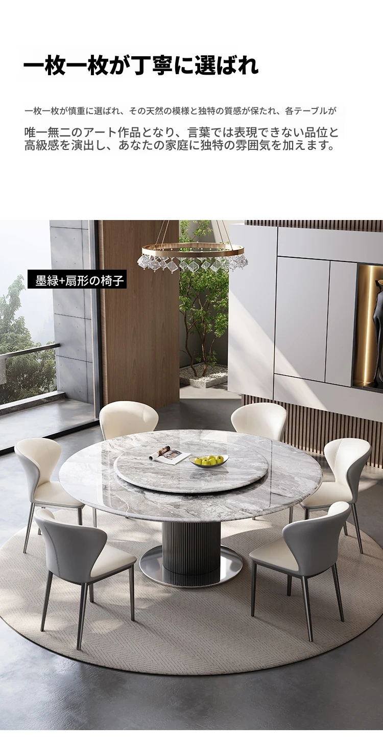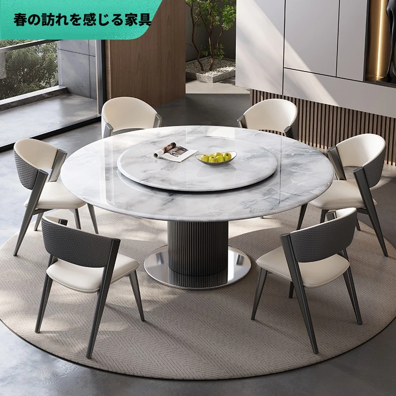 軽奢感あふれる超クリスタルストーン製のダイニングテーブル!小型住宅にぴったりなモダンでシンプルなデザイン、回転式のラウンドテーブルで、天然大理石の美しさを楽しめます。食卓を華やかに彩る一品です!