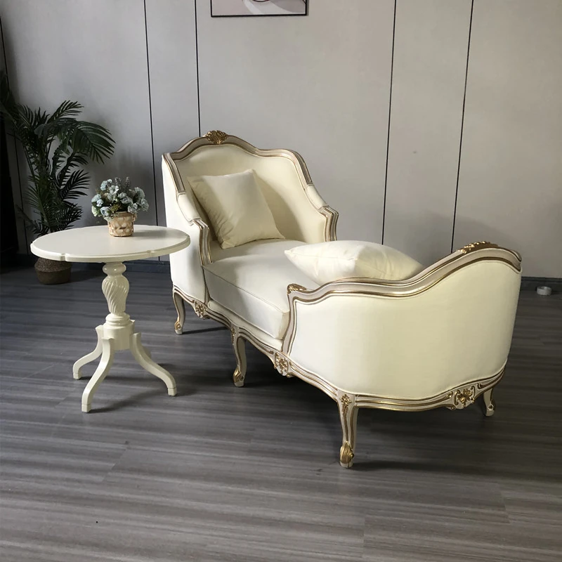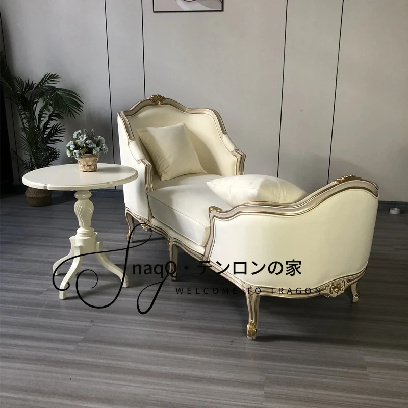 フランス風カントリースタイルの無垢材製の貴婦人用チェア、新古典的なリビングルームソファ、優雅な宮廷スタイルのバルコニー用ソファ、軽やかなラグジュアリーのサイドテーブル付き。快適さと美しさを兼ね備えた一品です!