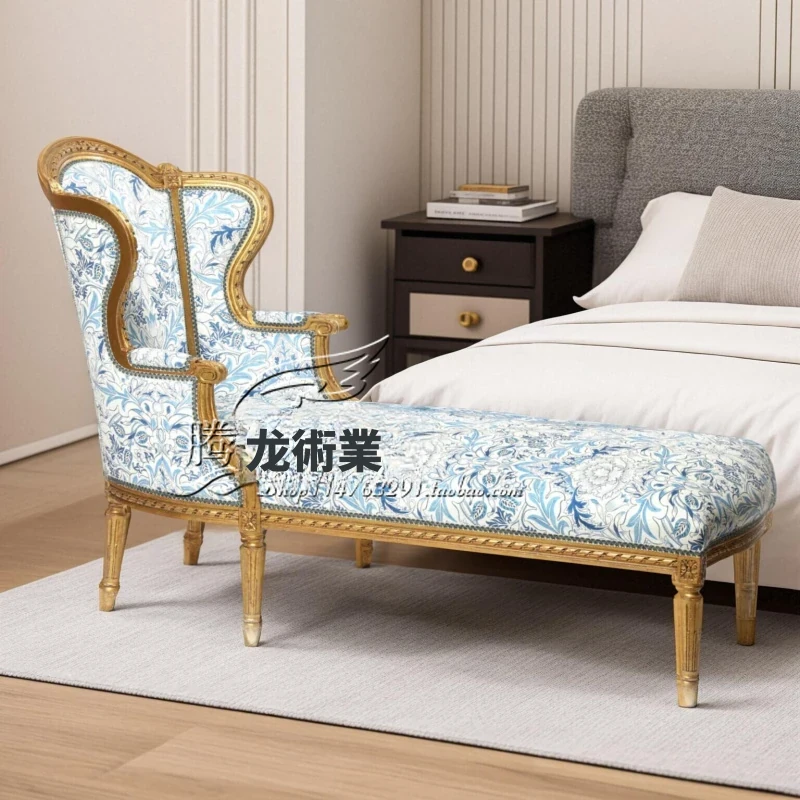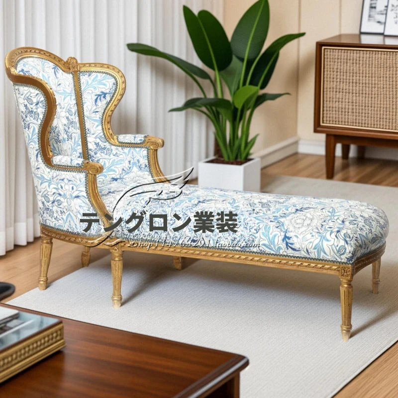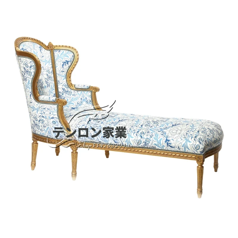 フランス風の無垢材プリンセスデイベッド - 上質なファブリック使用、エレガントなリビングルームソファ。ヴィンテージ仕上げのラグジュアリーなラウンジチェアで、リラックスしたひとときをお楽しみください。