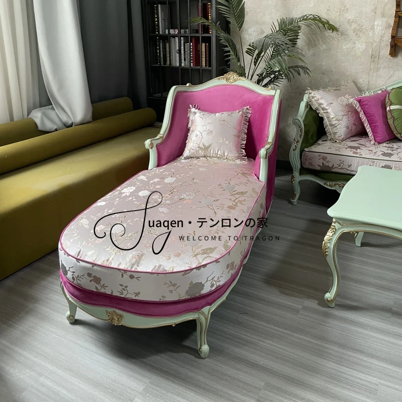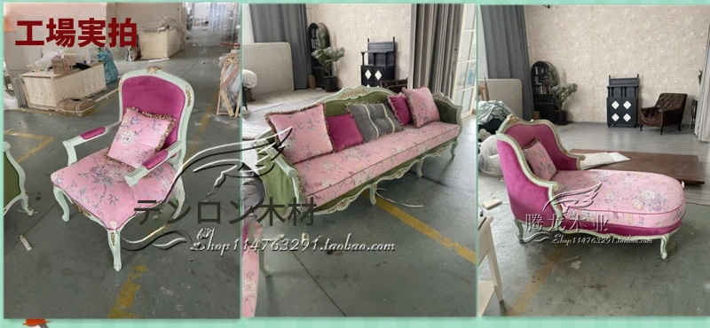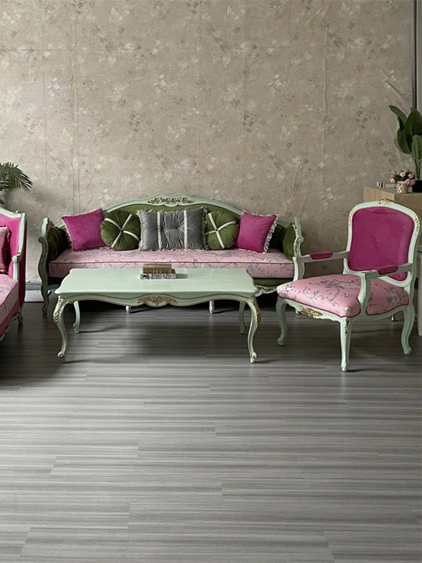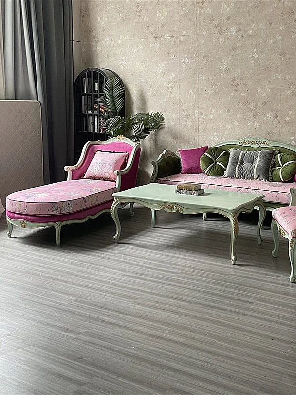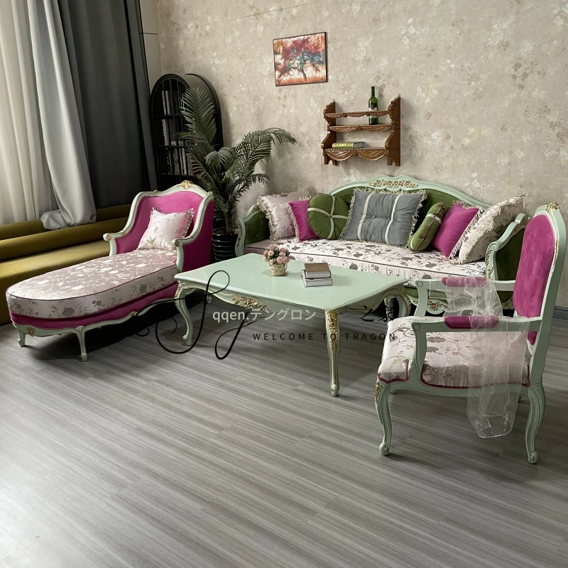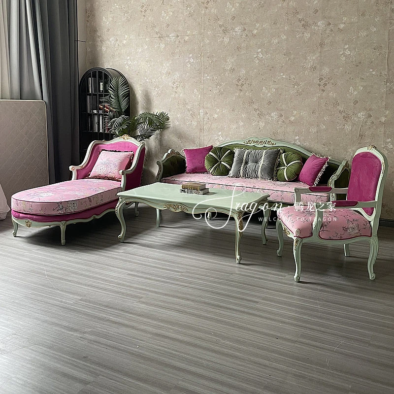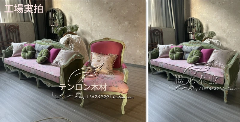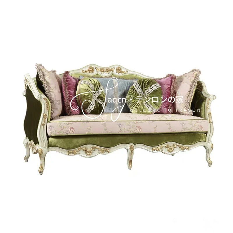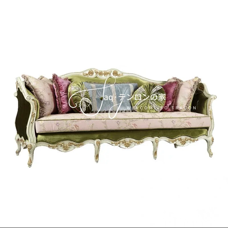 フレンチスタイルの無垢材三人掛けソファ | 北欧クラシックファブリック二人掛けソファセット | 高級ヴィラ向けの欧風ラグジュアリーデザイン | おしゃれで快適なリビング空間を演出!
