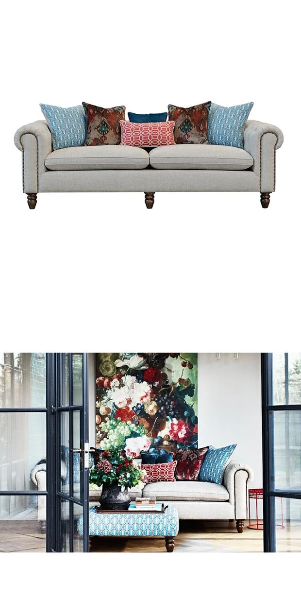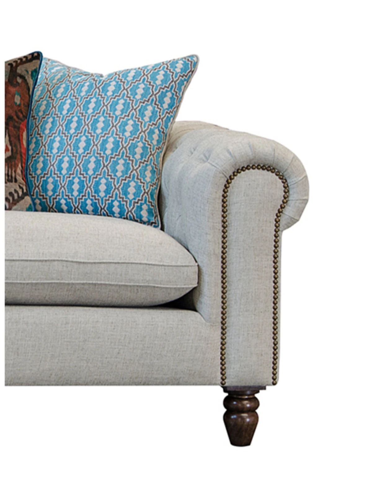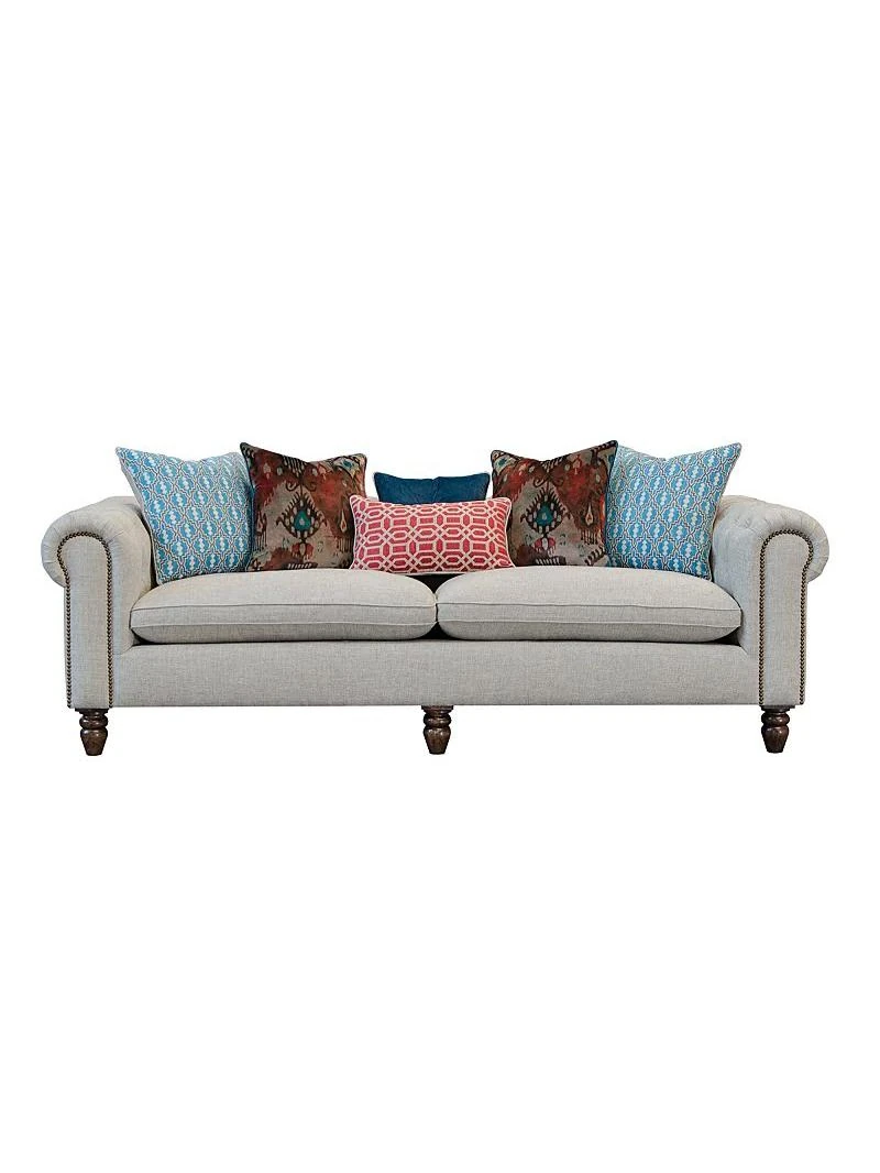 オリジナル輸入 正規品 本物のアメリカンカントリースタイル グレーコットンリネンミックス カラーピロー付き おしゃれな3人掛けソファ