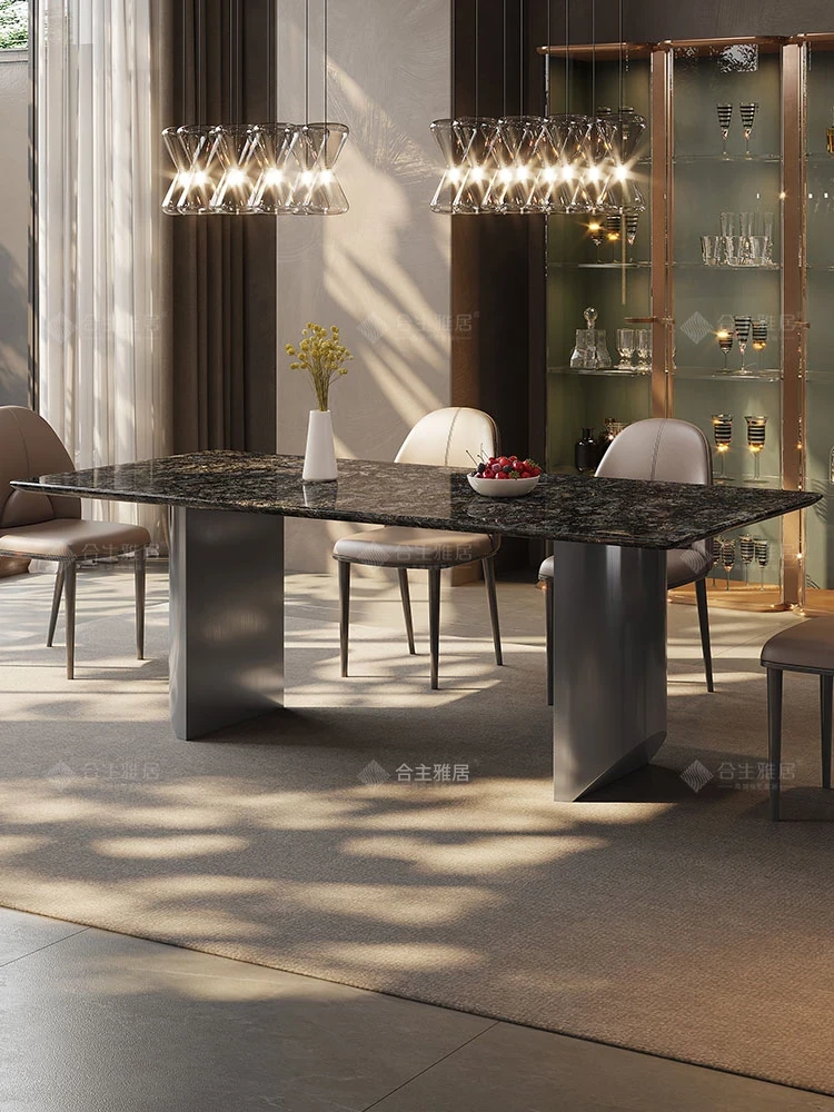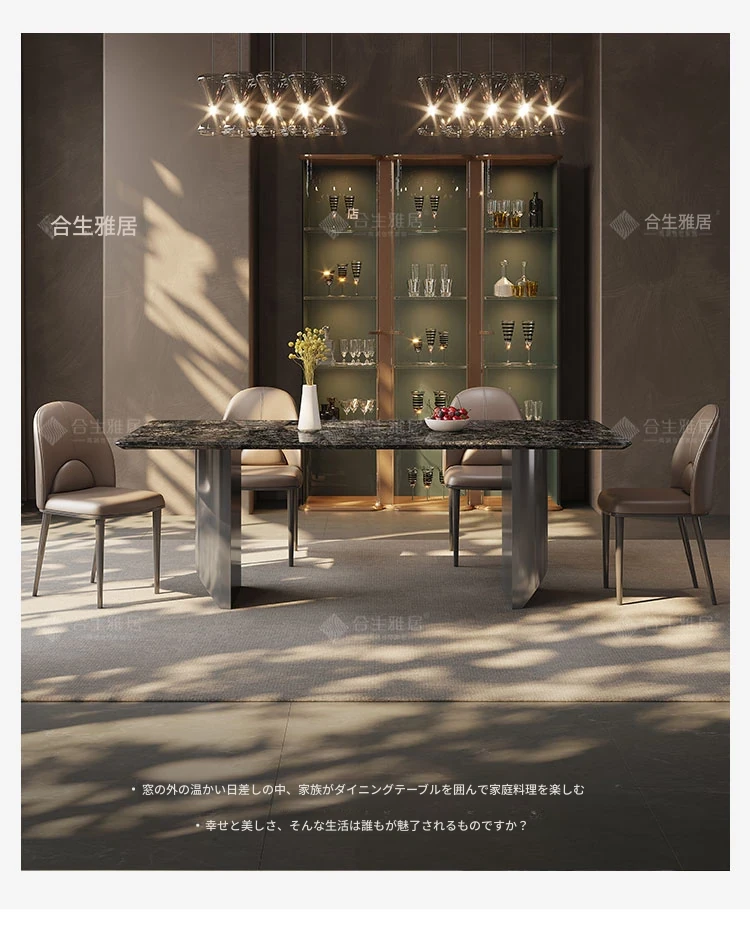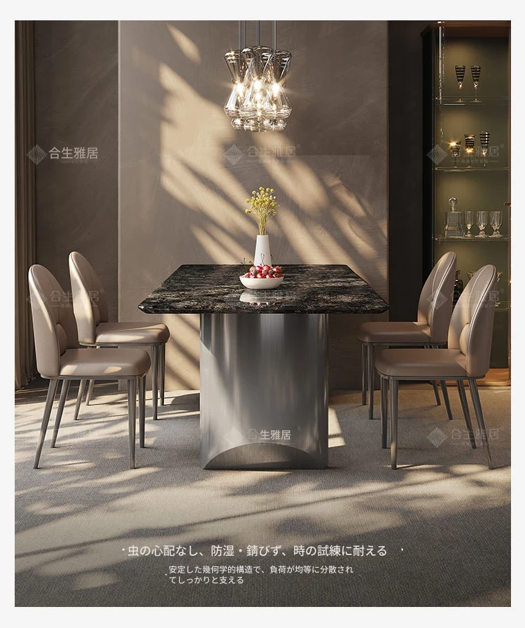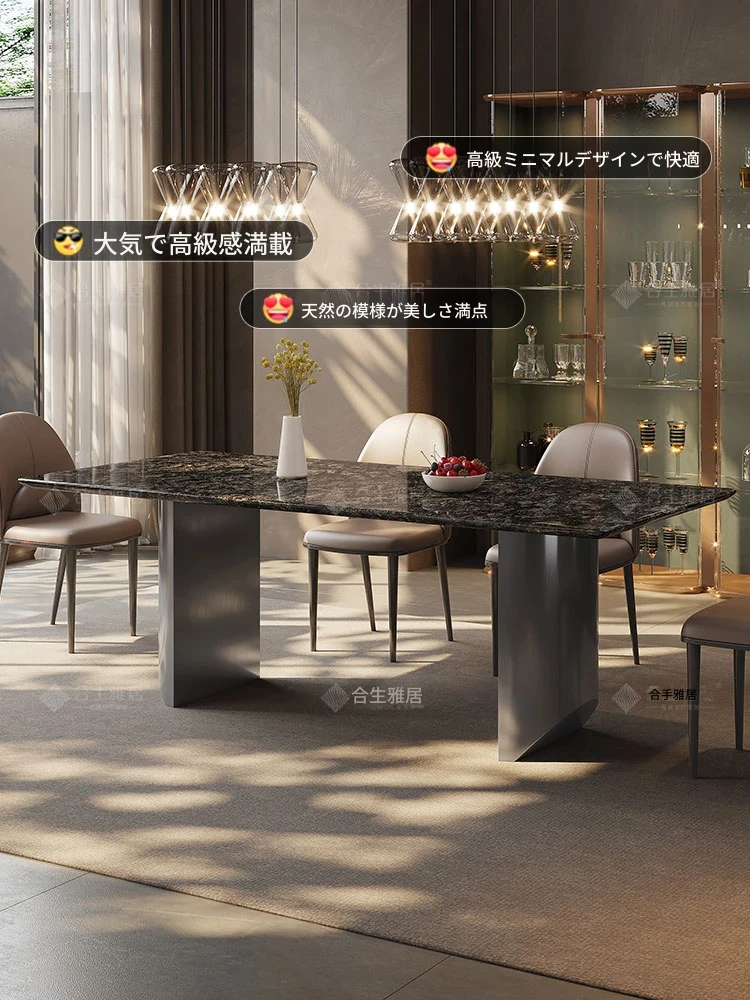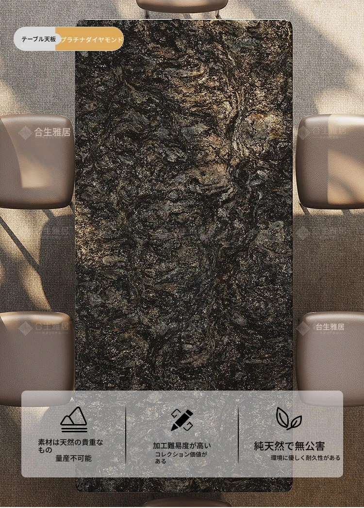 合生雅居輸入天然プラチナダイヤモンド大理石長方形ダイニングテーブルセット - 高級別荘に最適な洗練されたデザイン!家庭での特別なひとときを演出する、上質なダイニング体験をお楽しみください。