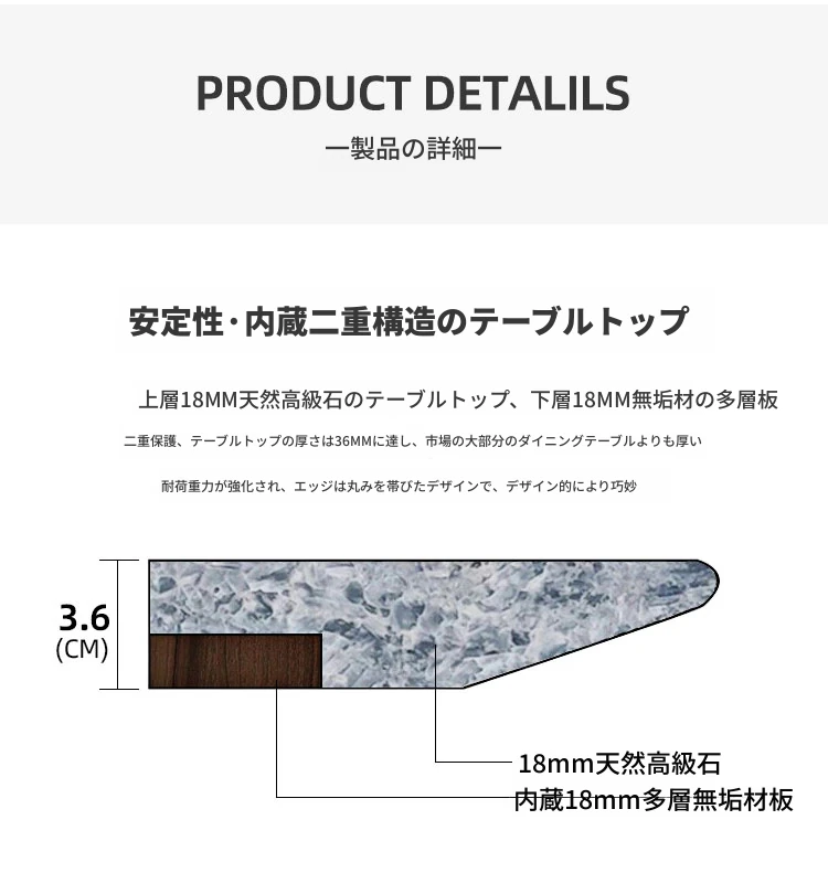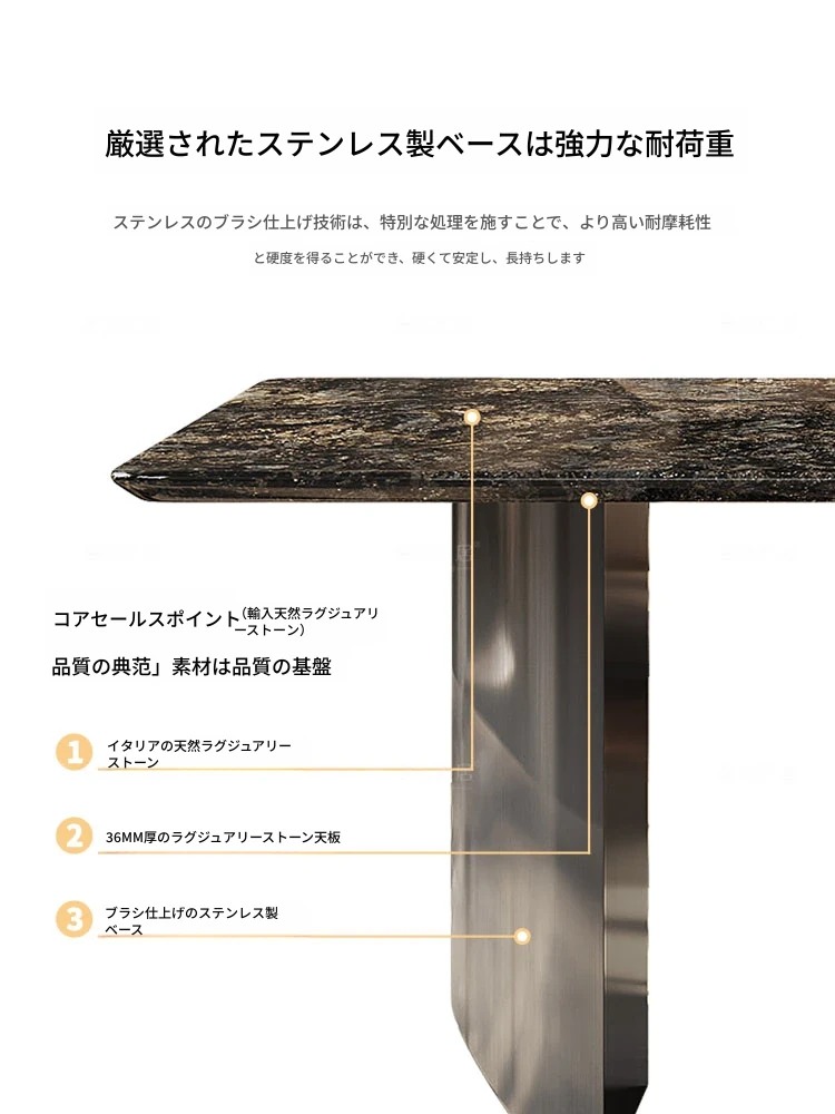 1.8メートルラグジュアリーストーンダイニングテーブル+A型椅子6脚