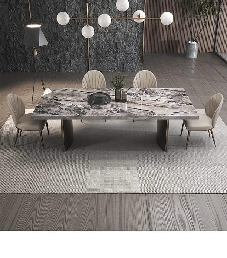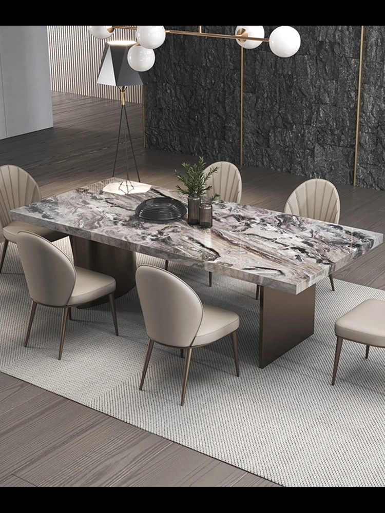 輸入インポート・ヴェネツィアブラウンラグジュアリーストーンダイニングテーブル モダンシンプルな長方形 家庭用イタリアンライトラグジュアリー天然大理石ダイニングテーブルで、食卓に優雅さとスタイルをプラス!