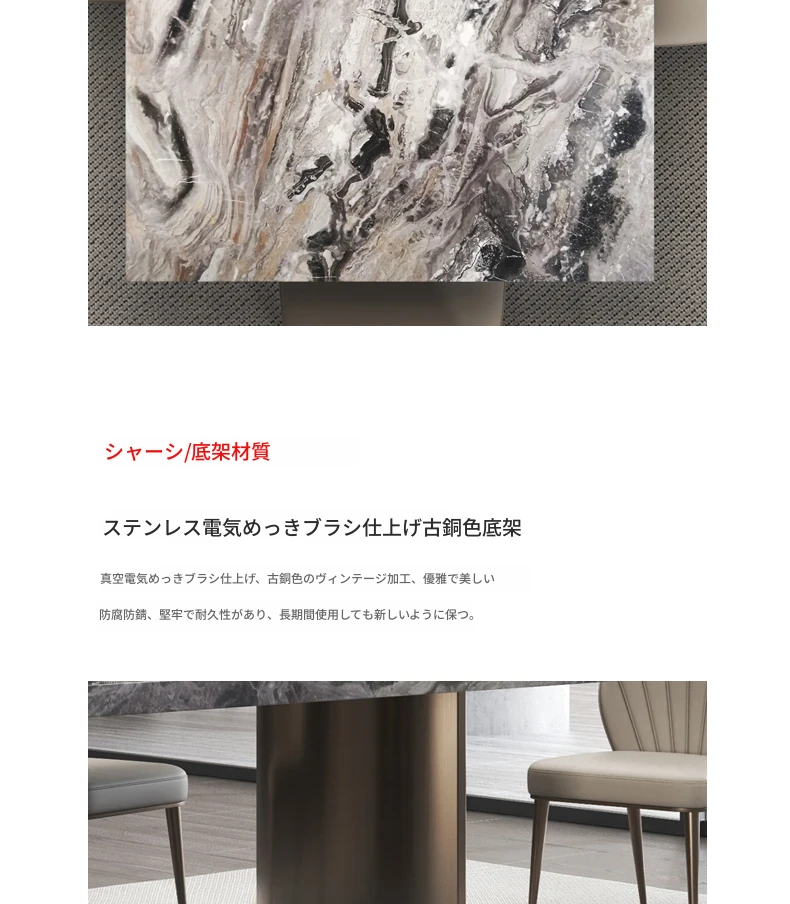 ヴェネツィアブラウンラグジュアリーストーン長テーブル2.2*1m