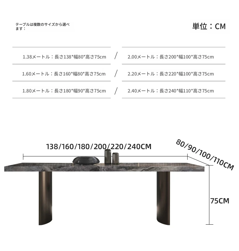 ヴェネツィアブラウンラグジュアリーストーン長テーブル2.4*1.1m