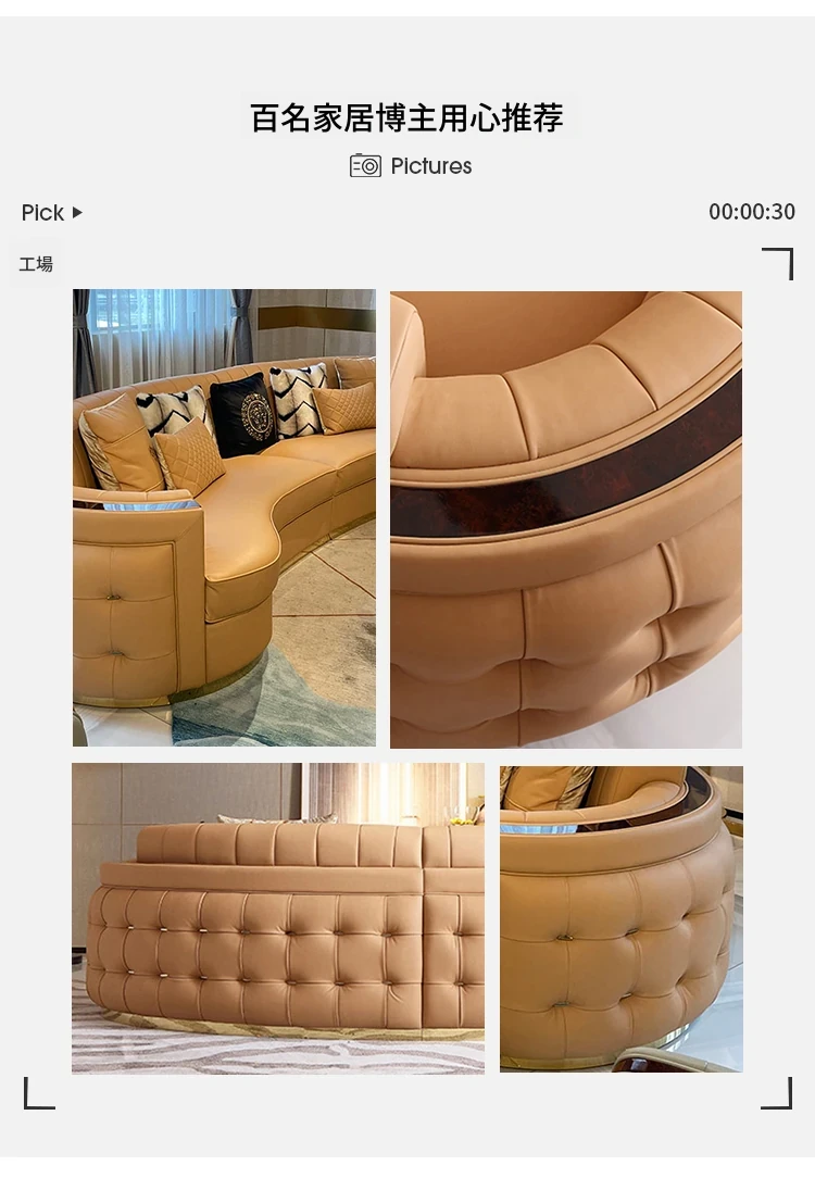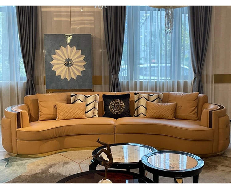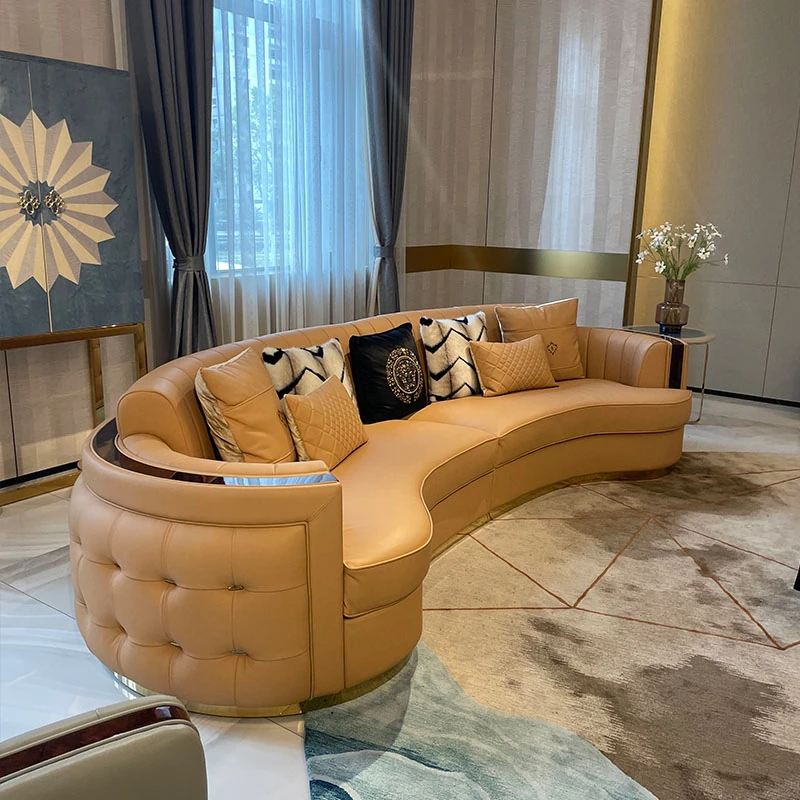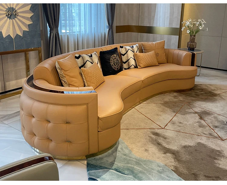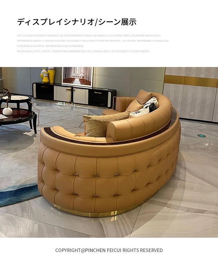 イタリアンラグジュアリー 本革ソファ モダンシンプルなアーチデザイン 大型リビング用 ヴィラ向け 高級感溢れる快適な座り心地を提供する最高級レザーソファ