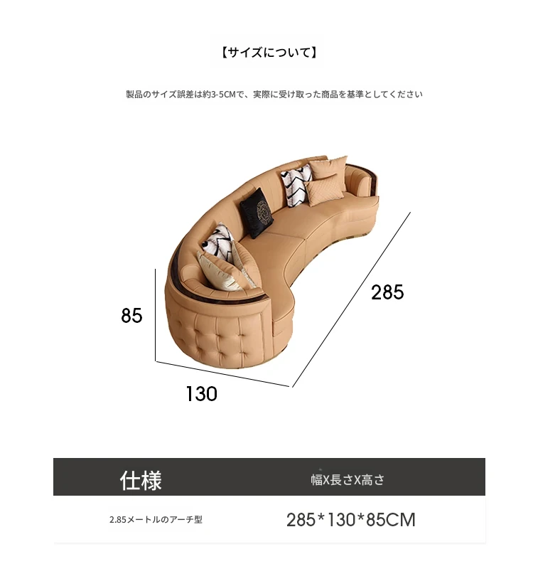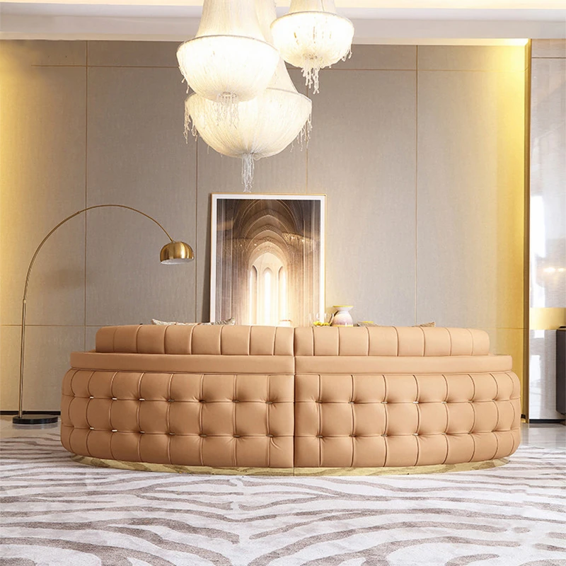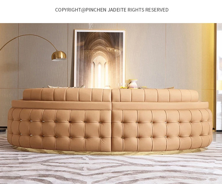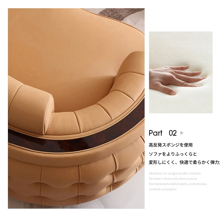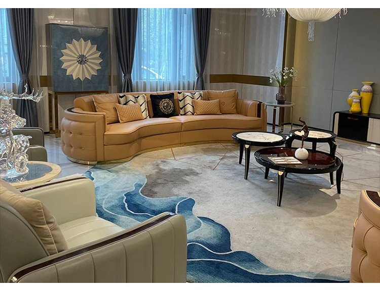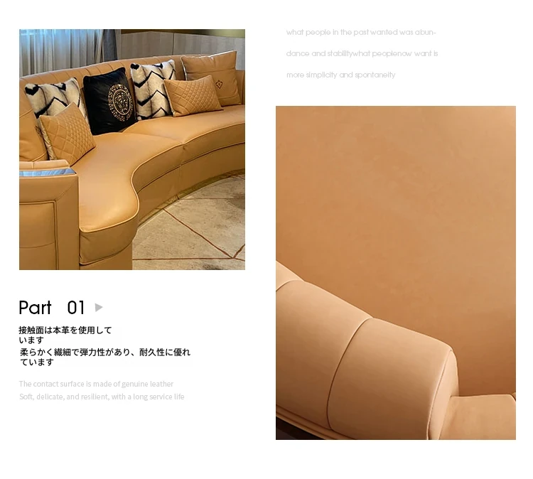イタリアンラグジュアリー 本革ソファ モダンシンプルなアーチデザイン 大型リビング用 ヴィラ向け 高級感溢れる快適な座り心地を提供する最高級レザーソファ