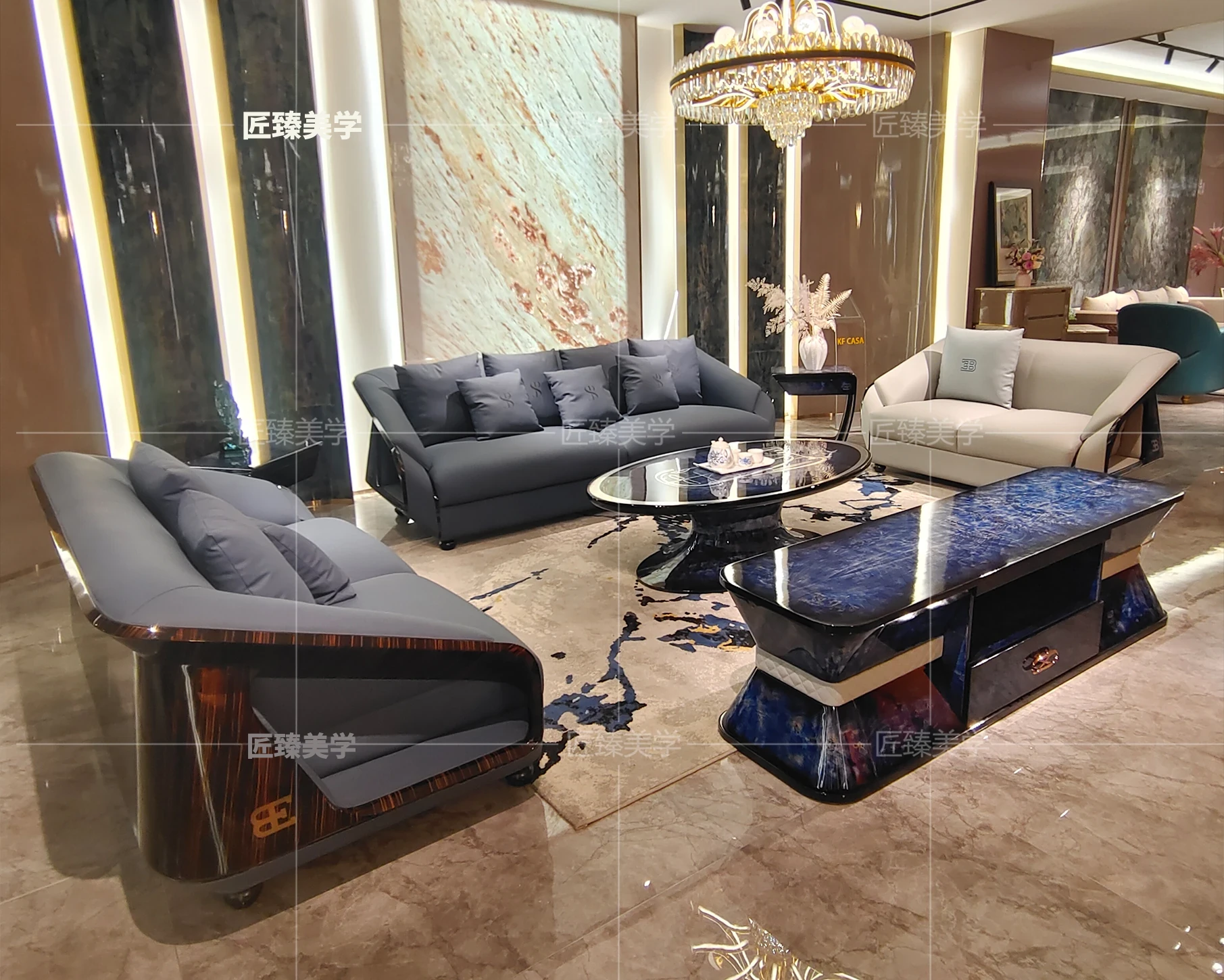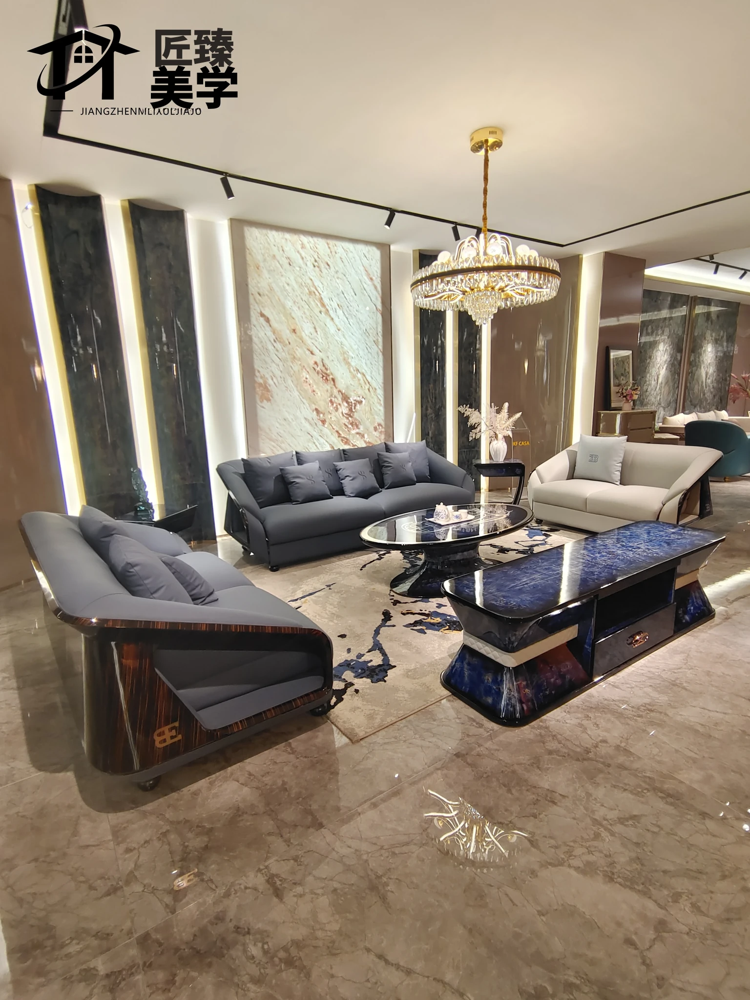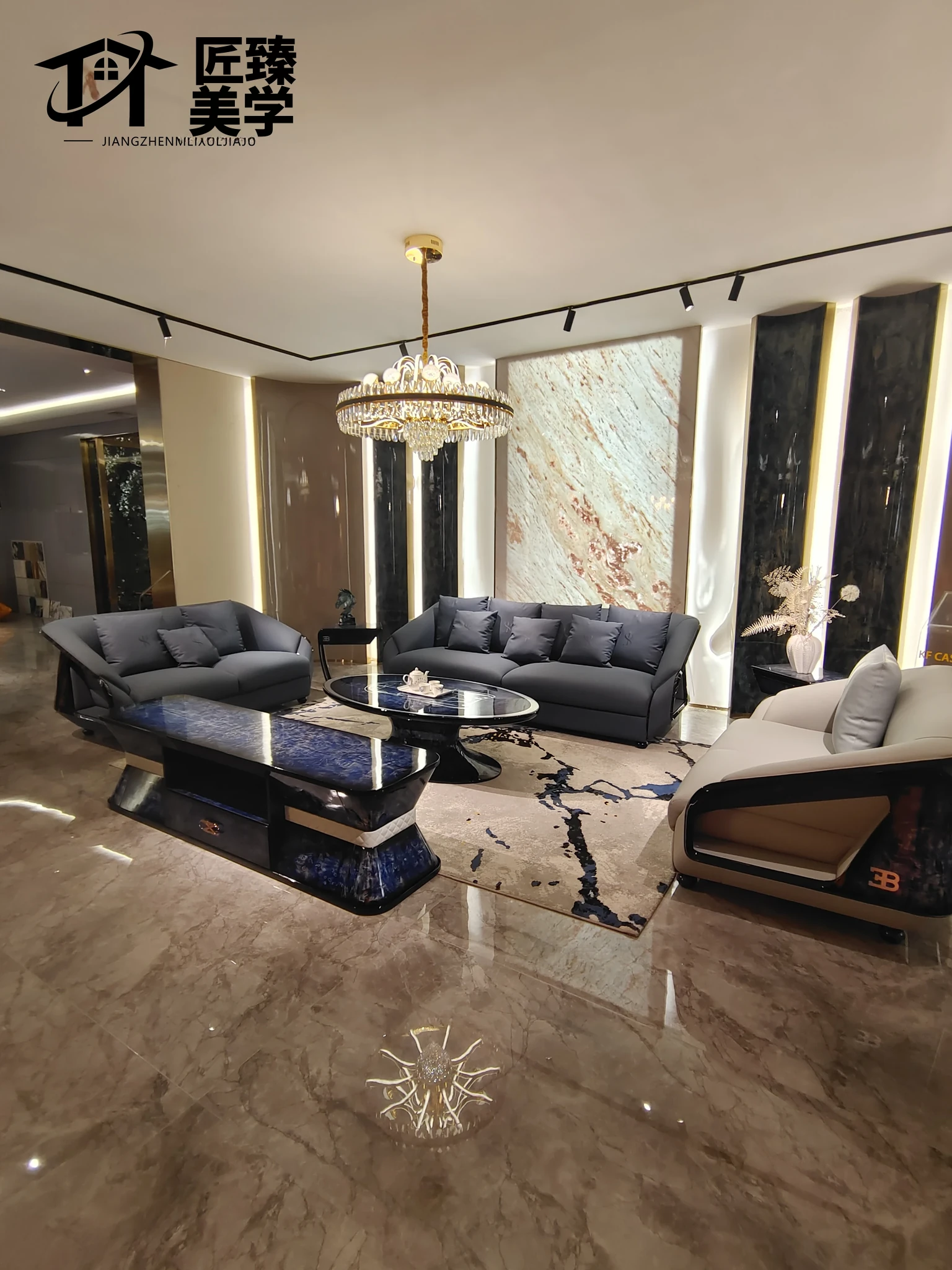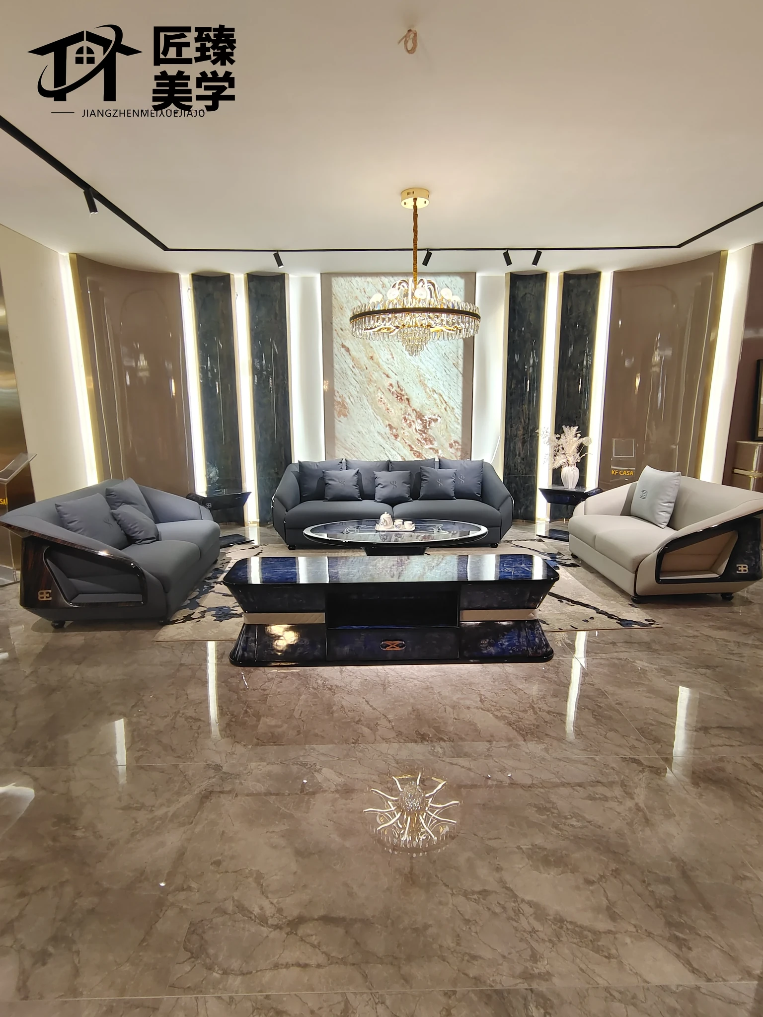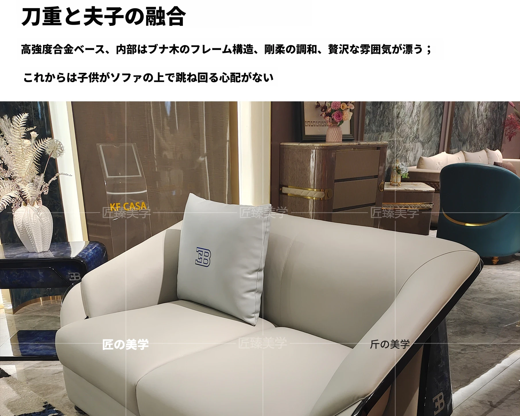 イタリアンラグジュアリー ブガッティ 本革ソファセット ヴィラ向け 大型リビングに最適な豪華現代デザイン 新作 シンプルでスタイリッシュなインテリアを実現!