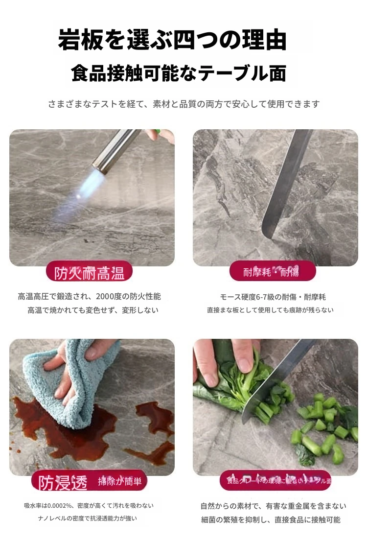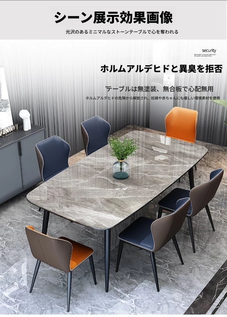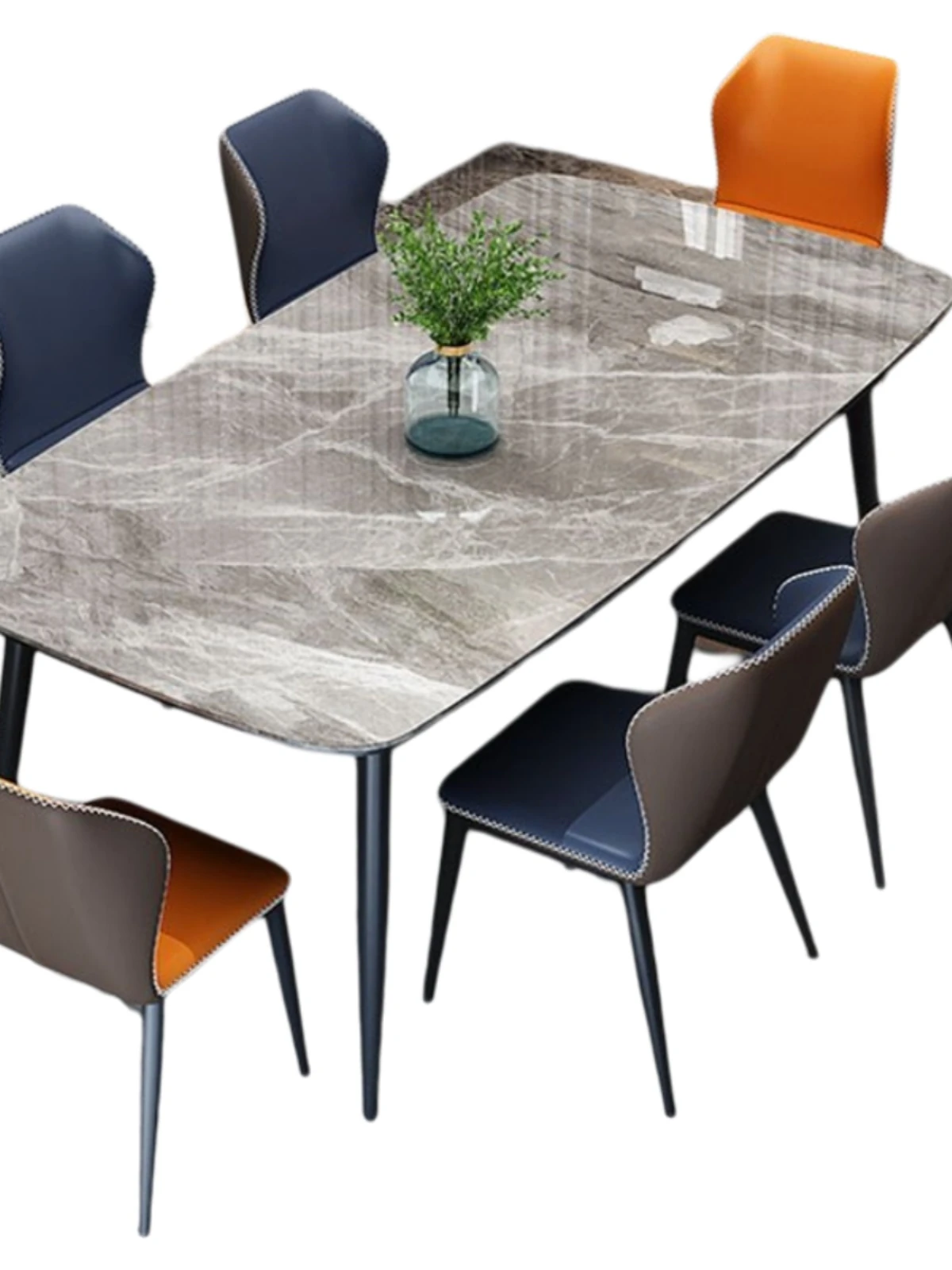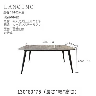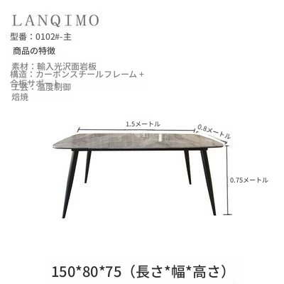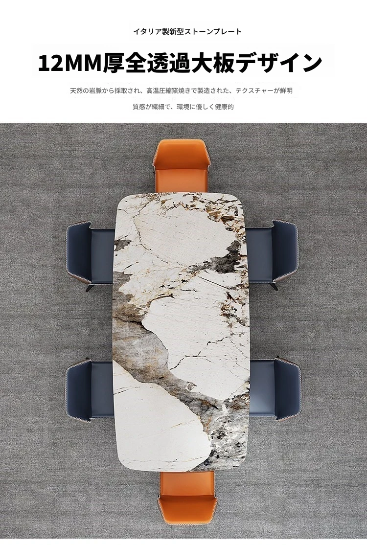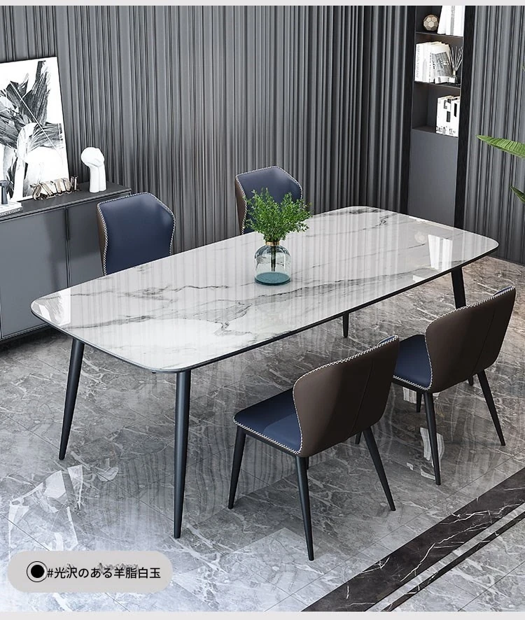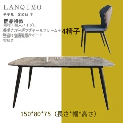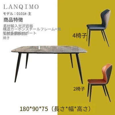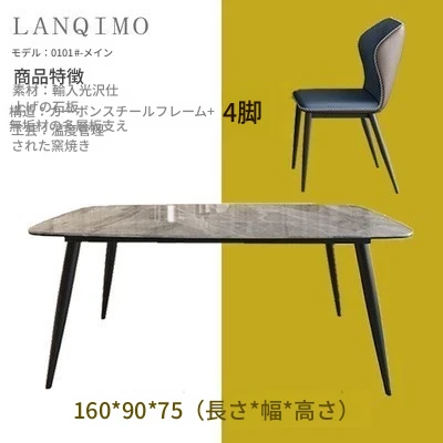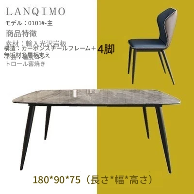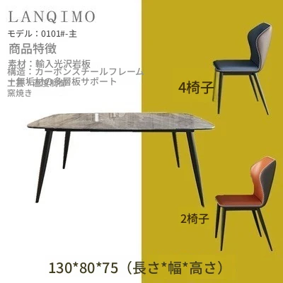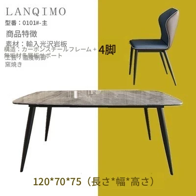 イタリアンライトラグジュアリー光沢仕上げの岩板ダイニングテーブル&チェアセット - モダンでシンプルな長方形デザイン、小規模な家庭にも最適な大理石製の食卓!おしゃれな空間を演出します。