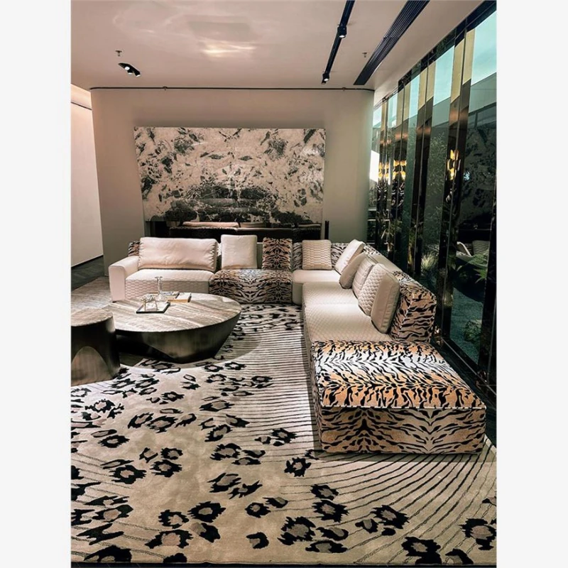 イタリアンラグジュアリーの高級感あふれる本革コンビネーションソファ - ヴィラデザインに最適なラグジュアリーな豹柄ソファ。上質な素材で贅沢な空間を演出し、あなたの住まいに洗練されたスタイルをプラスします!