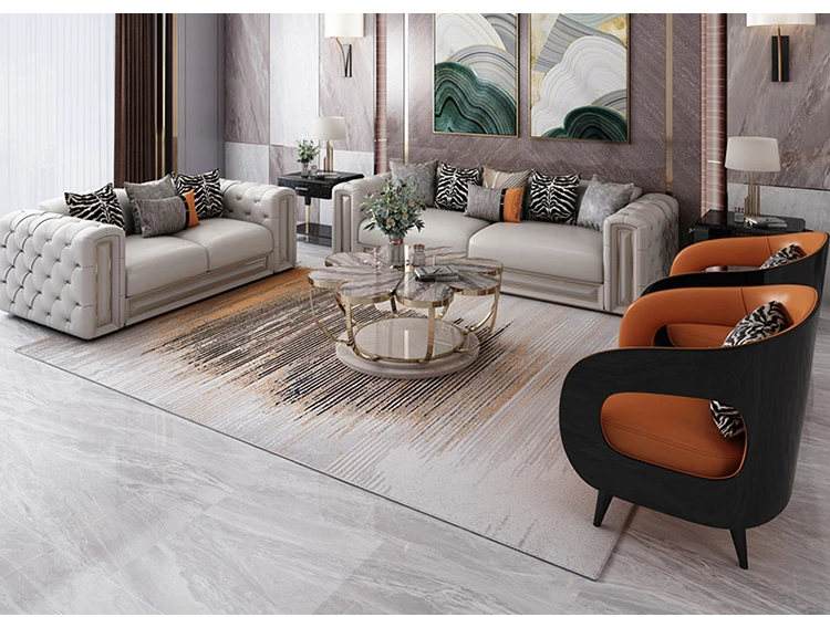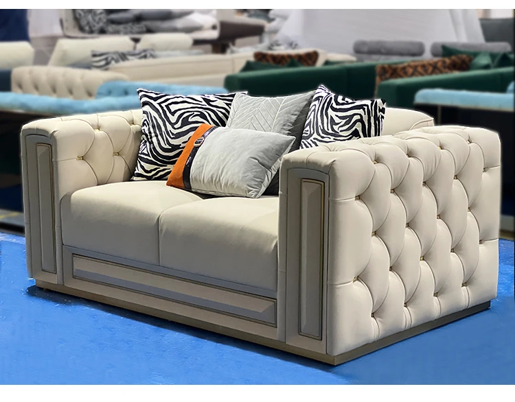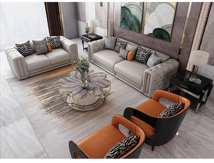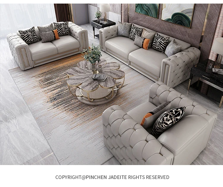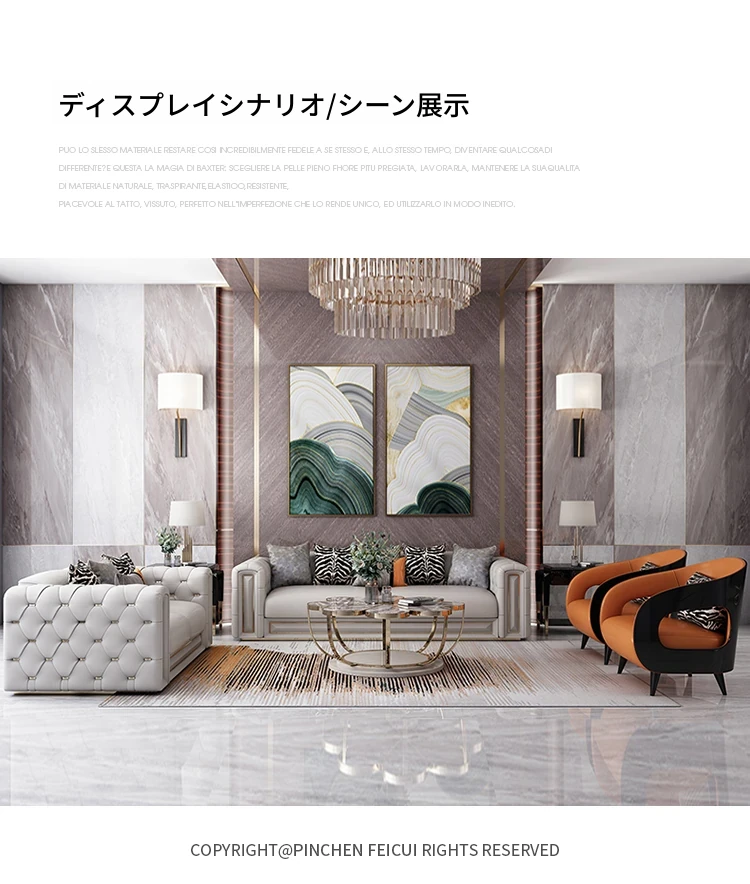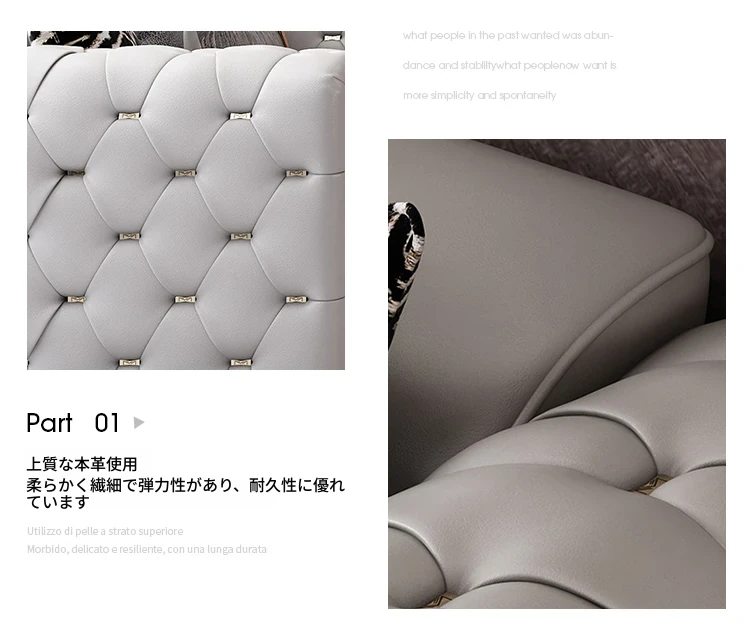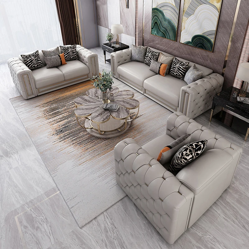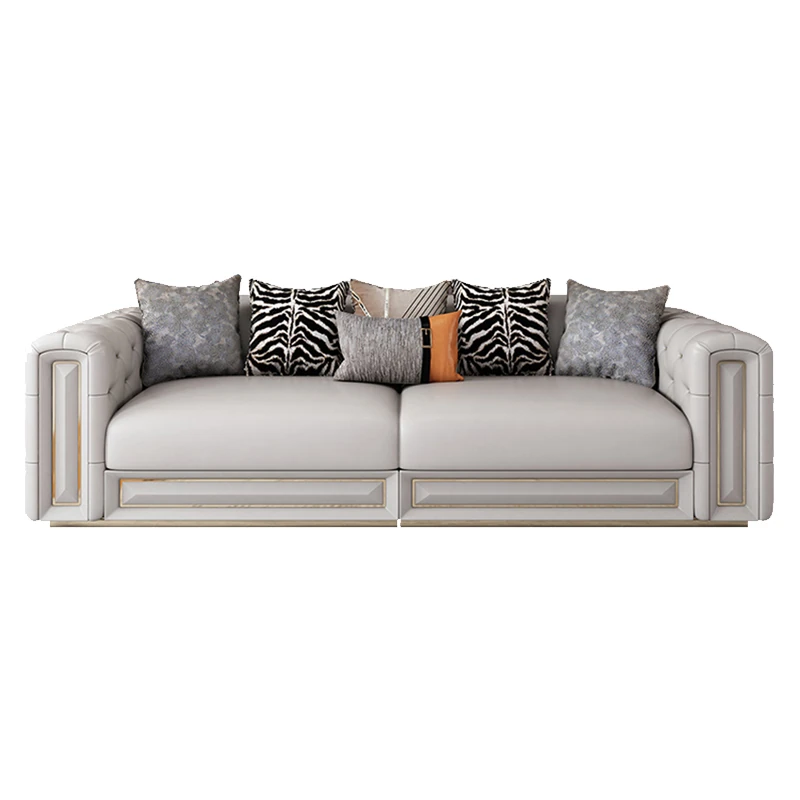 イタリアンラグジュアリーリビングルーム用ヴィラ風大平面真皮ソファセット - モダンでシンプルなポストモダンサン三人掛けソファ。スタイリッシュなデザインで、快適なひとときを提供します。あなたのリビングに洗練された雰囲気をプラス!
