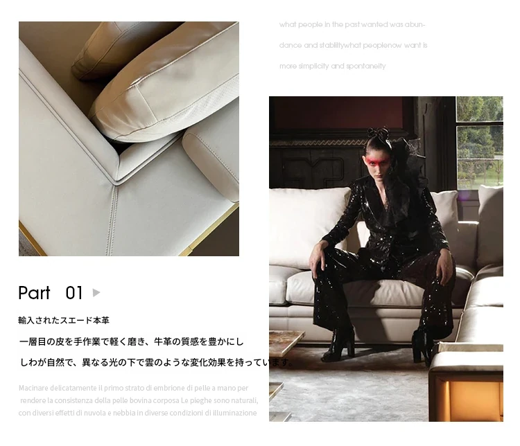 イタリア製ラグジュアリーなスエードレザーソファ|モダンな大平層にぴったりのバビロンコーナーソファ|豪華なリビング空間を演出する一品!