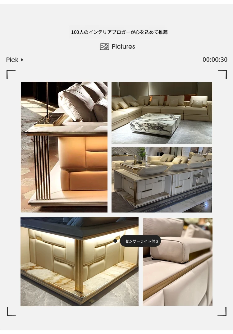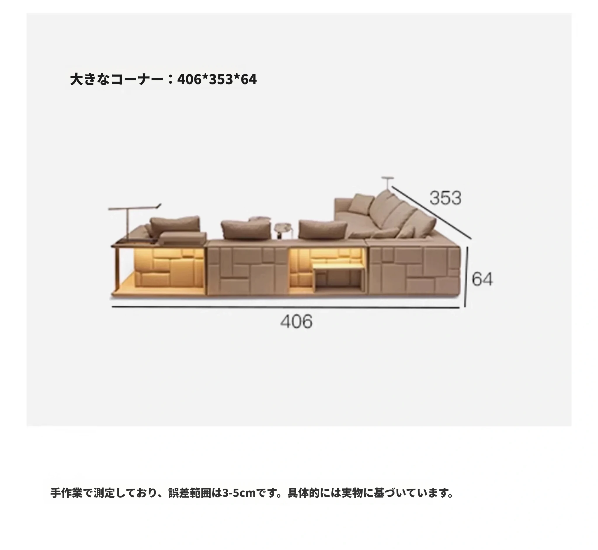 3.53*4.06メートルコーナーソファ【輸入スエード革+センサーライト+パンドララグジュアリーストーン】