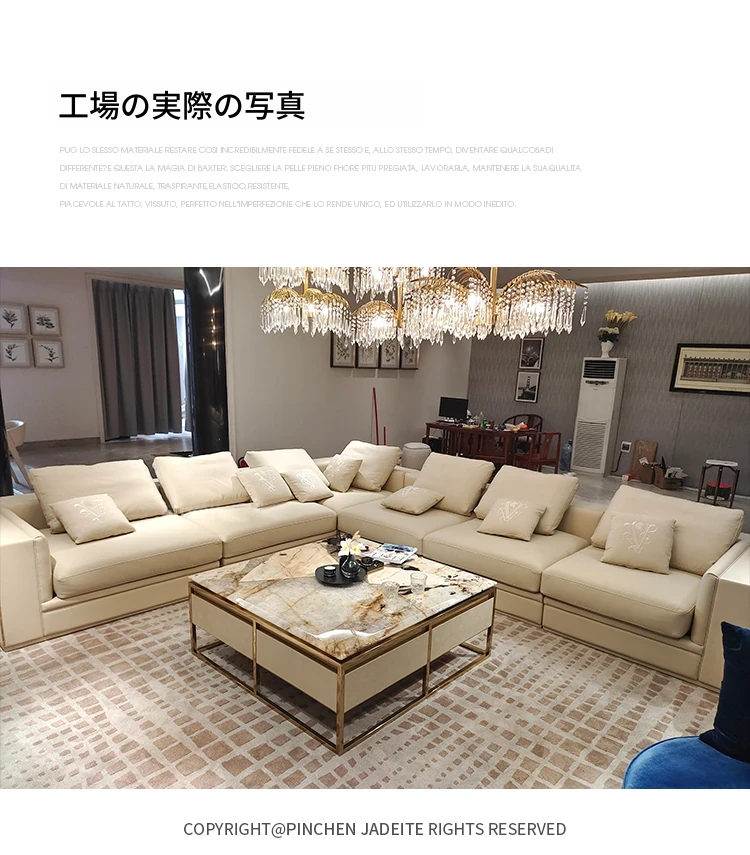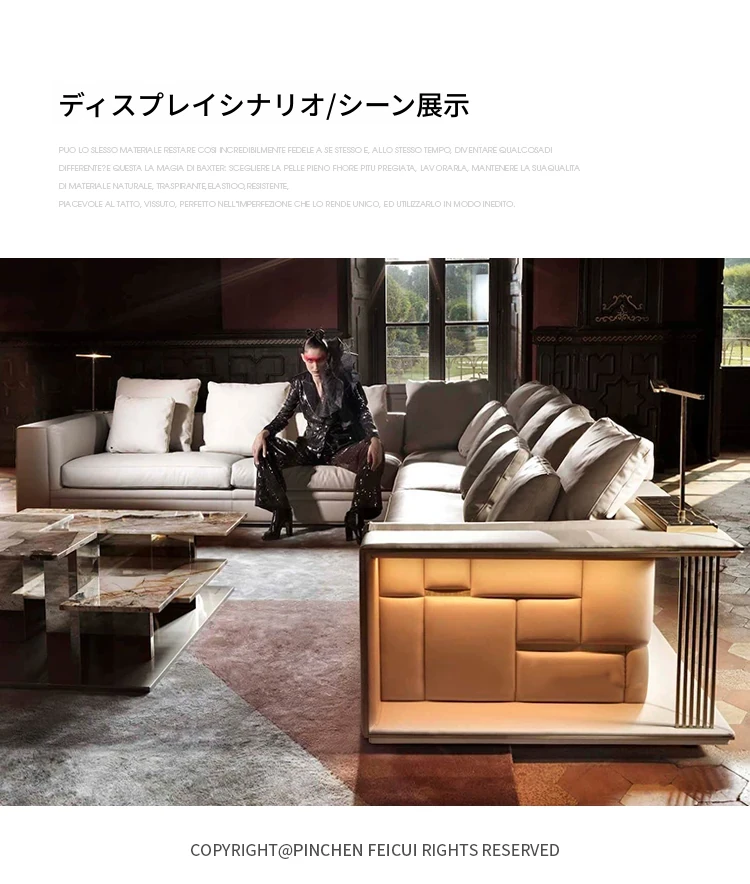 3.53*4.06メートルコーナーソファ【輸入接触面本革+センサーライト+パンドララグジュアリーストーン】