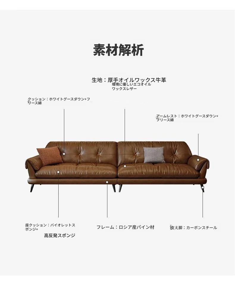 三人用2.1メートル【輸入トップレイヤーオイルワックス牛革】偽物は十倍返し