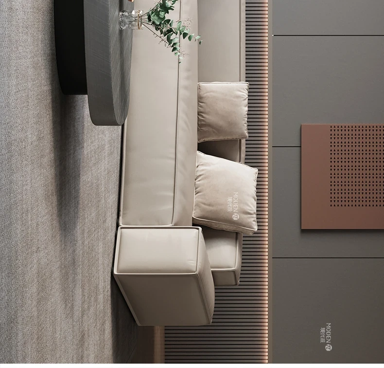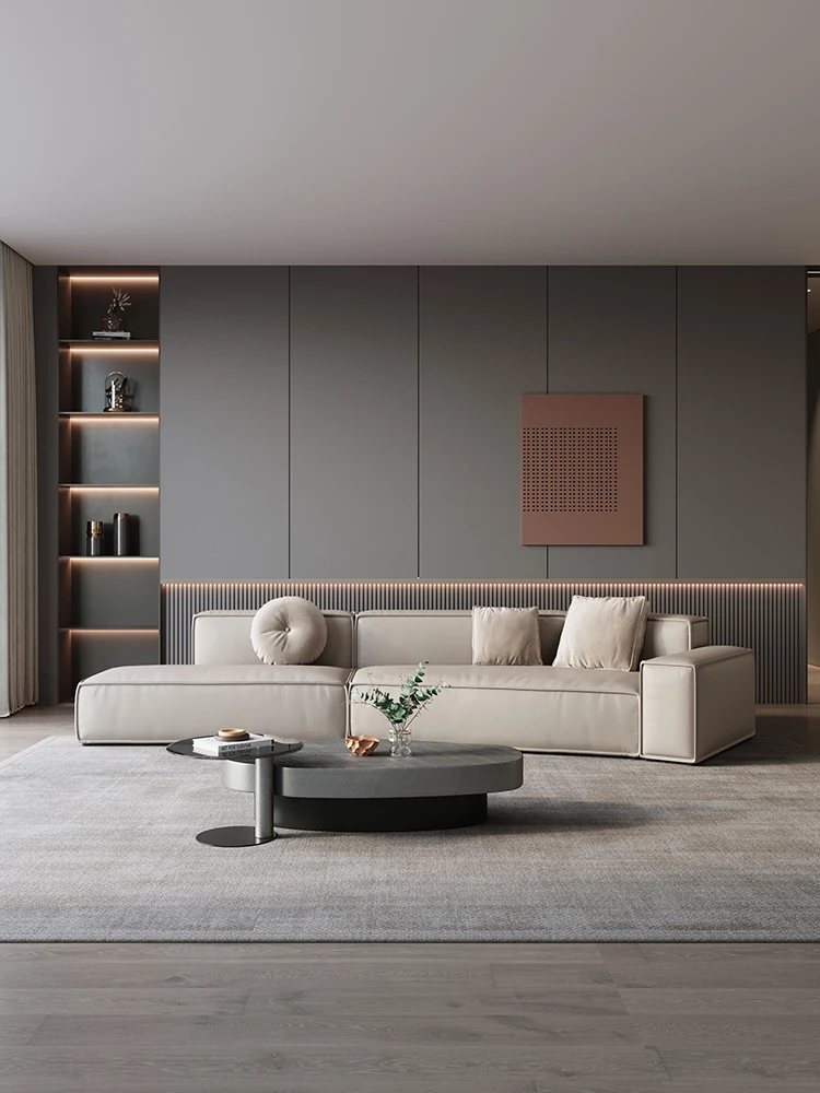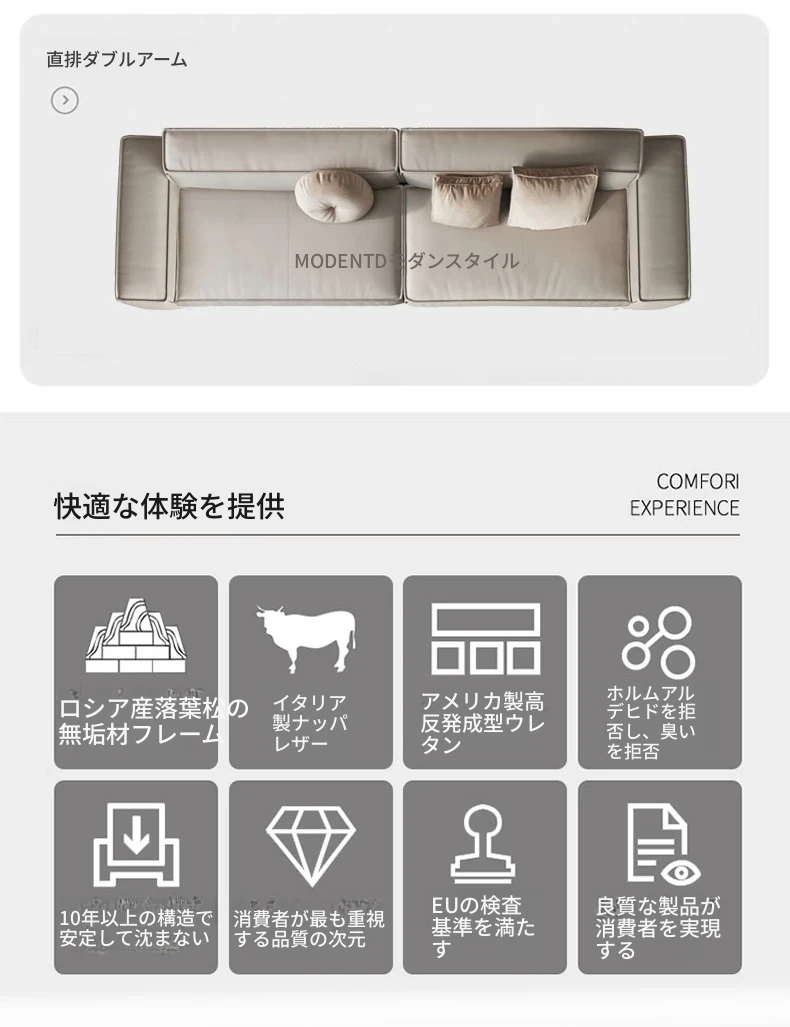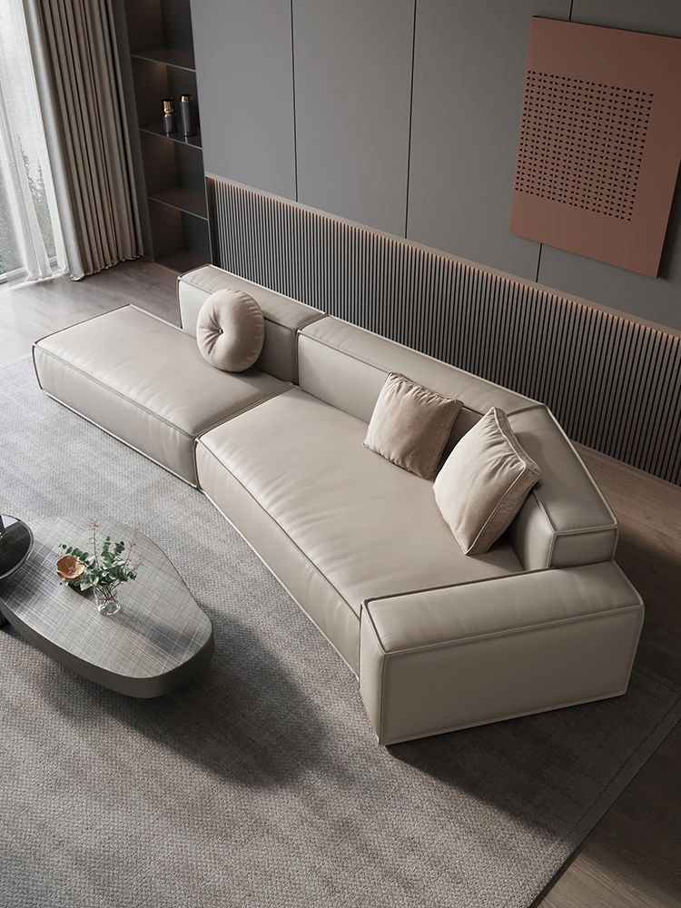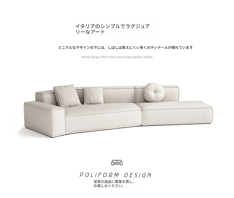 イタリアンミニマリズム本革ソファ - モダンなリビングにぴったりのシンプルデザイン!デザイナーによるユニークなL字型&斜角トーフブロックで、スタイリッシュな会話スペースを演出します。