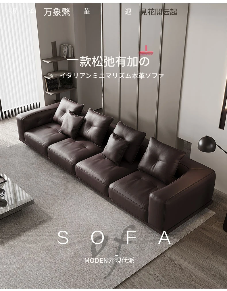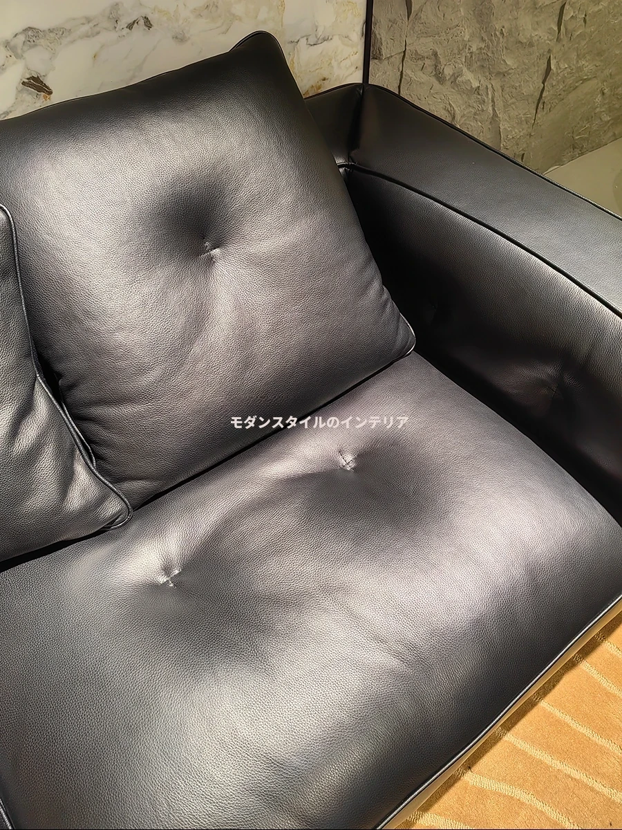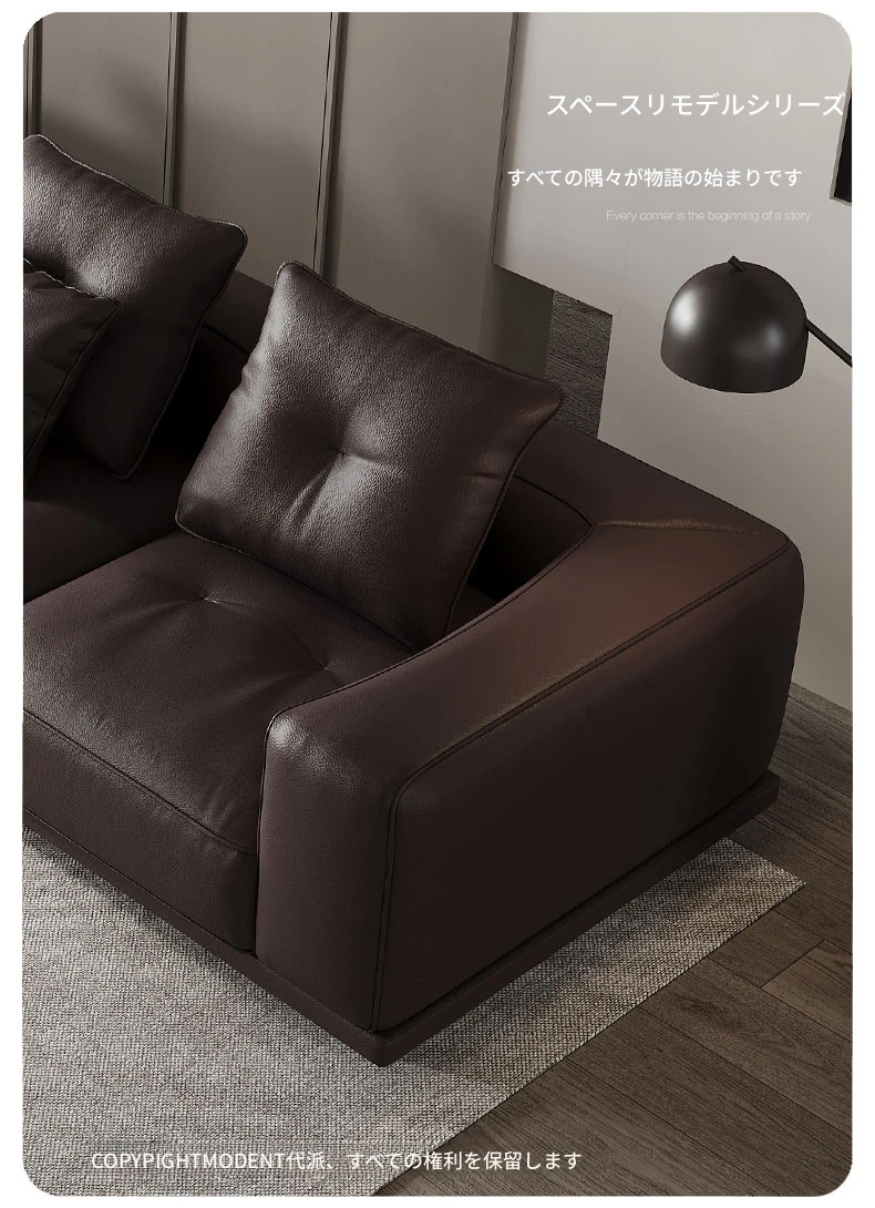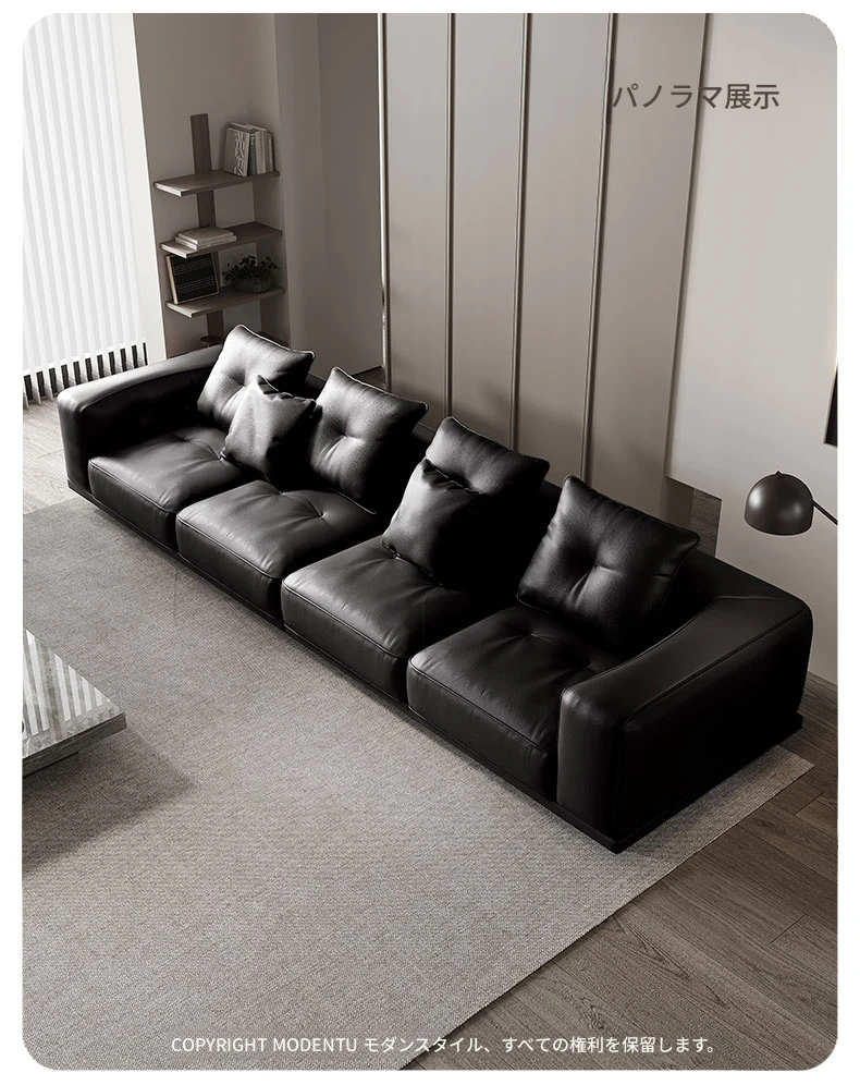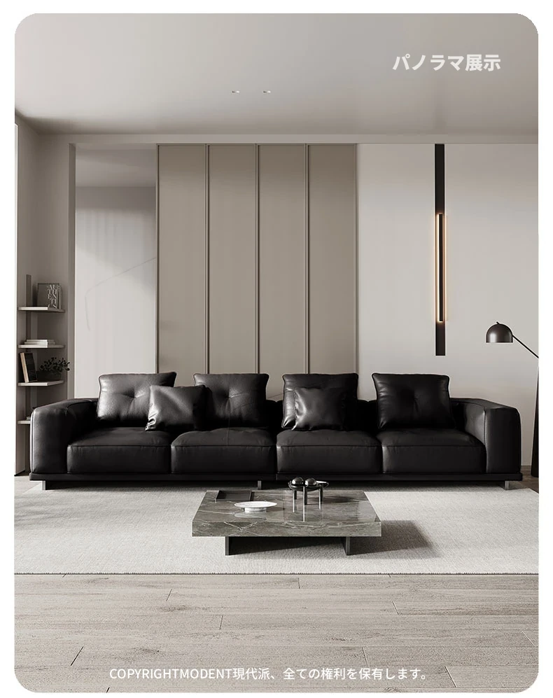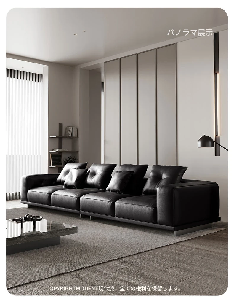 イタリアンミニマリズムの本革ソファ|高級ブラック・トップグレイン牛革|独特なコーナーデザイン|ディランデザイナーによる洗練されたリビング空間に最適!