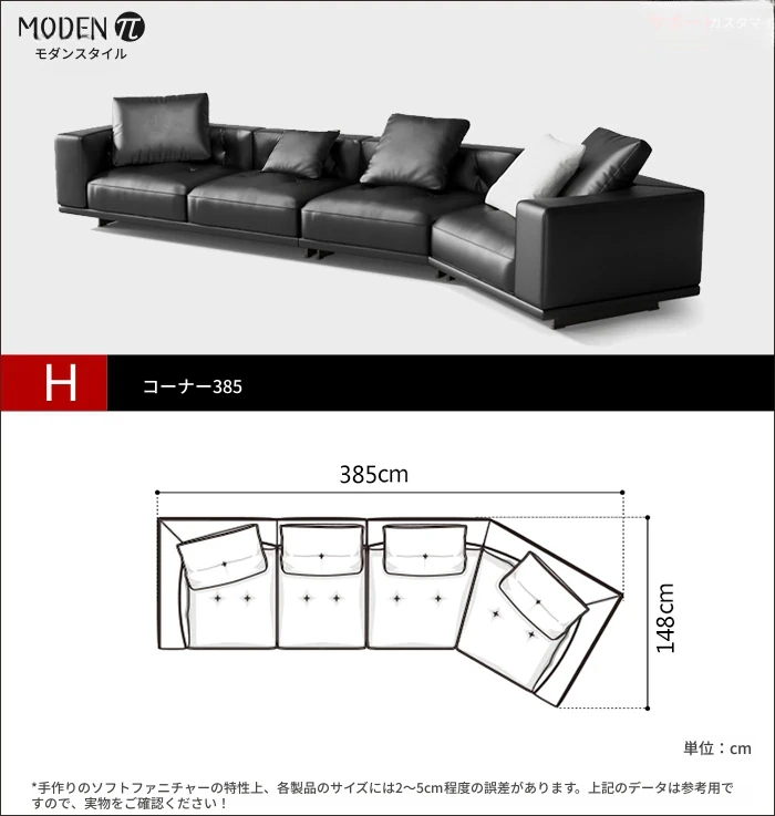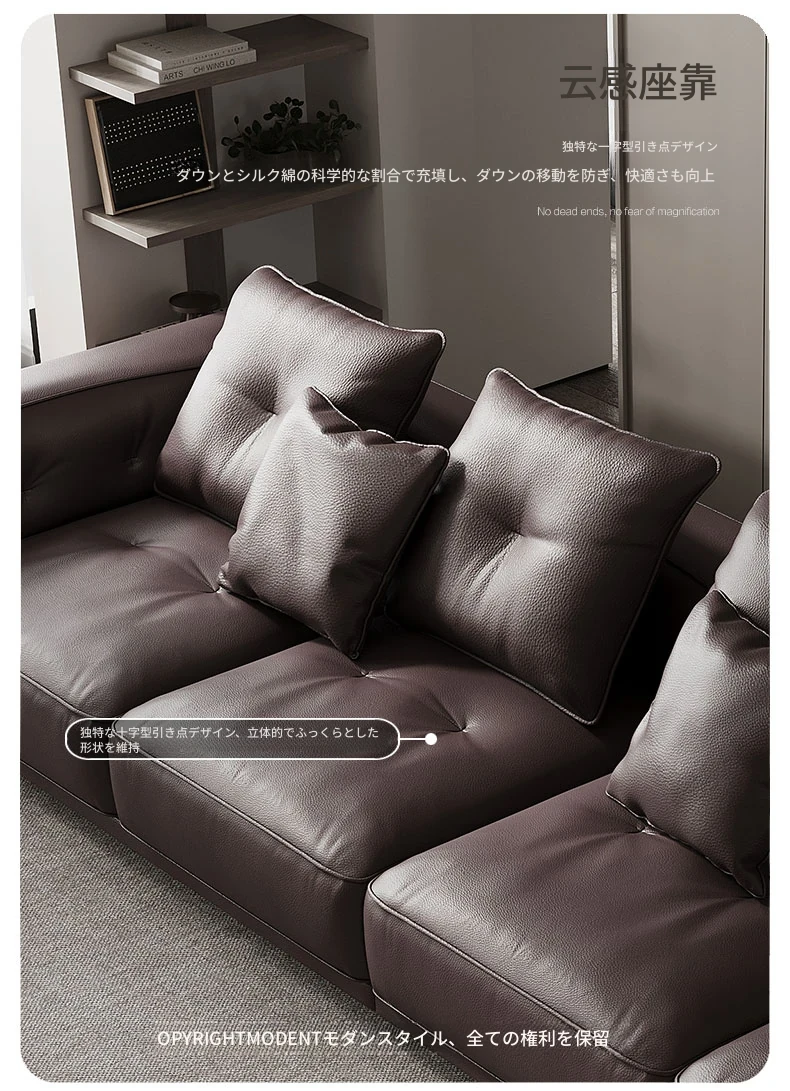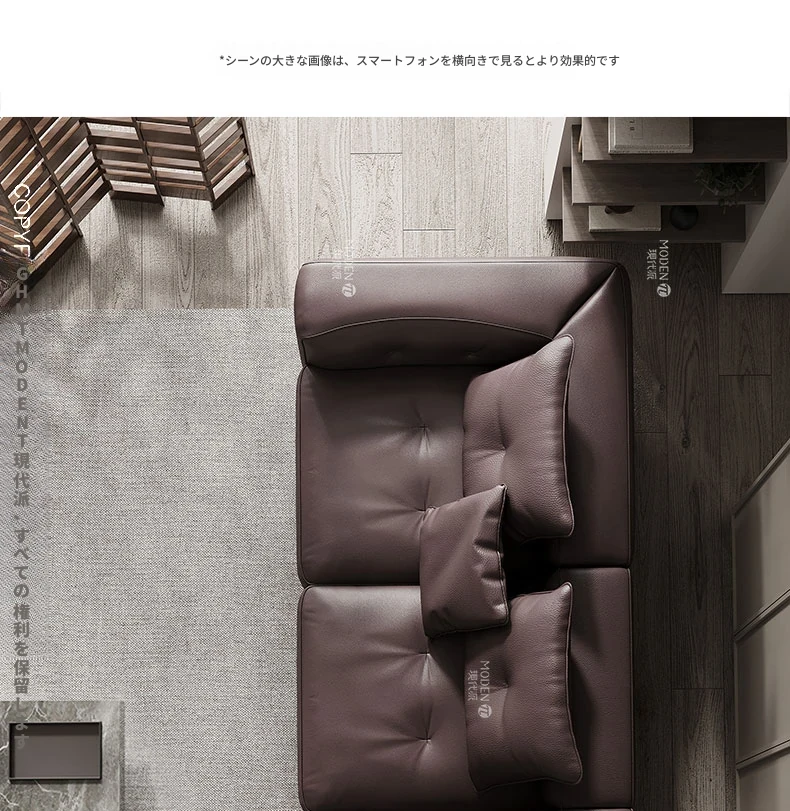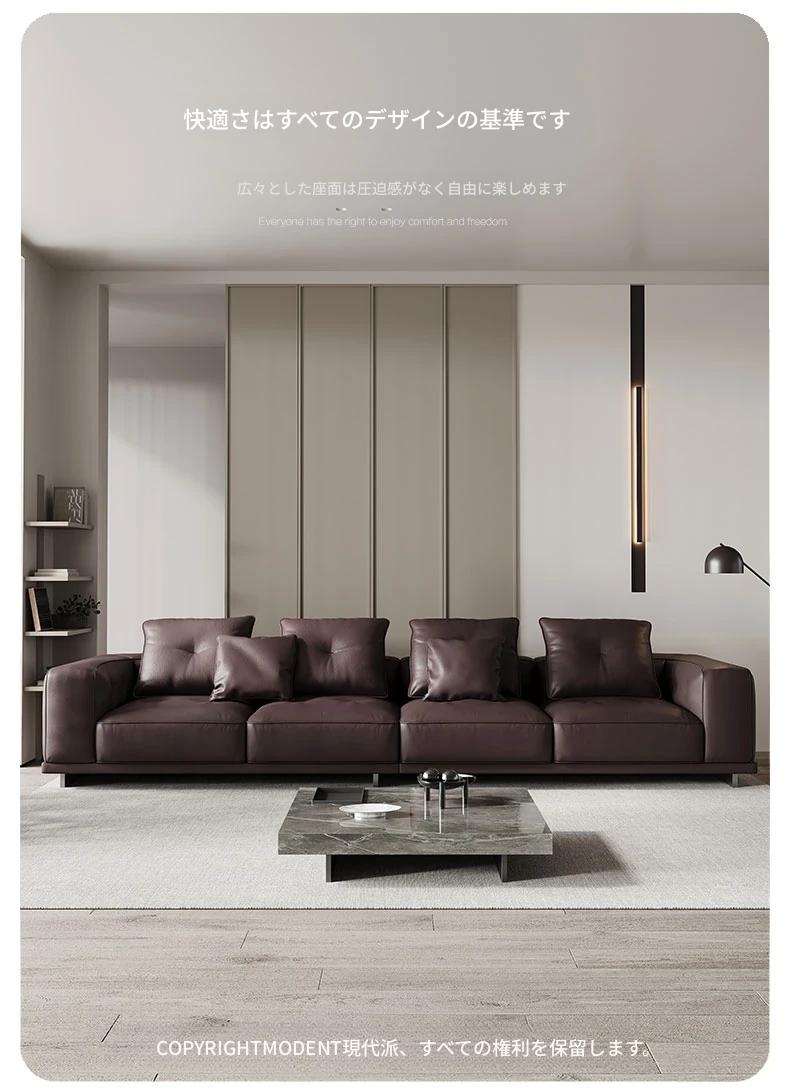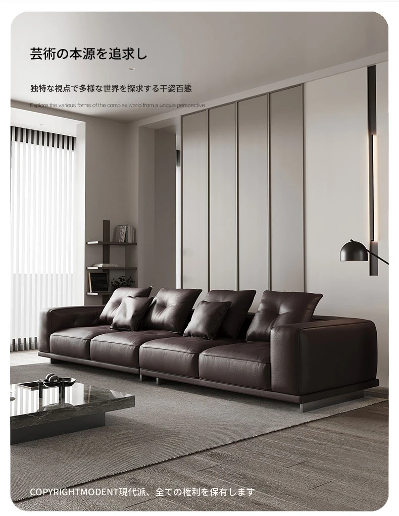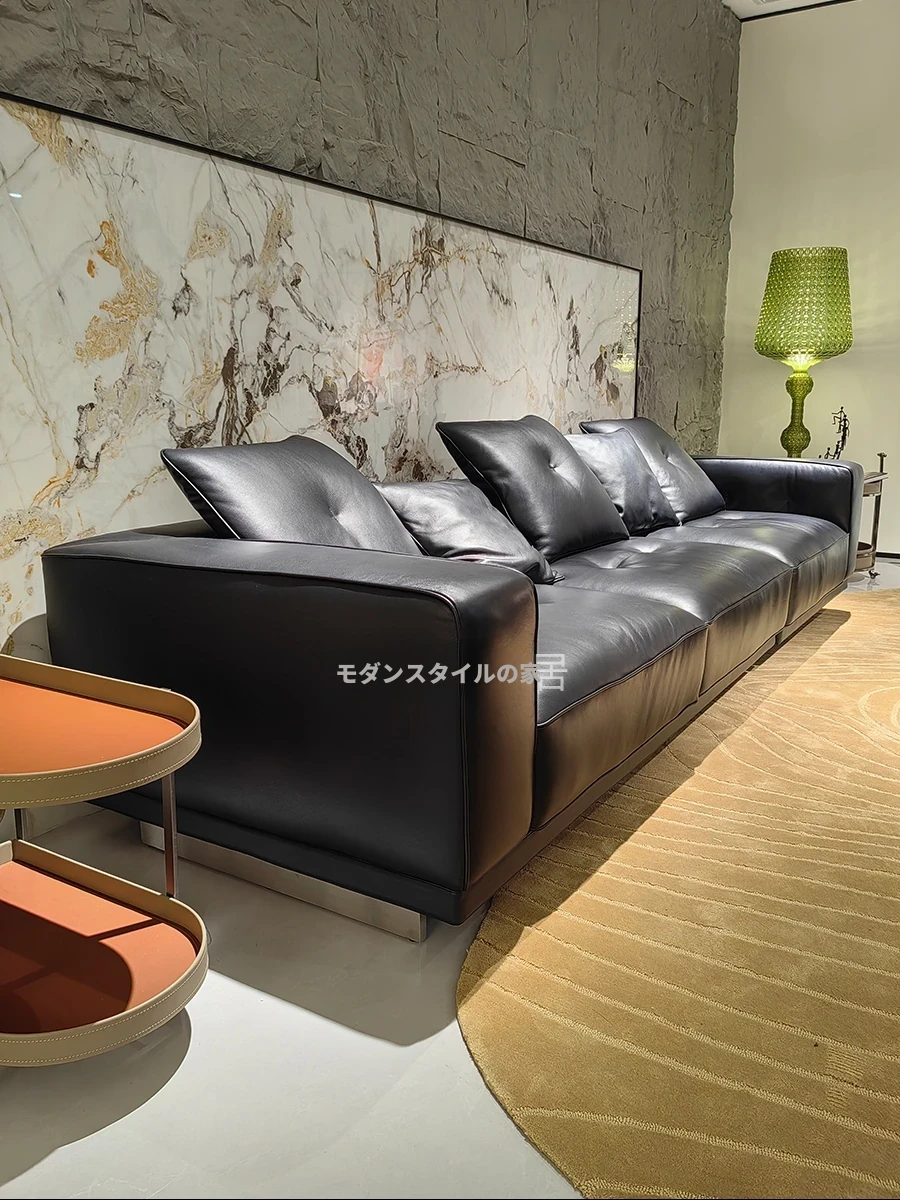 イタリアンミニマリズムの本革ソファ|高級ブラック・トップグレイン牛革|独特なコーナーデザイン|ディランデザイナーによる洗練されたリビング空間に最適!