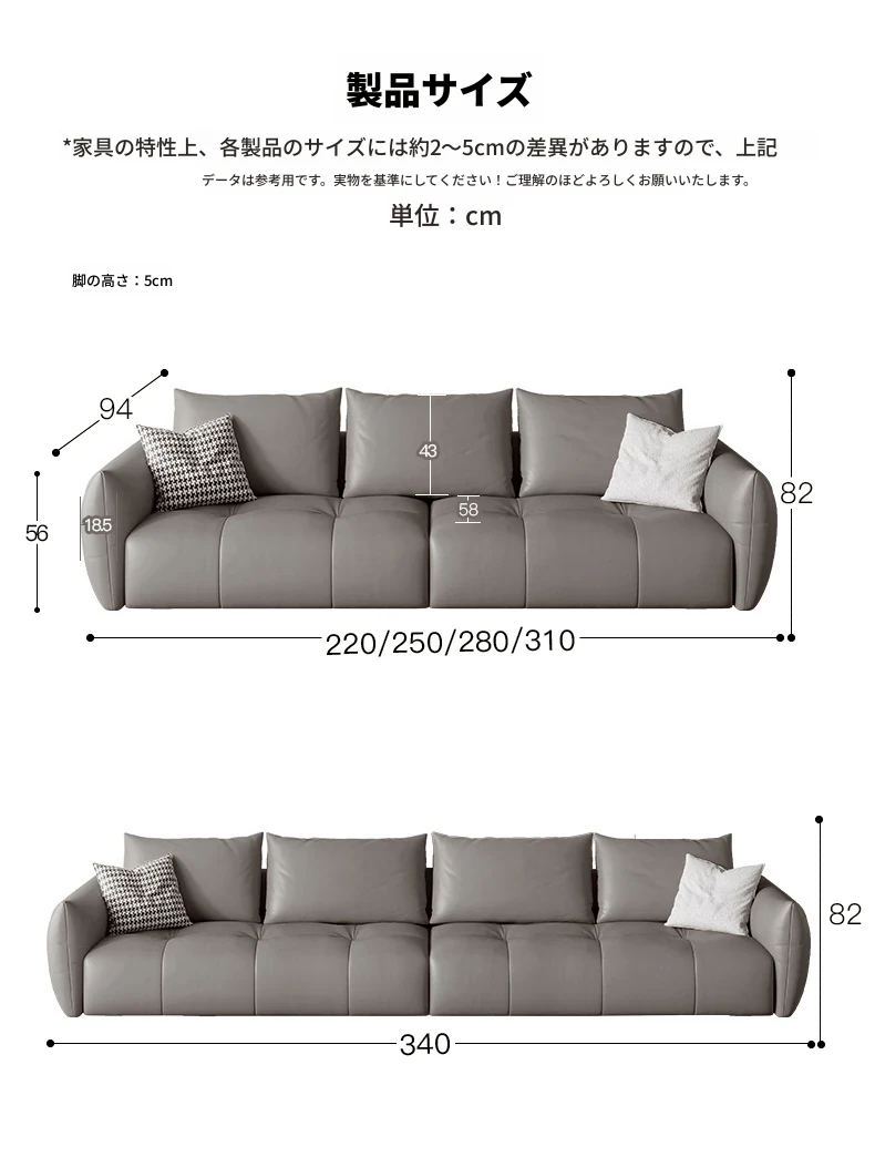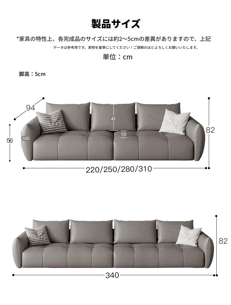 五人掛け340【耐磨性のあるスキン感覚の猫抓皮】