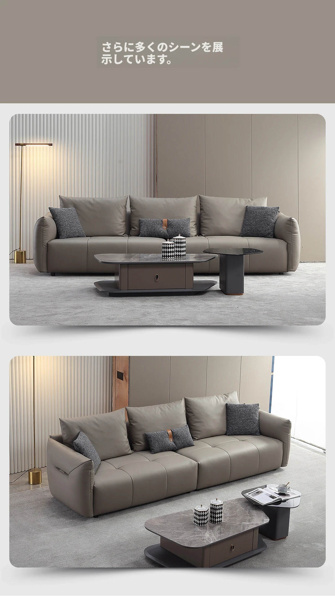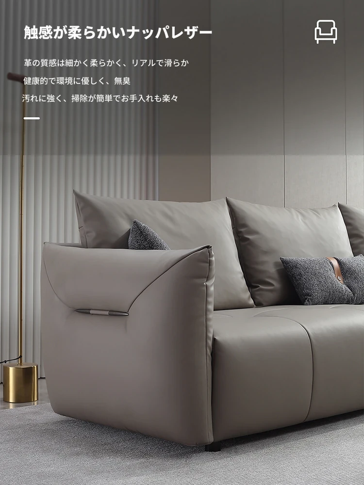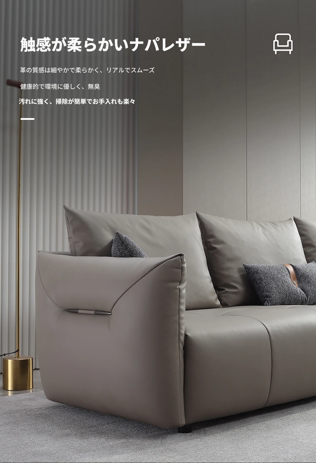 イタリアンミニマルデザインのレザーソファ - モダンリビングにぴったりの猫爪対応本革使用、ヴィンテージ感あふれるブラックダークグレーのスリムソファ。洗練されたスタイルで、居心地の良い空間を演出します!