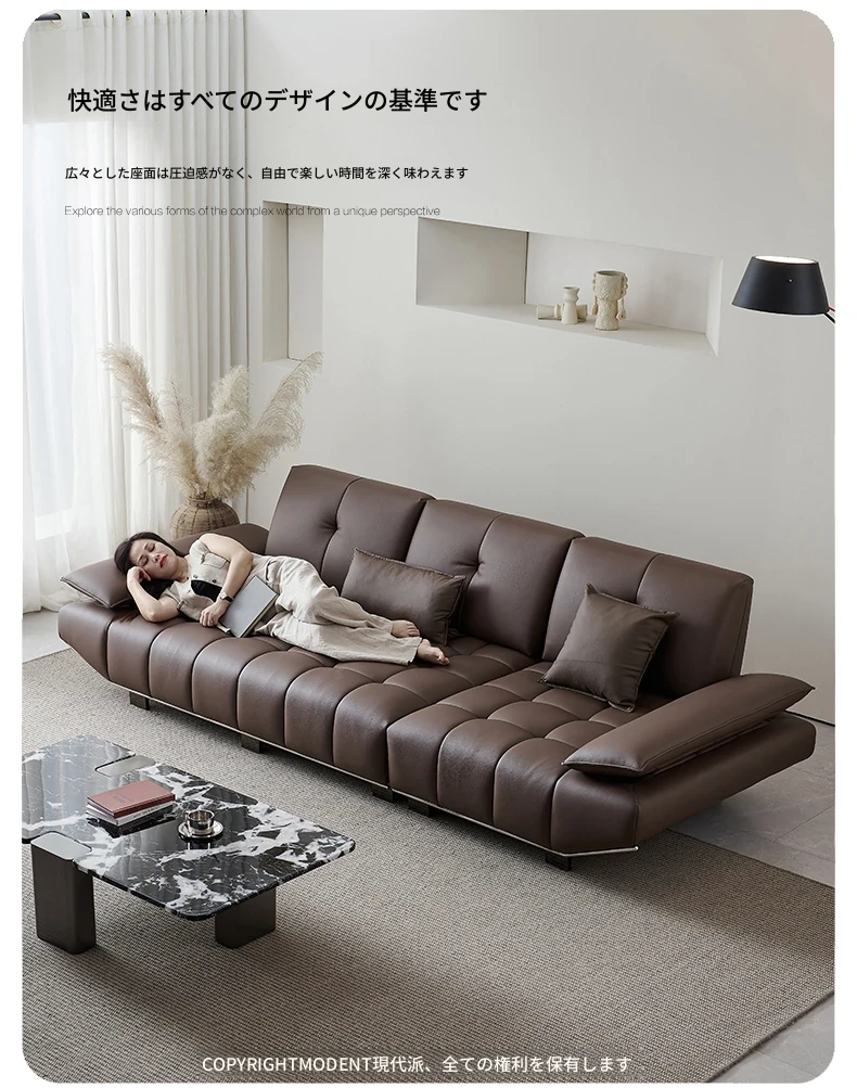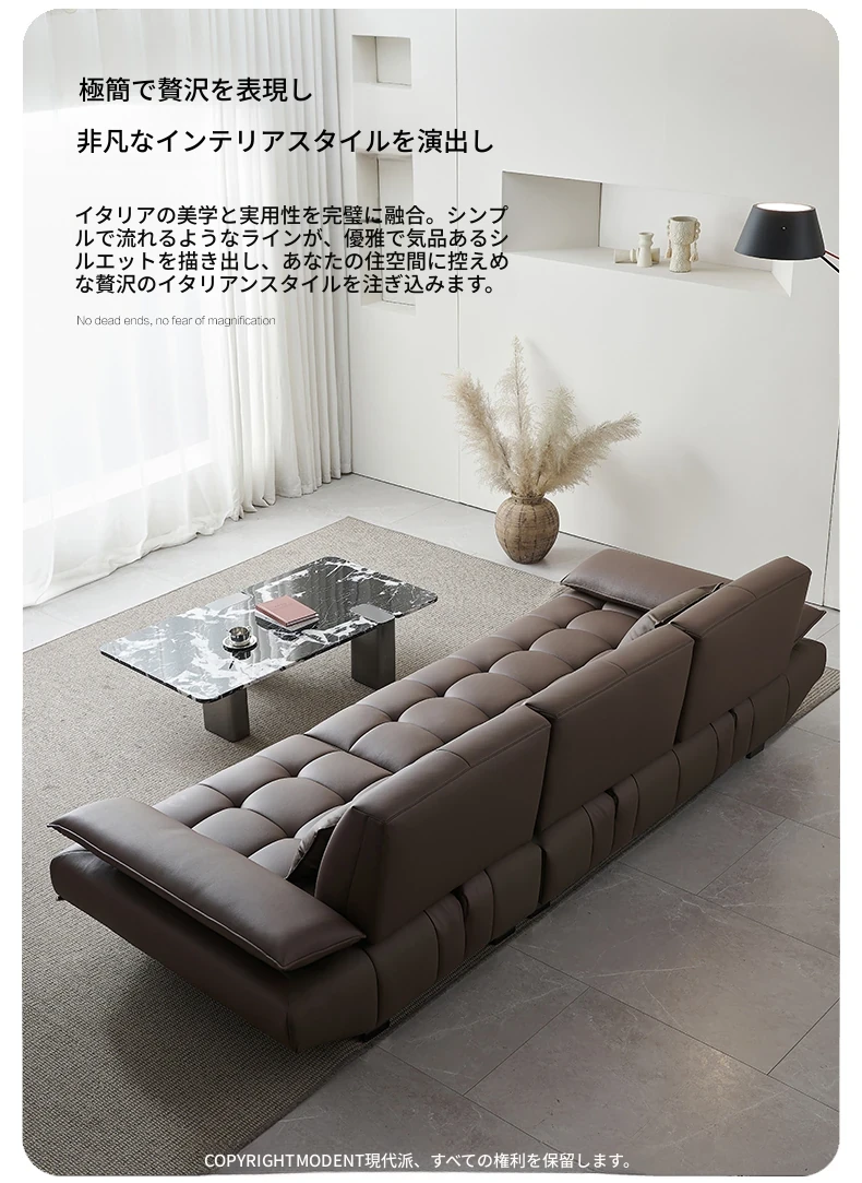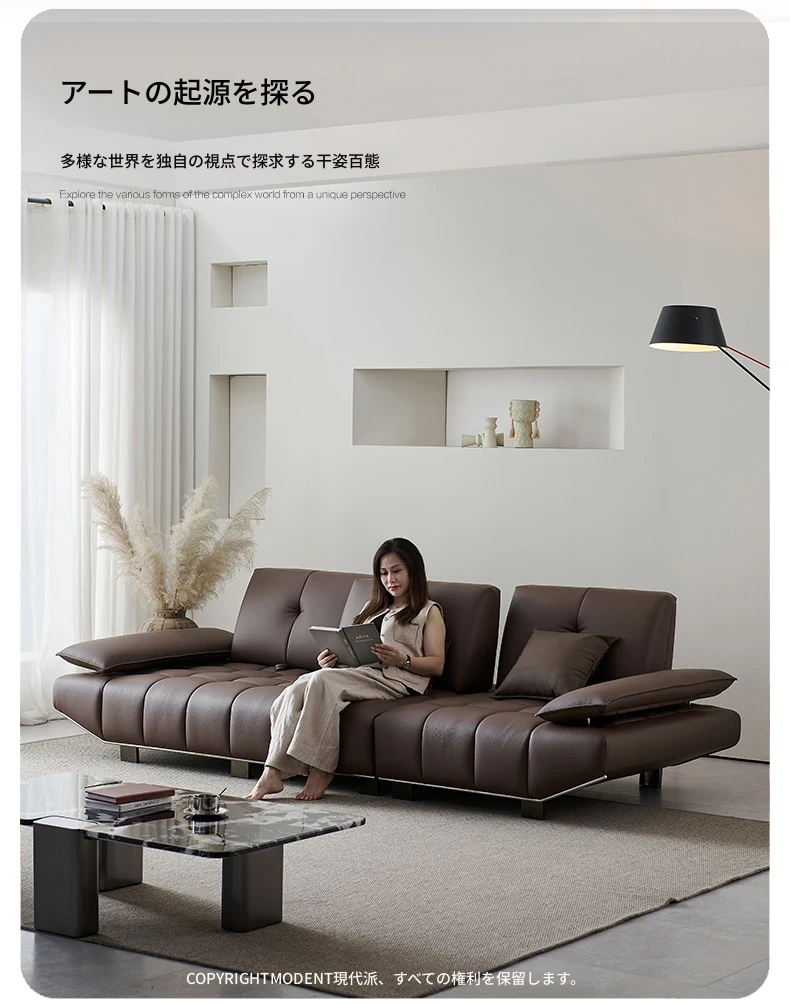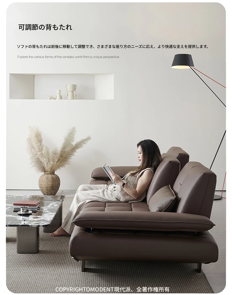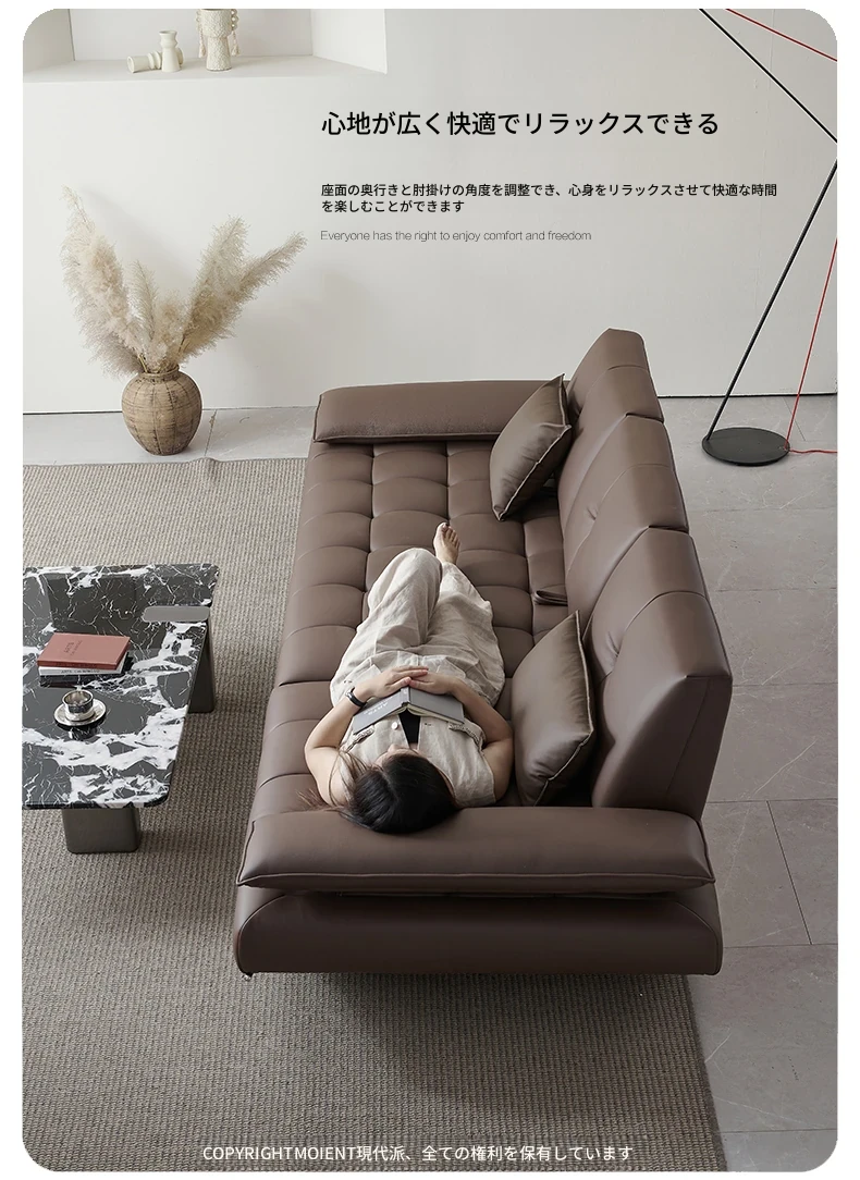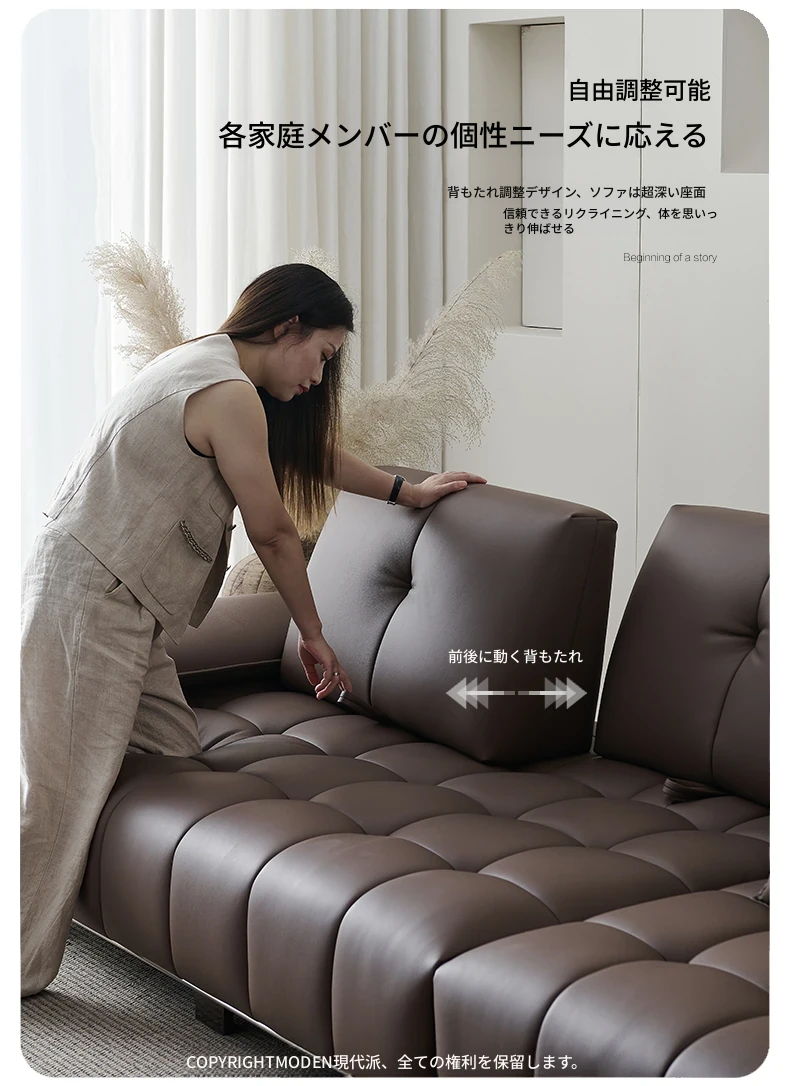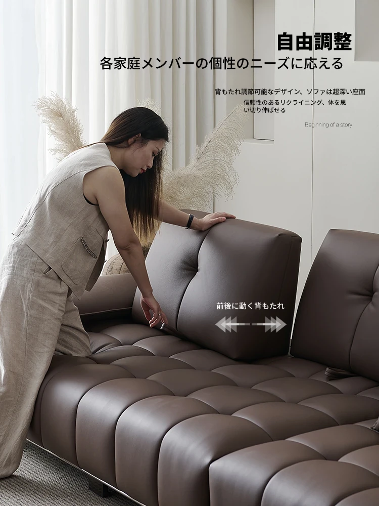 イタリアンラグジュアリー・ミニマリスト大帆船スタイル本革ソファ、リビングルーム向け移動可能な背もたれ調整機能付き、超広い座面で極上の座り心地を実現!