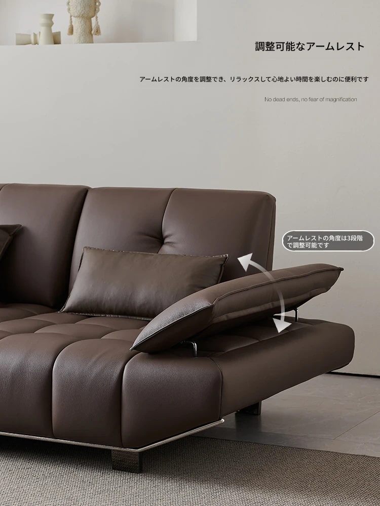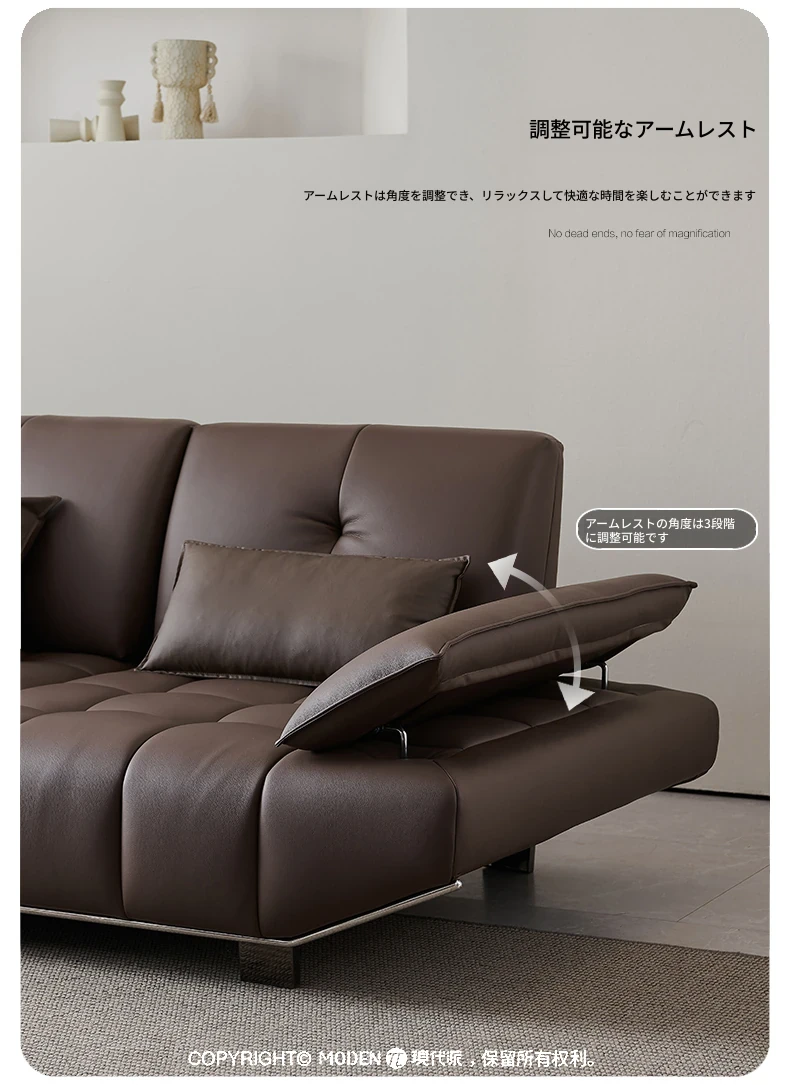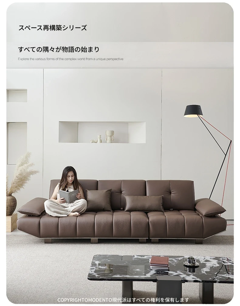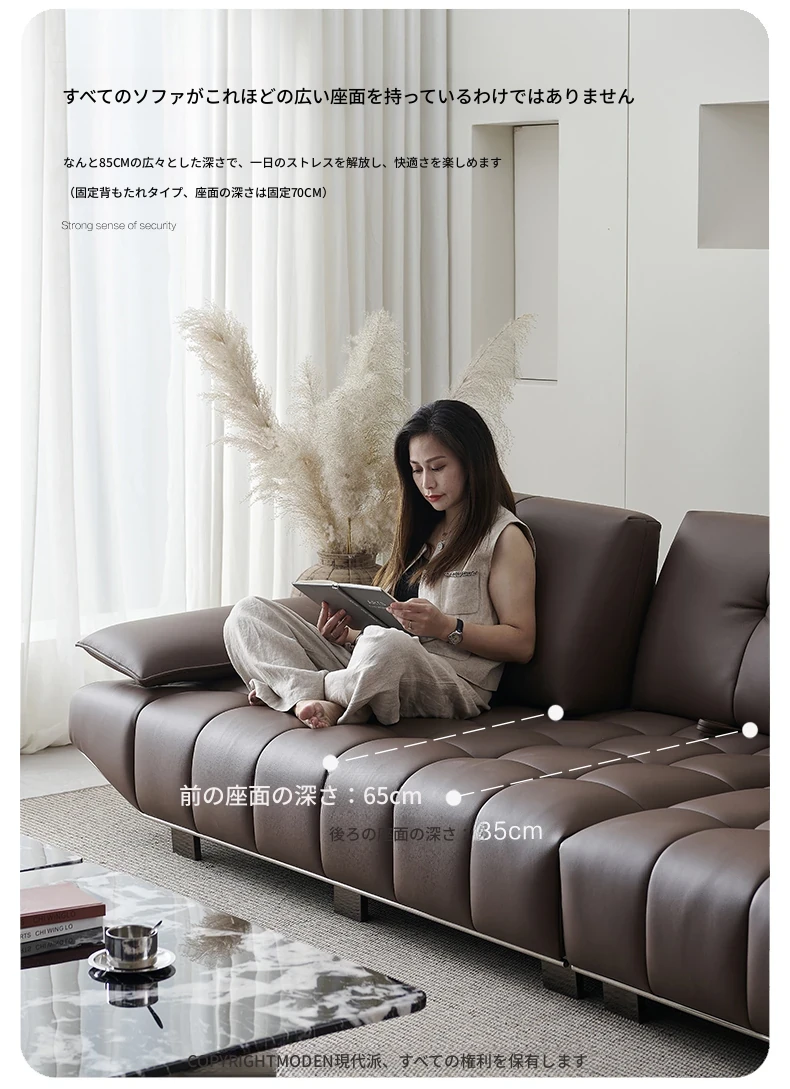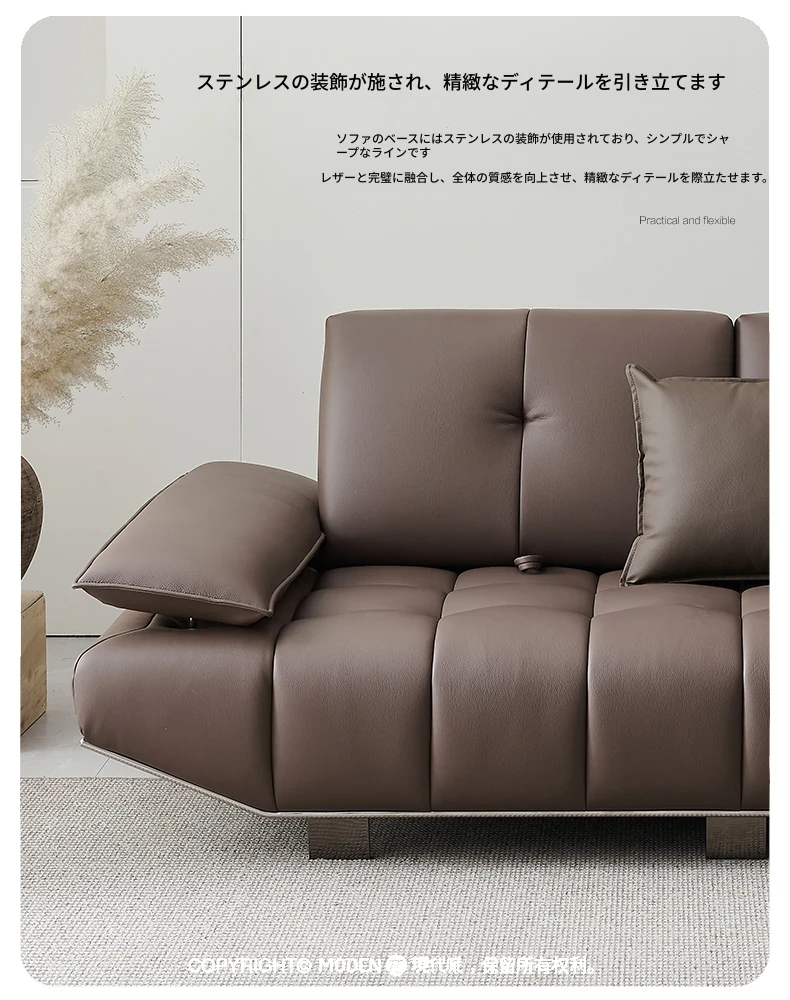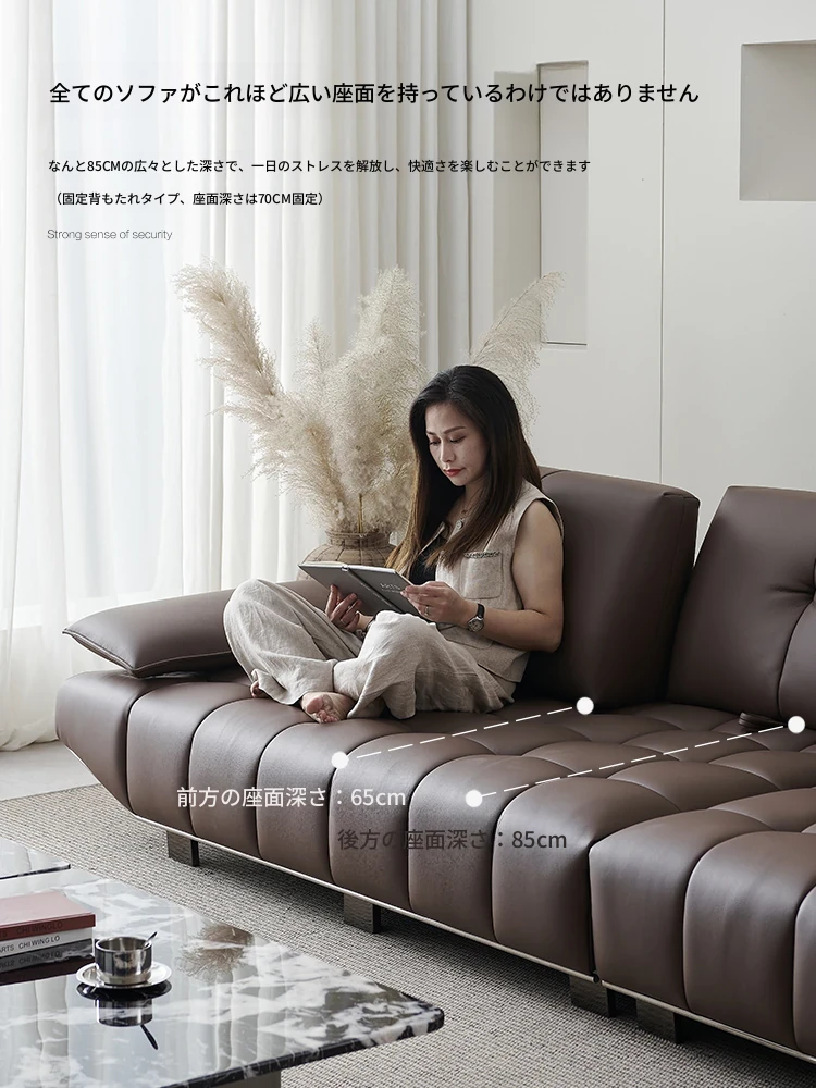 イタリアンラグジュアリー・ミニマリスト大帆船スタイル本革ソファ、リビングルーム向け移動可能な背もたれ調整機能付き、超広い座面で極上の座り心地を実現!