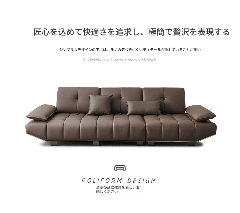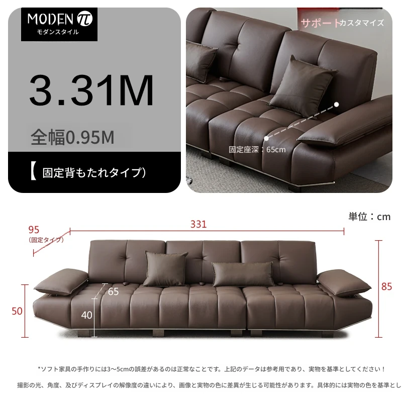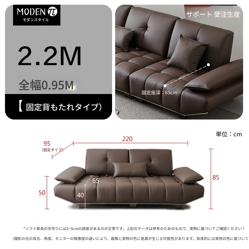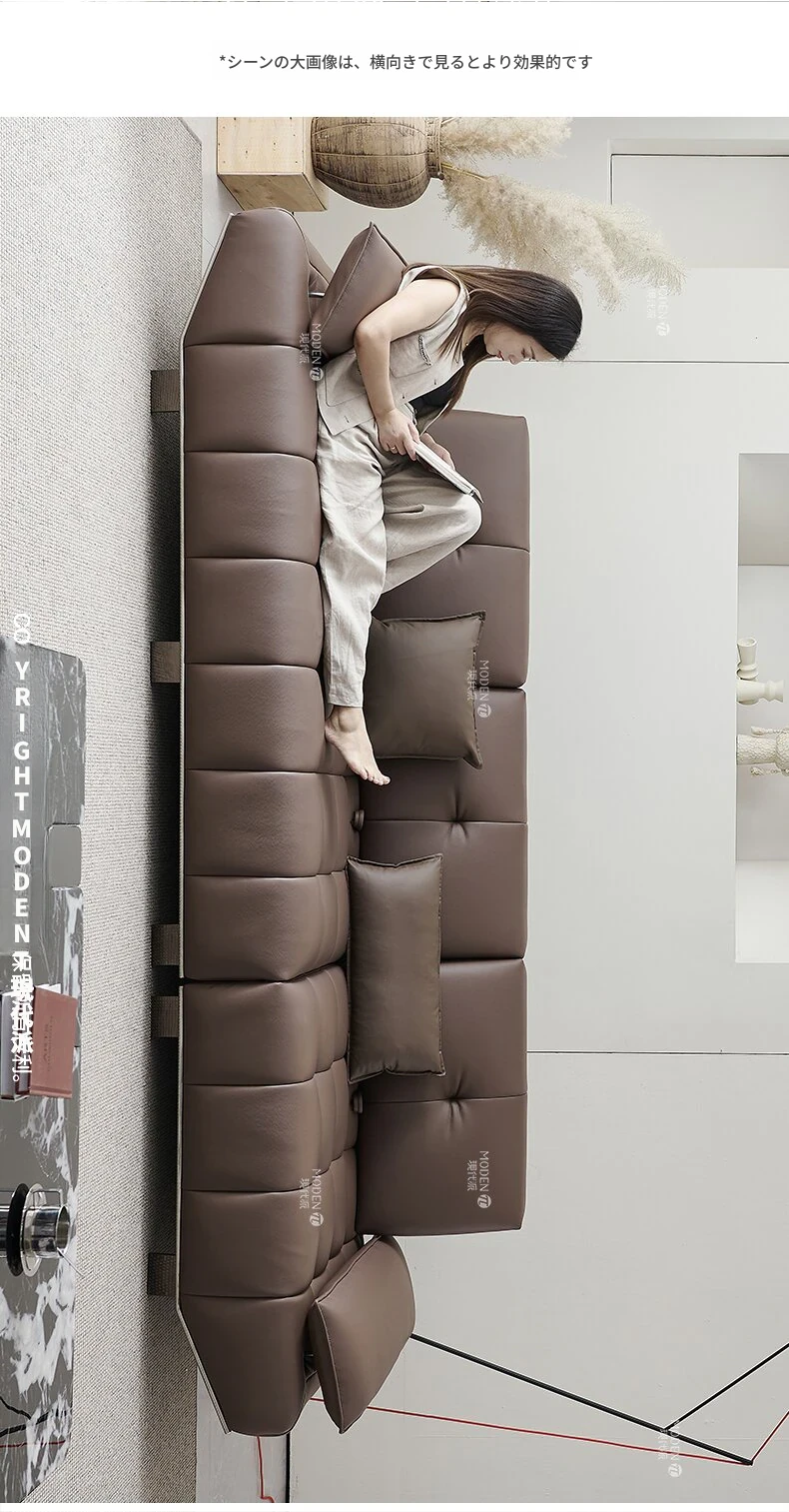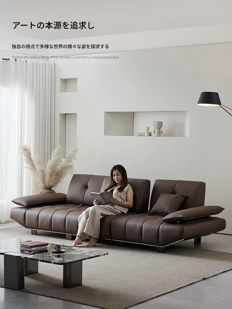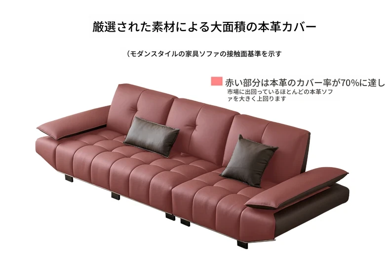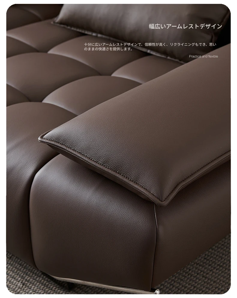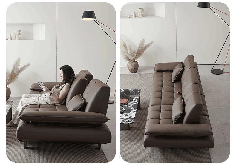 イタリアンラグジュアリー・ミニマリスト大帆船スタイル本革ソファ、リビングルーム向け移動可能な背もたれ調整機能付き、超広い座面で極上の座り心地を実現!