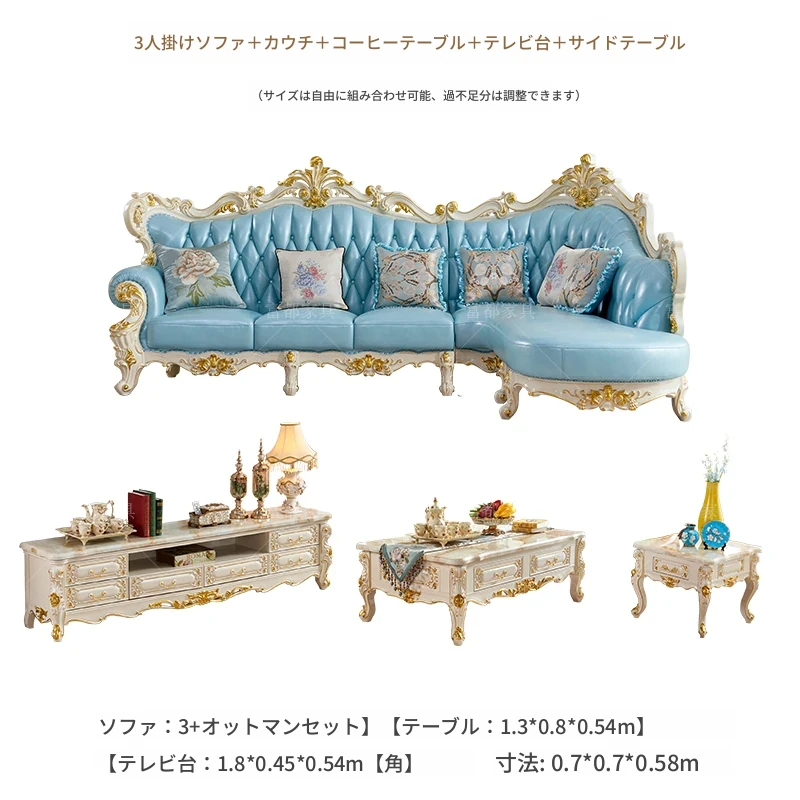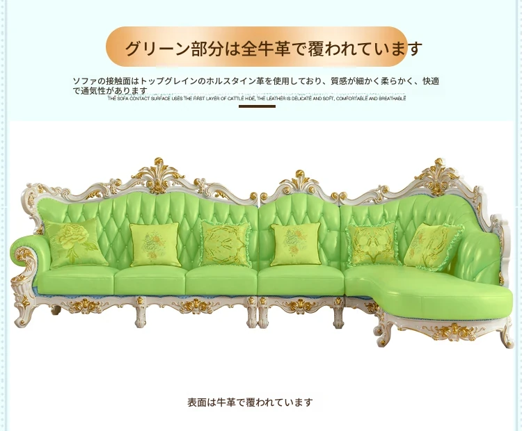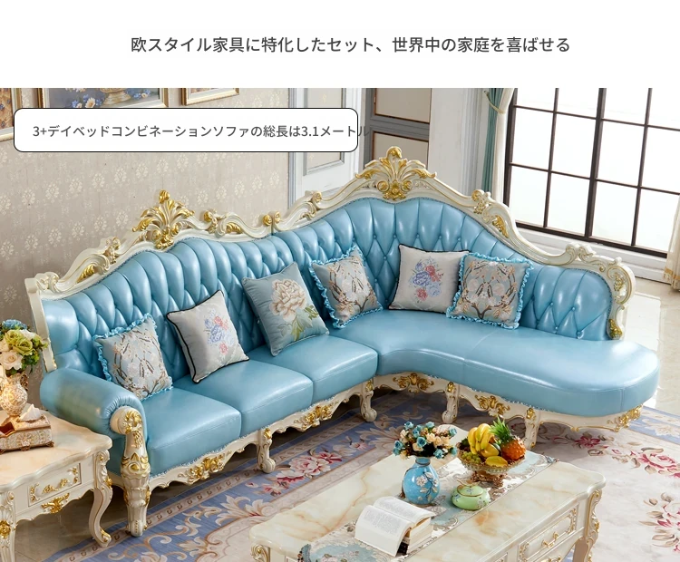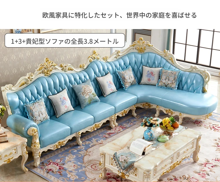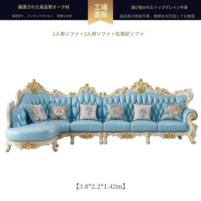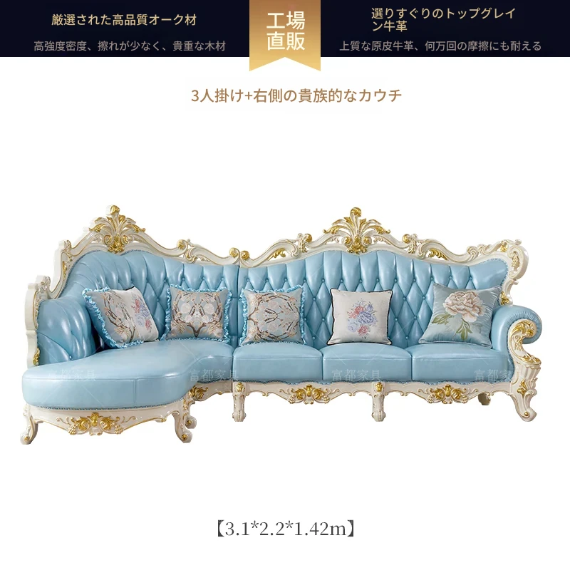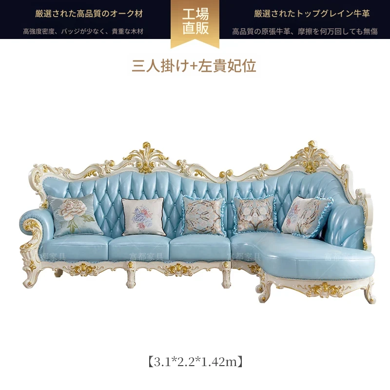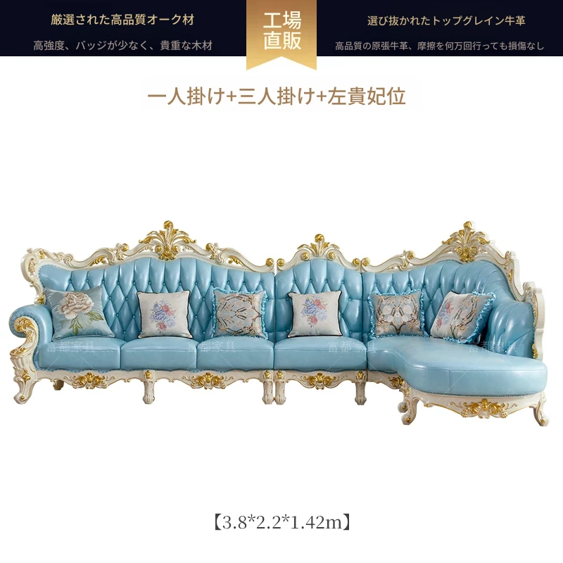 欧風本革コーナーソファー 高級牛革使用 全実木彫刻 豪華な貴妃スタイル リビングに最適 小型住宅にもぴったり 全室コーディネート可能!