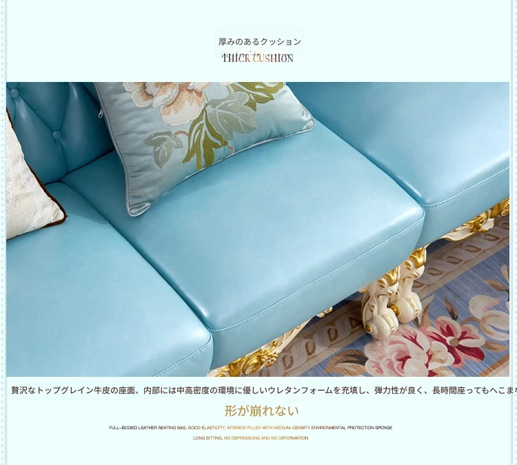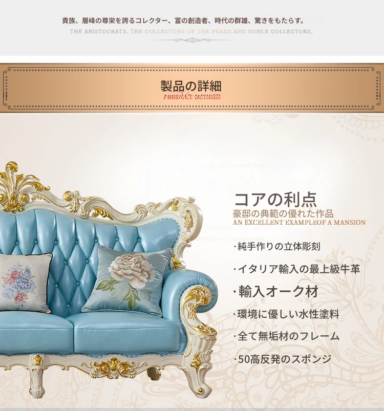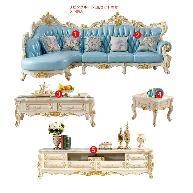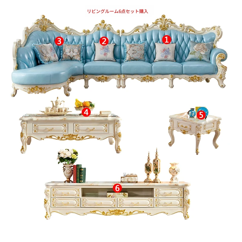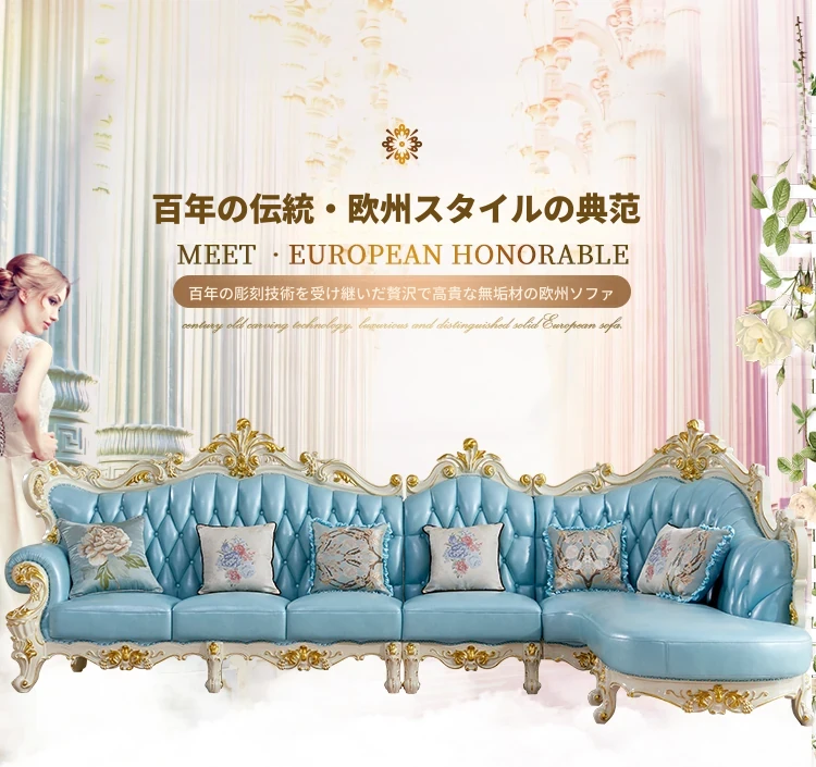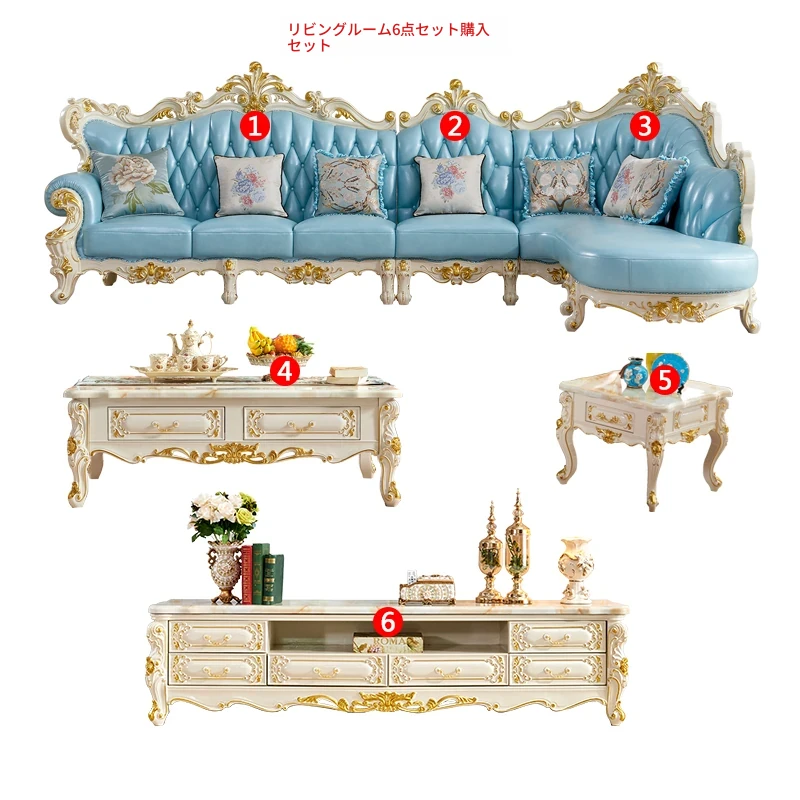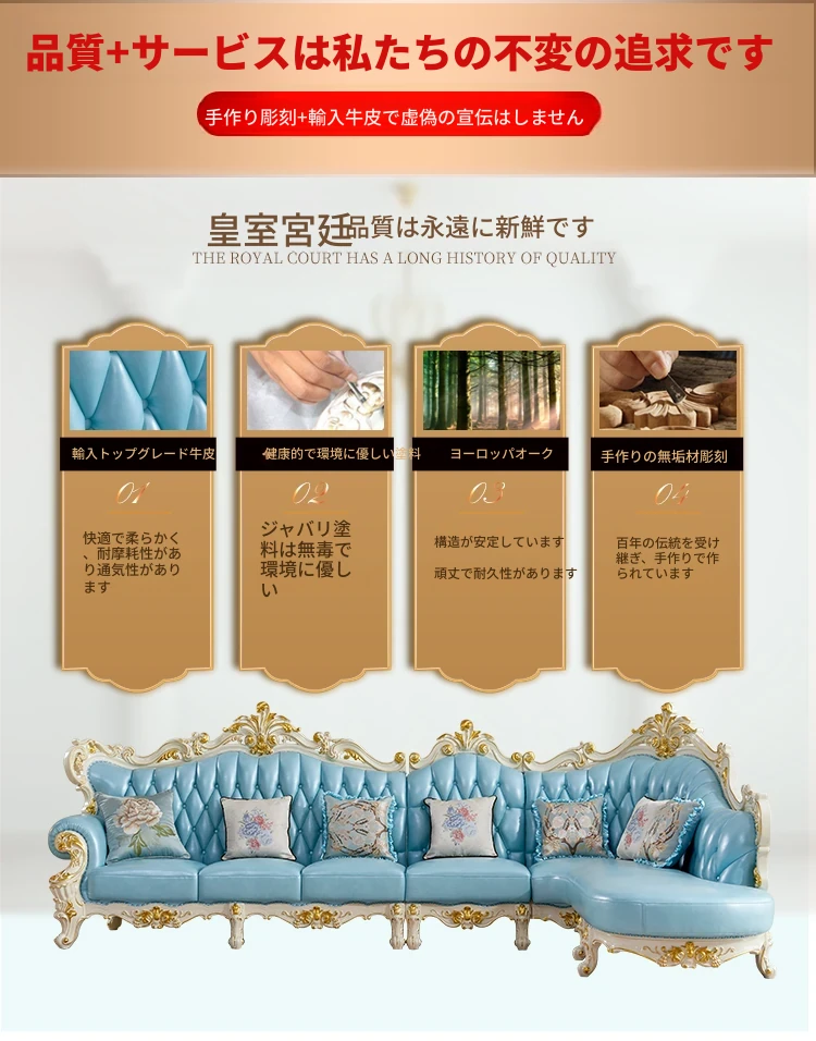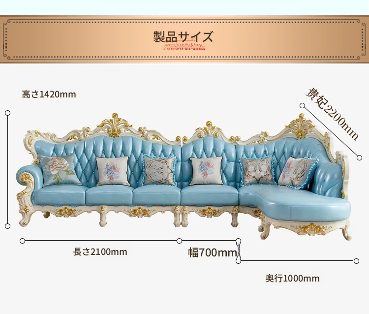 欧風本革コーナーソファー 高級牛革使用 全実木彫刻 豪華な貴妃スタイル リビングに最適 小型住宅にもぴったり 全室コーディネート可能!